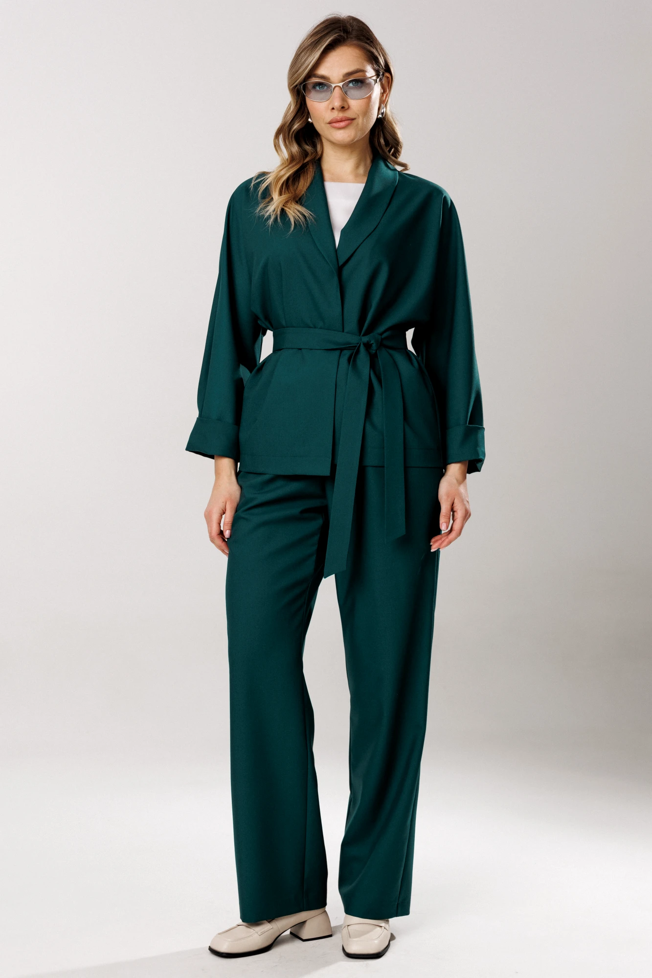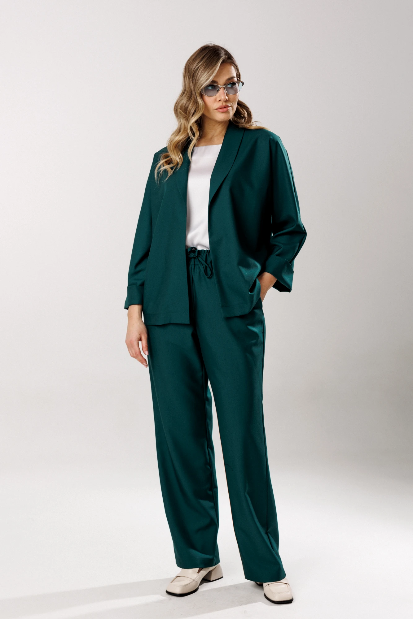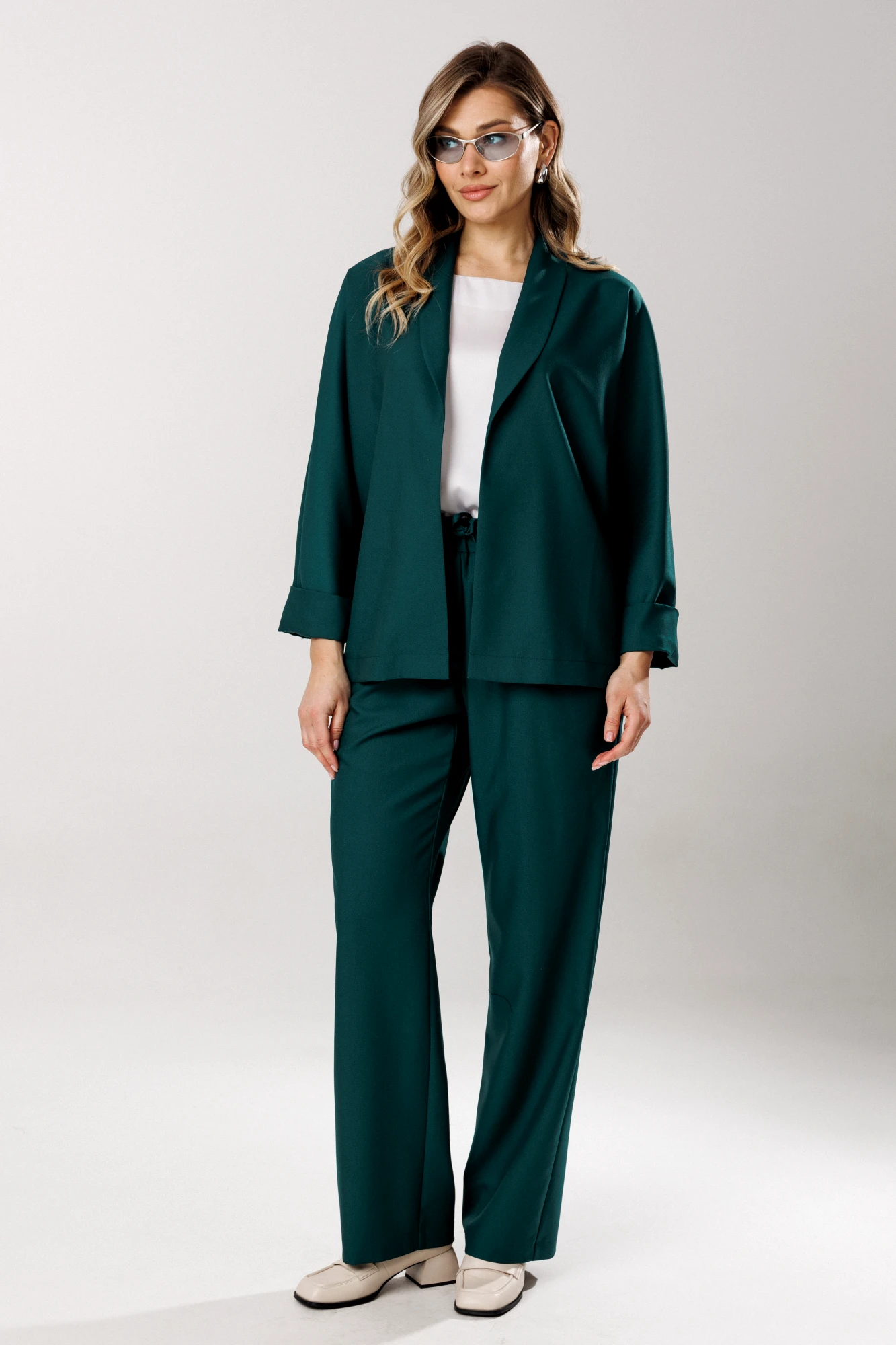 Брючный костюм Ларс Стиль 1202 тройка /1 изумрудный, молочный
