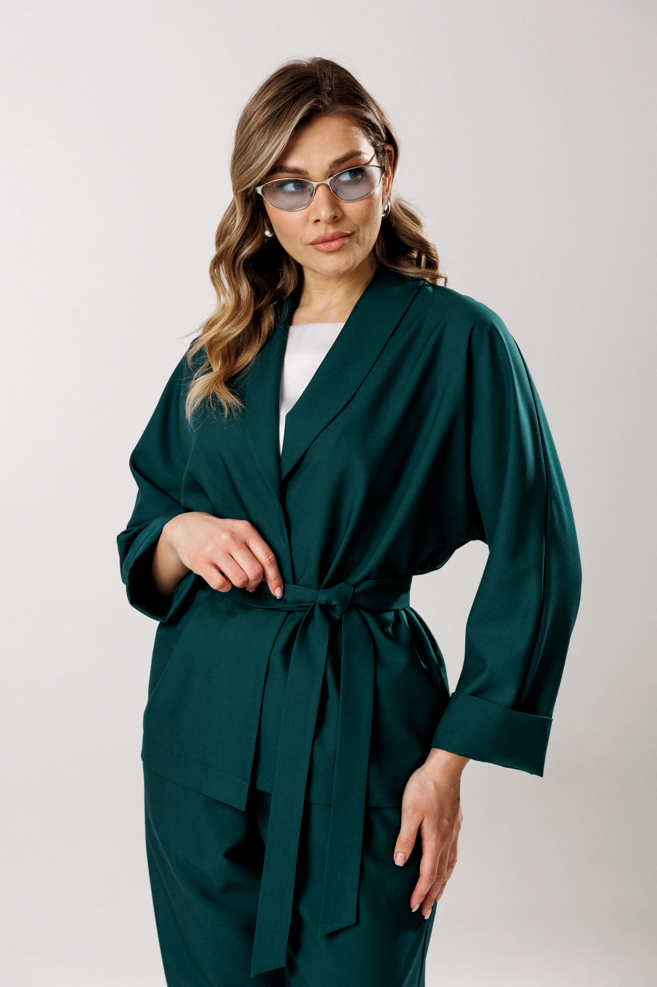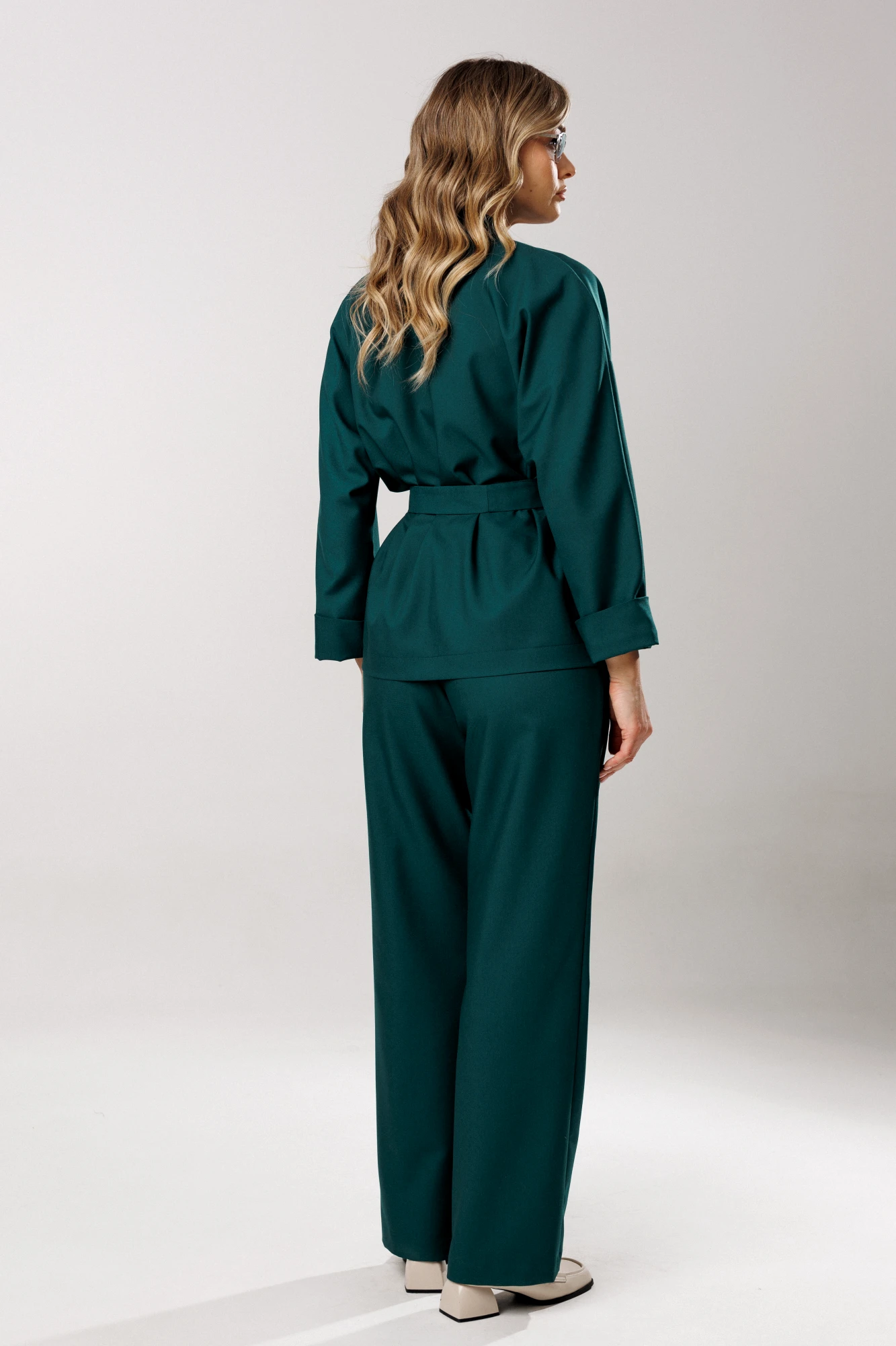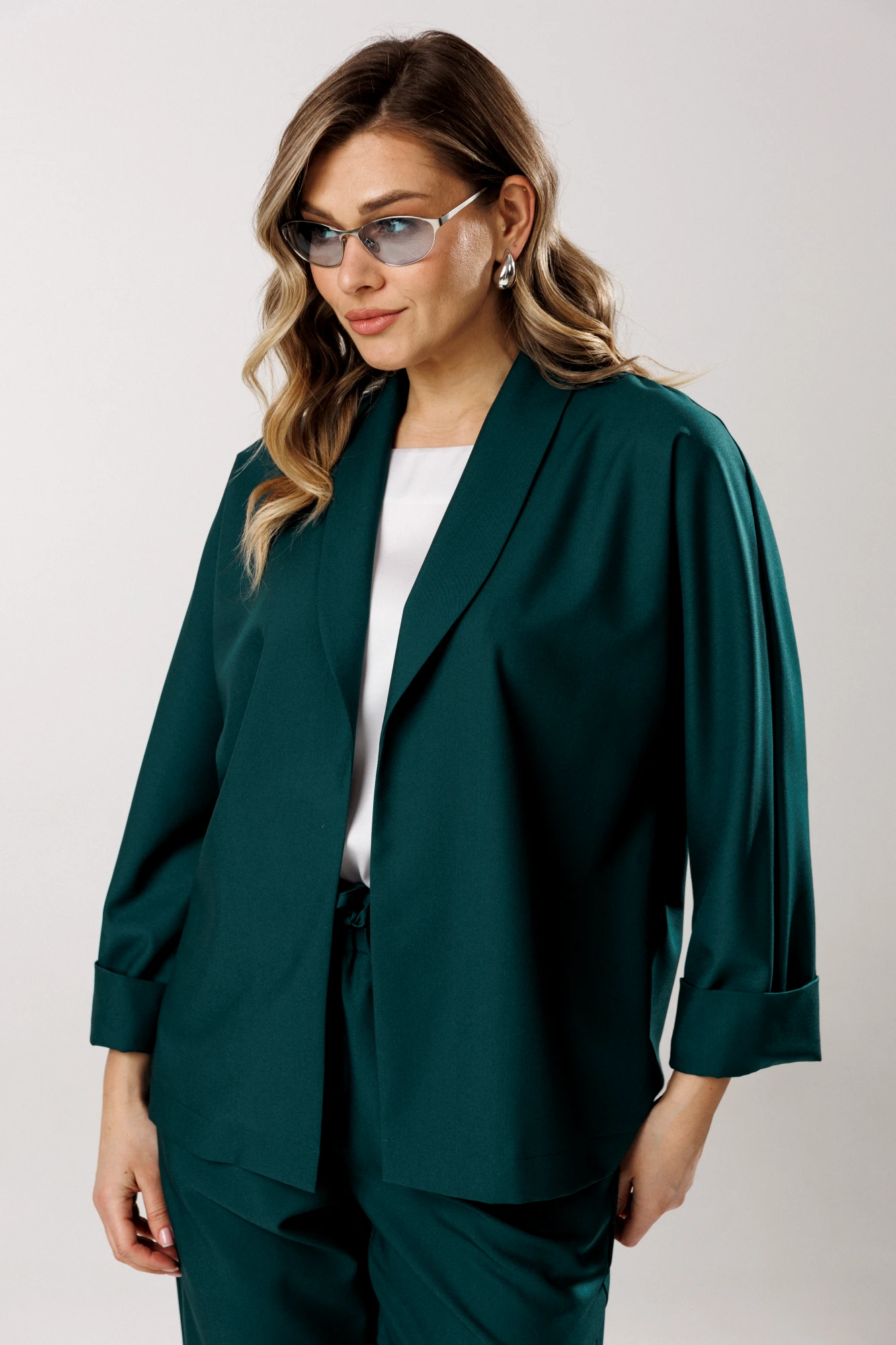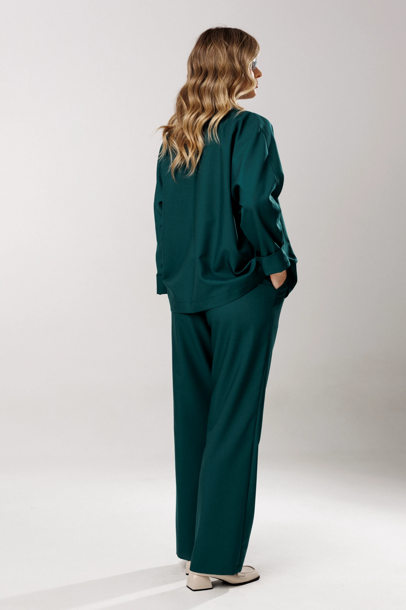 Брючный костюм Ларс Стиль 1202 тройка /1 изумрудный, молочный