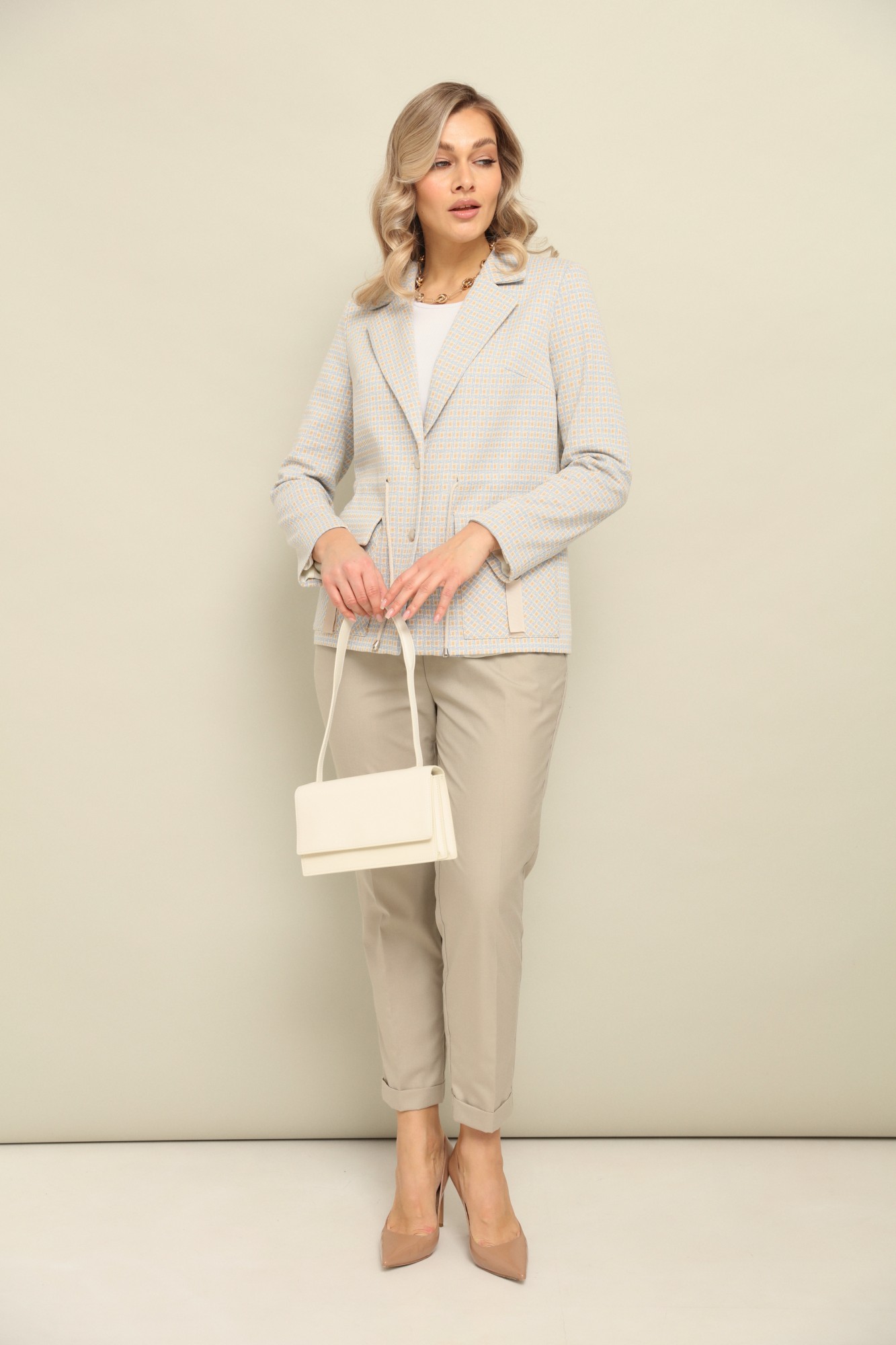 Брючный костюм LM К 110145 голубо-бежевый