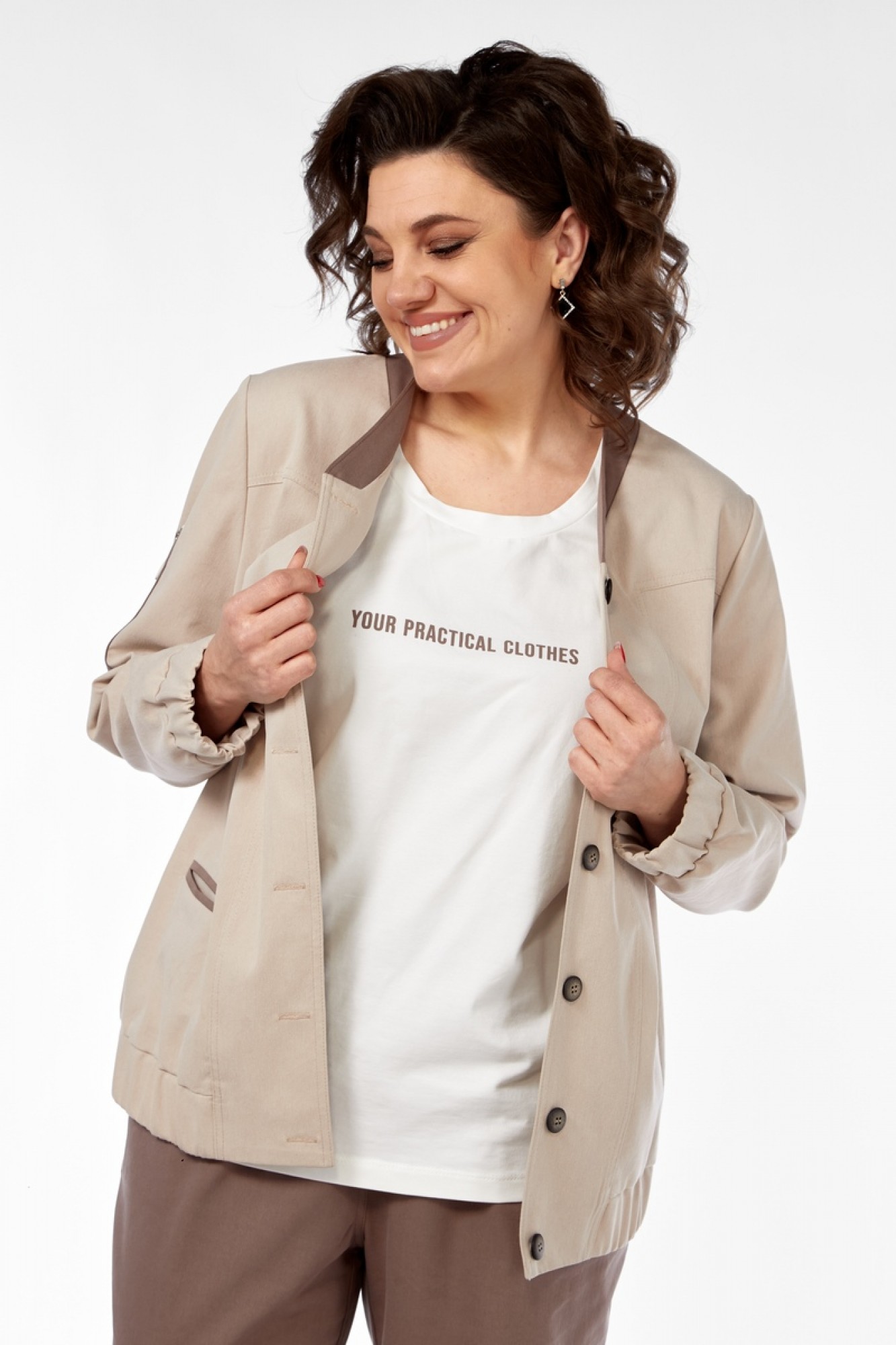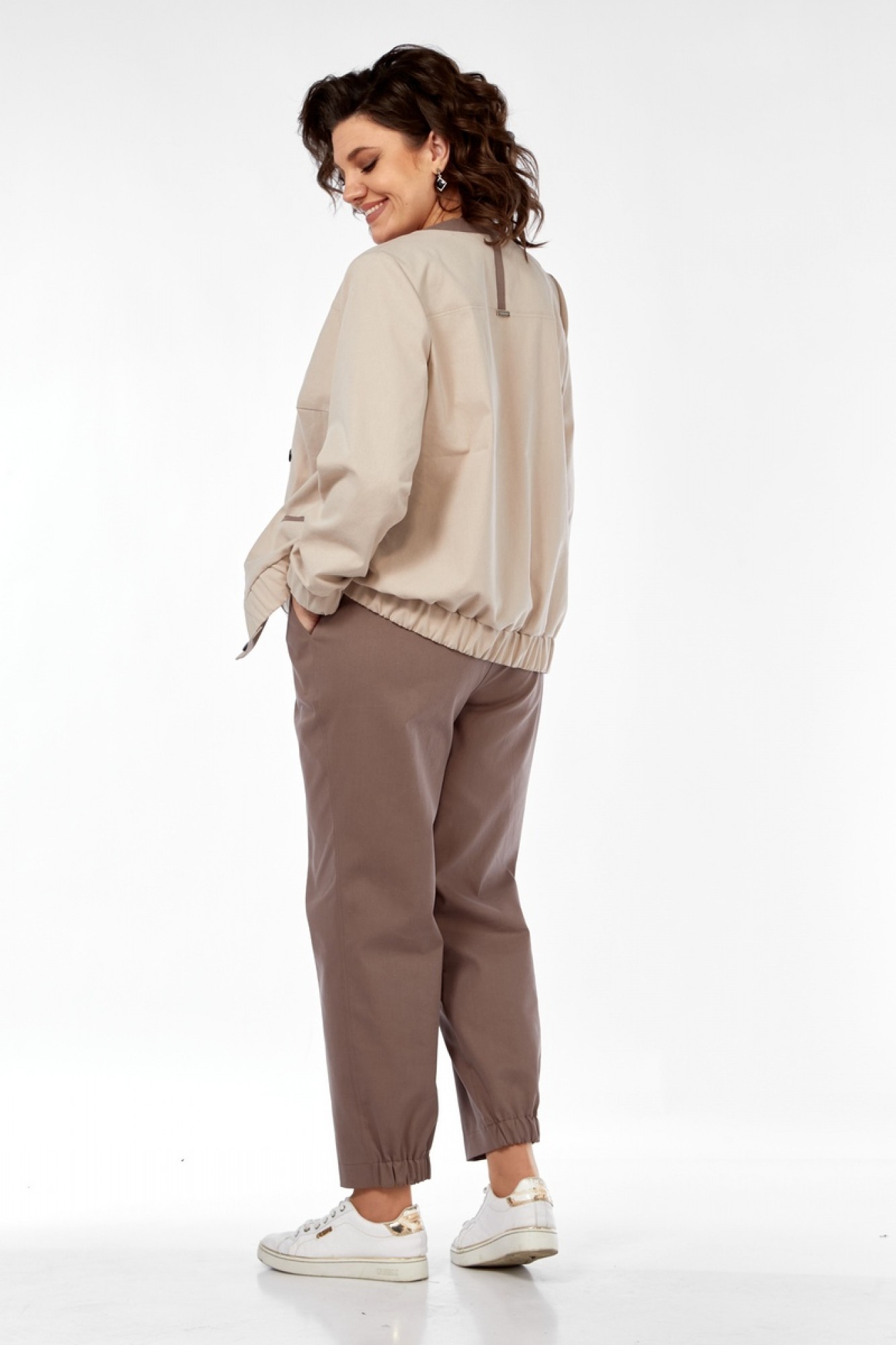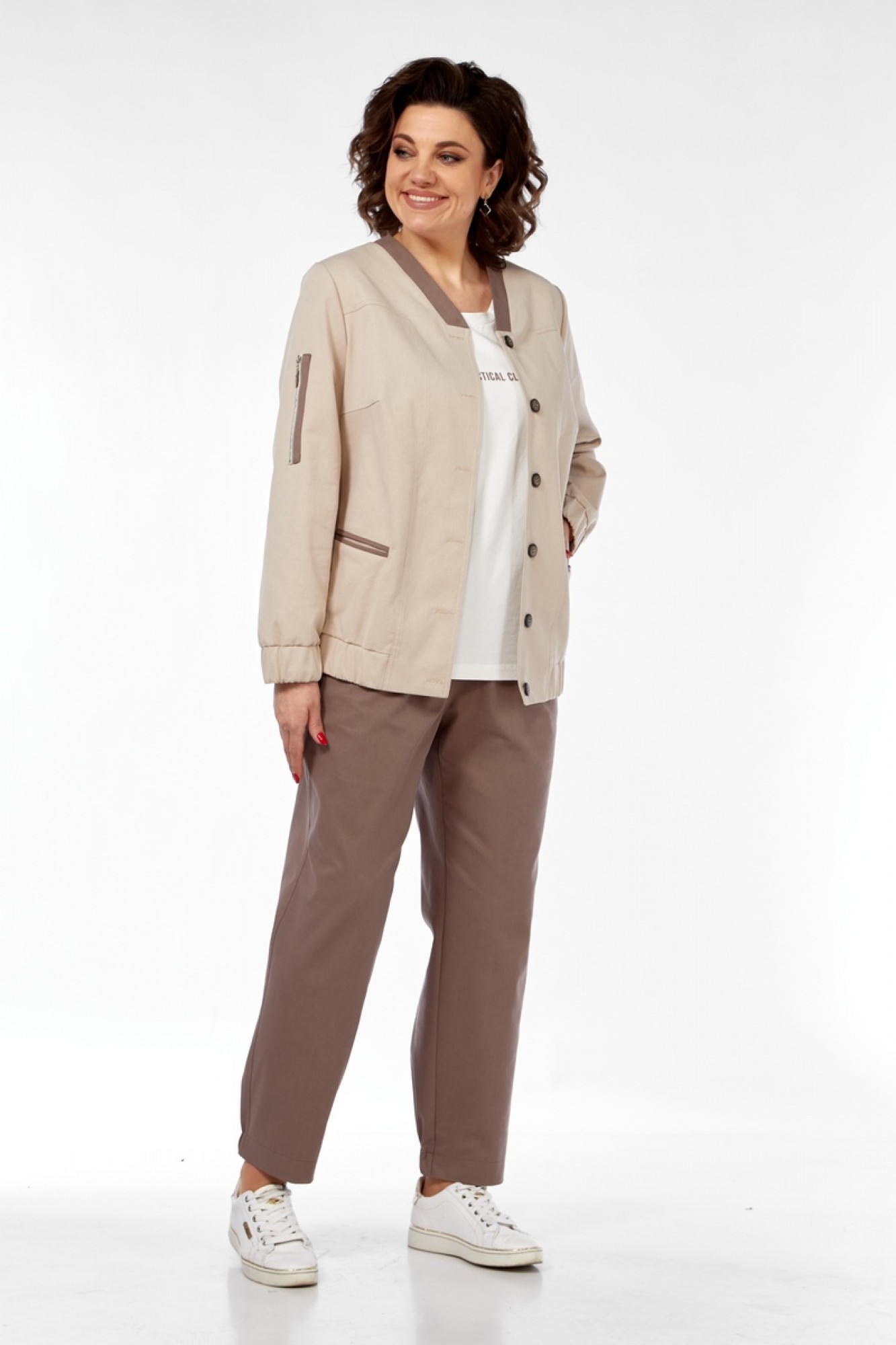 Брючный костюм Милора Стиль 1334 тройка бежевый, коричневый