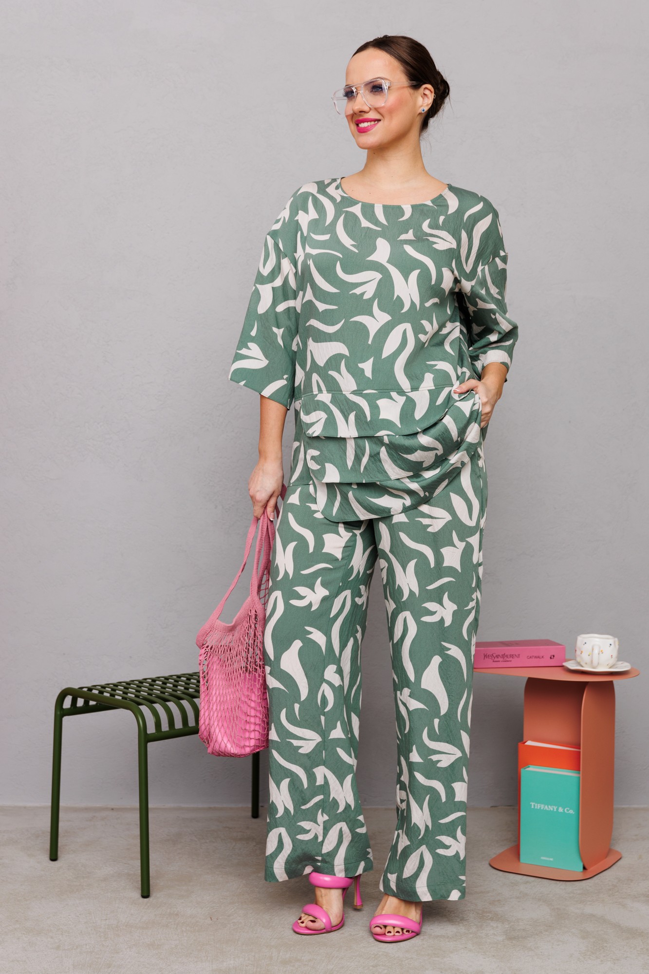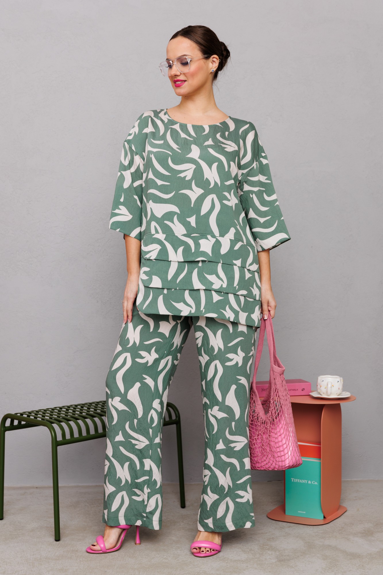 Брючный костюм Мублиз плюс 245 бело-зеленый