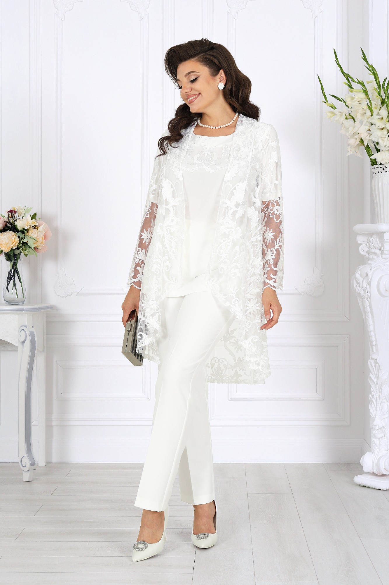 Брючный костюм NINELE 5908 тройка молоко