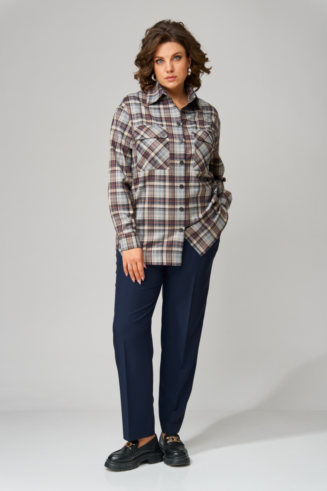 Брючный костюм Орхидея Люкс 1472 клетка, темно-синий