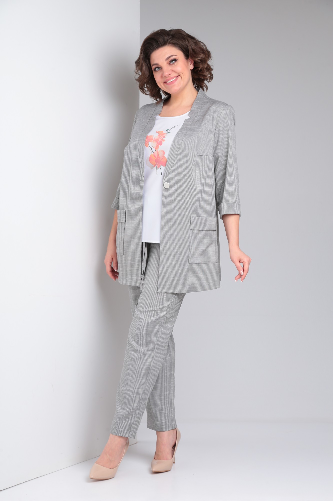жакет/брюки — 64% вискоза, 34% п/э, 2% эластан; блуза — 70% п/э, 26% вискоза, 4% эластан