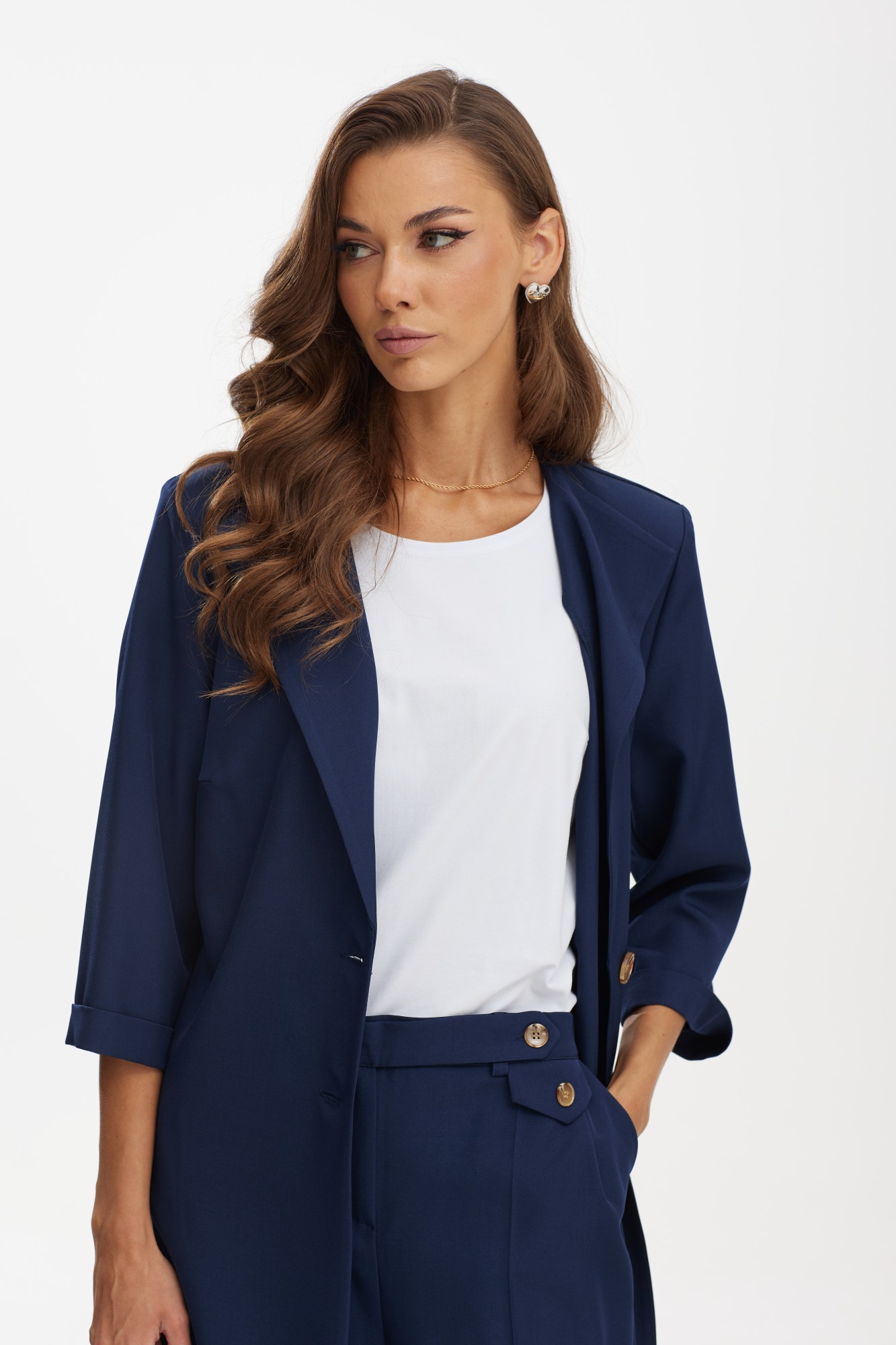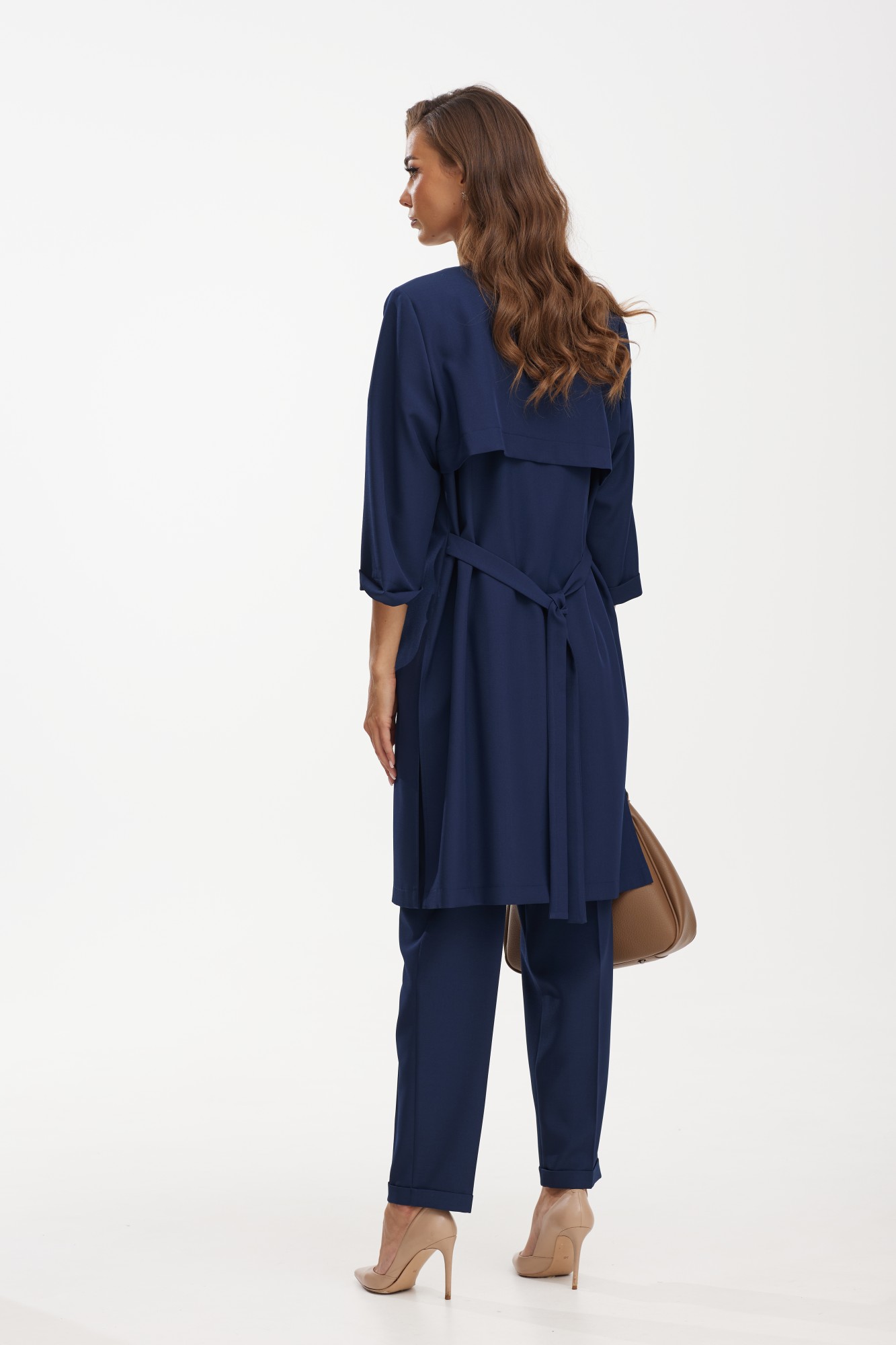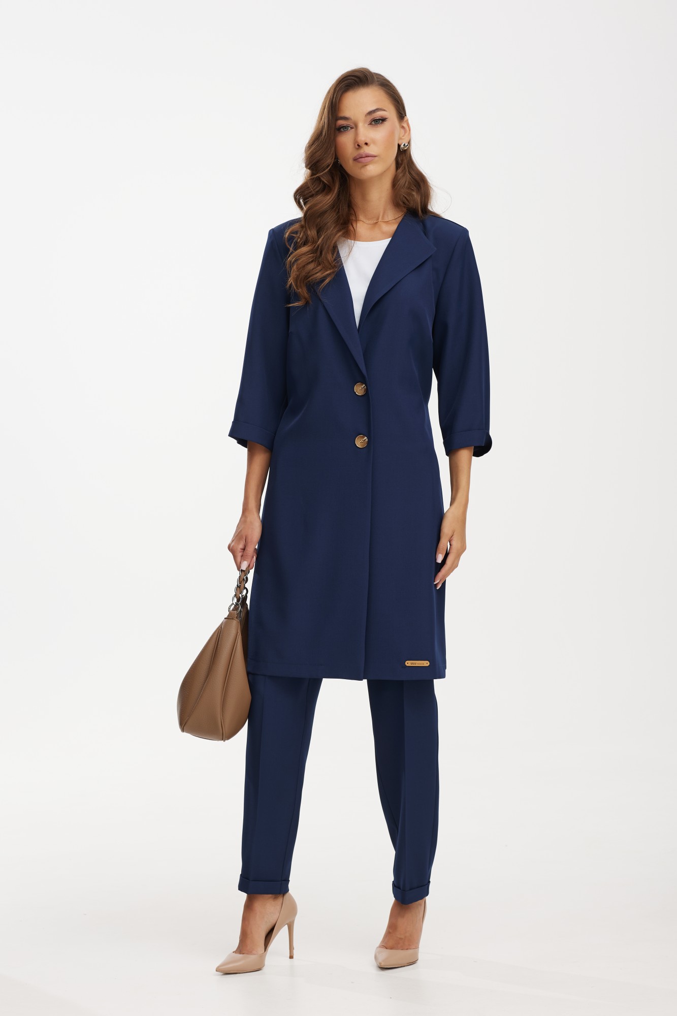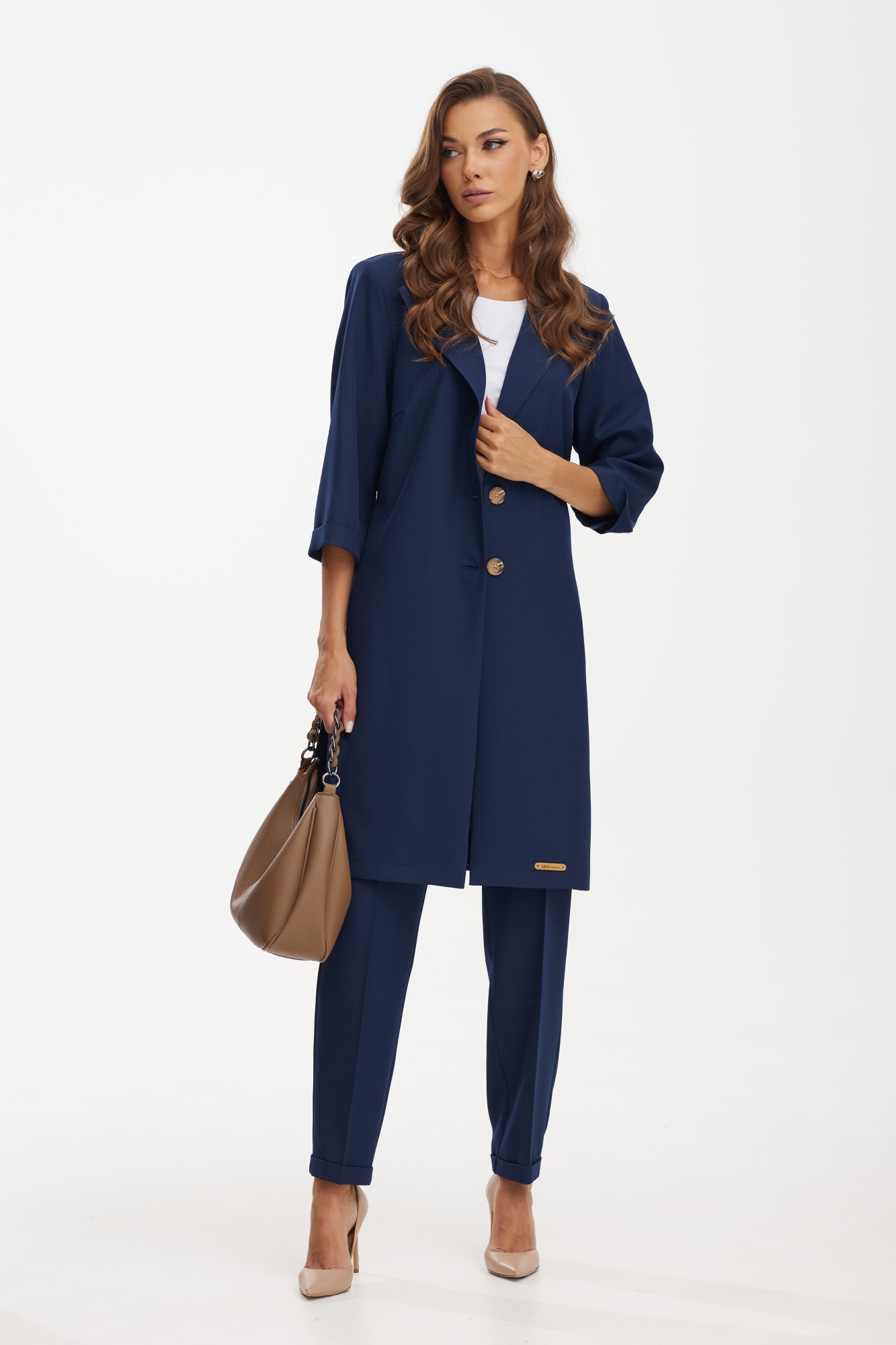 Костюм с удлиненным жакетом от белорусского бренда Твой Имидж – это изящное и элегантное решение для стильных и современных женщин. Элегантный женский костюм от белорусского производителя состоит из удлиненного жакета, брюк и блузки. Качественная ткань лен вишер, из которой выполнена модель, обеспечит долговечность изделию и приятные ощущения его обладательнице. Блузка выполнена из хлопкового трикотажного полотна. Жакет без подкладки прямого силуэта с намеком на полуприлегание, с центральной бортовой застежкой на две петли-пуговицы, длиной ниже колена. Спинка с отлетной кокеткой и декоративной нашивкой, с таллиевыми вытачками и поясом, который можно завязывать как спереди, так и сзади. По боковым швам расположены разрезы. Рукава втачные, длиной ¾, с манжетой. Удлиненный жакет – это не только модный тренд, но и практичное решение. Он позволяет создать элегантный и стройный силуэт, подчеркивая достоинства фигуры и скрывая недостатки. Благодаря своей длине, такой костюм придает дополнительную изящность и шик образу. Брюки классической формы, зауженные к низу, со стрелками по передним и задним половинкам. Перед с декоративным клапаном, на котором пришита пуговица. На задних половинках расположены таллиевые вытачки, в боковых швах – наклонные карманы. Верхний срез брюк обработан поясом фигурной формы с резинкой по боковым швам. По низу брюк — манжеты. Блузка прямого силуэта, с нагрудными вытачками и коротким втачным рукавом. Одним из преимуществ костюма с удлиненным жакетом является его универсальность. Он подойдет как для делового стиля, так и для особых мероприятий или торжественных случаев. Сочетание такого костюма с брюками в едином цветовом решении, либо с контрастной деталью, создает гармоничный и стильный образ. Дополняя его аксессуарами, такими как пояс, шарф, брошь или сумка, можно добавить индивидуальности и неповторимости. Костюм с удлиненным жакетом – отличный выбор для тех, кто стремится выглядеть элегантно и модно. Благодаря своему уникальному дизайну он придает женщине уверенности и шарма. Независимо от того, какое мероприятие предстоит, такой костюм поможет создать неповторимый образ и вызвать восхищение окружающих.