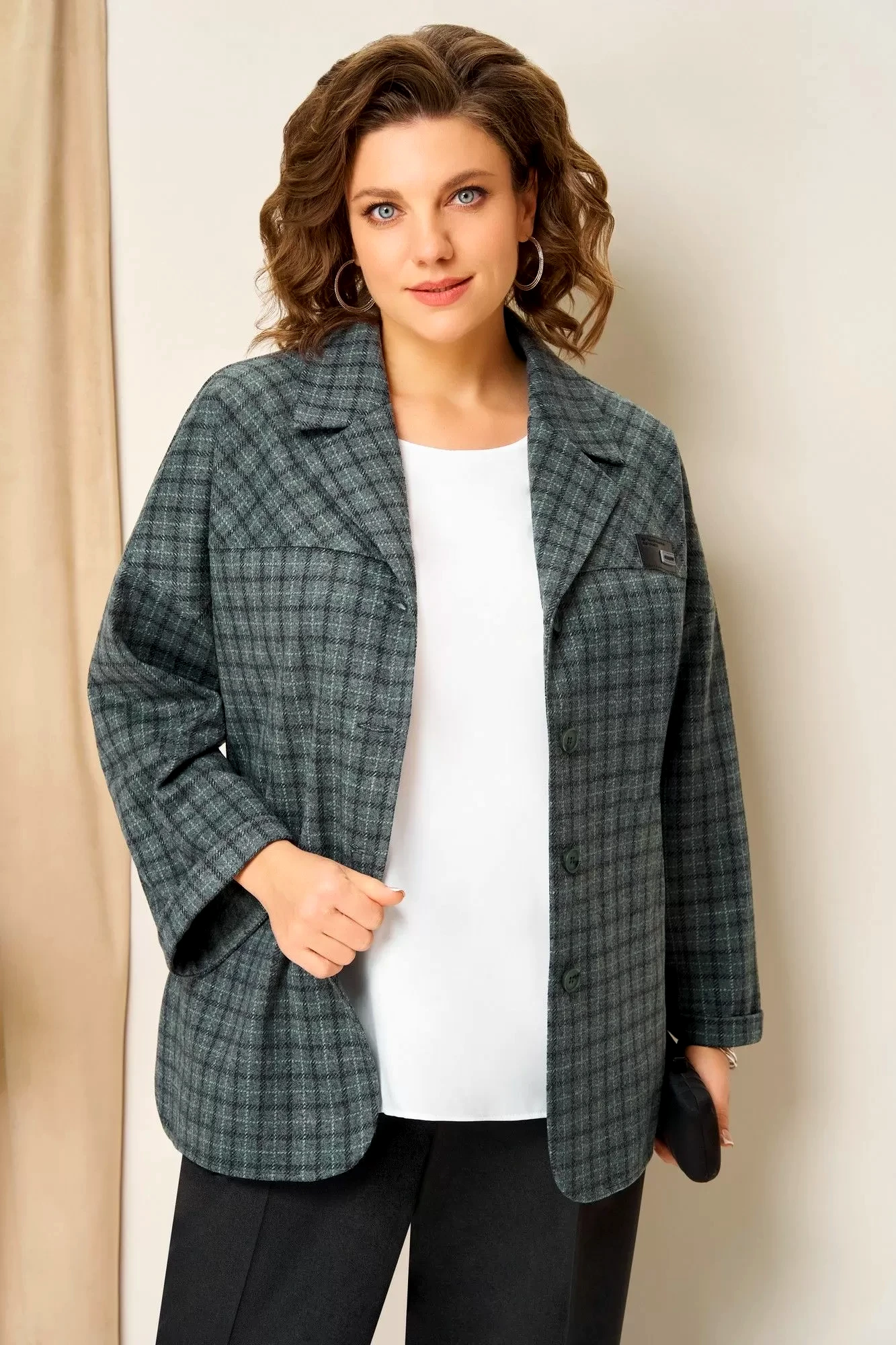 Жакет: 65% вискоза, 30% полиэстер, 5% эластан. брюки: полиэстер 66%, вискоза 33%, эластан 1%. Блуза: полиэстер 95%, эластан 5%
