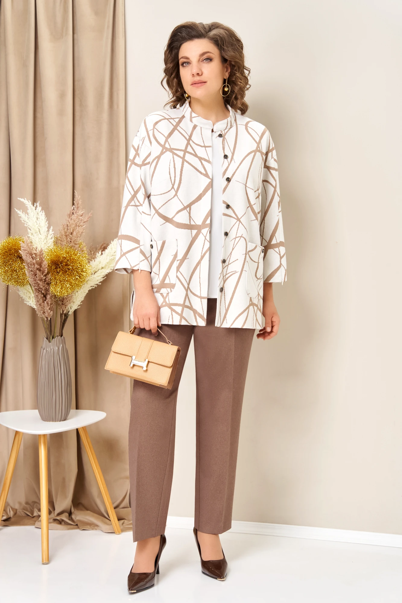 Брючный костюм Volna 1439 тройка молочно-бежевый