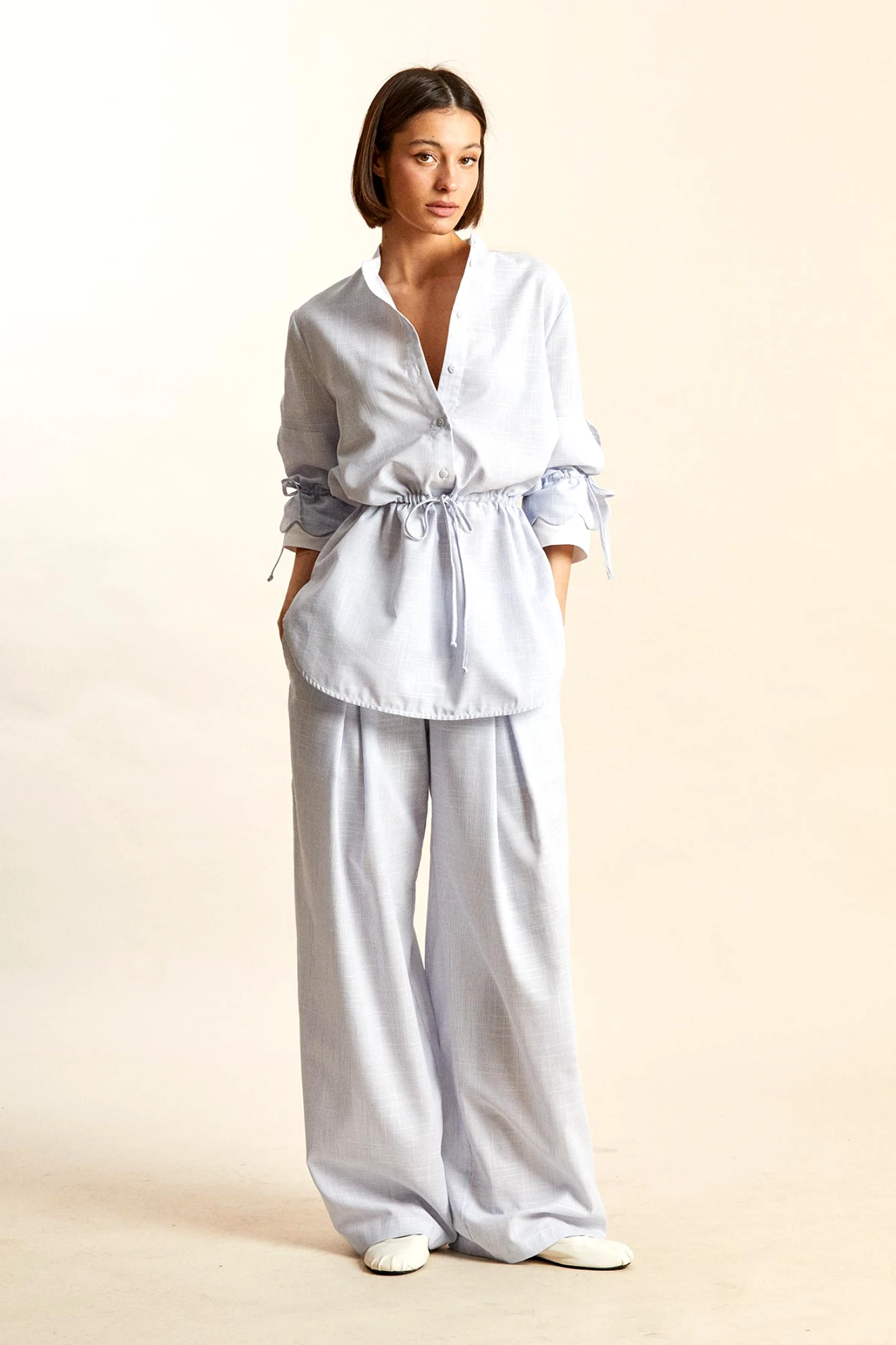 Брючный костюм RIVOLI 9040 бело-голубой
