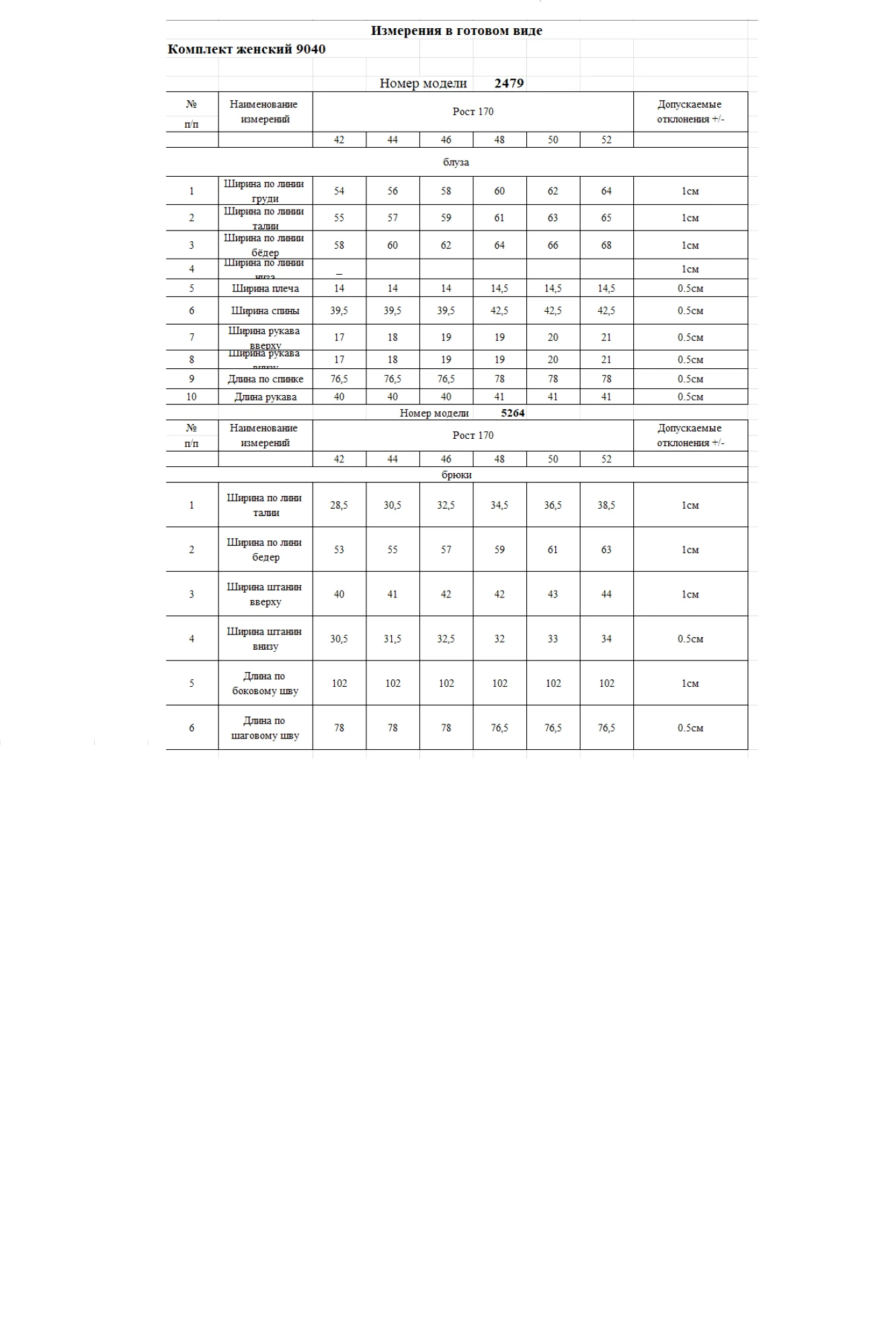 Таблица размеров
