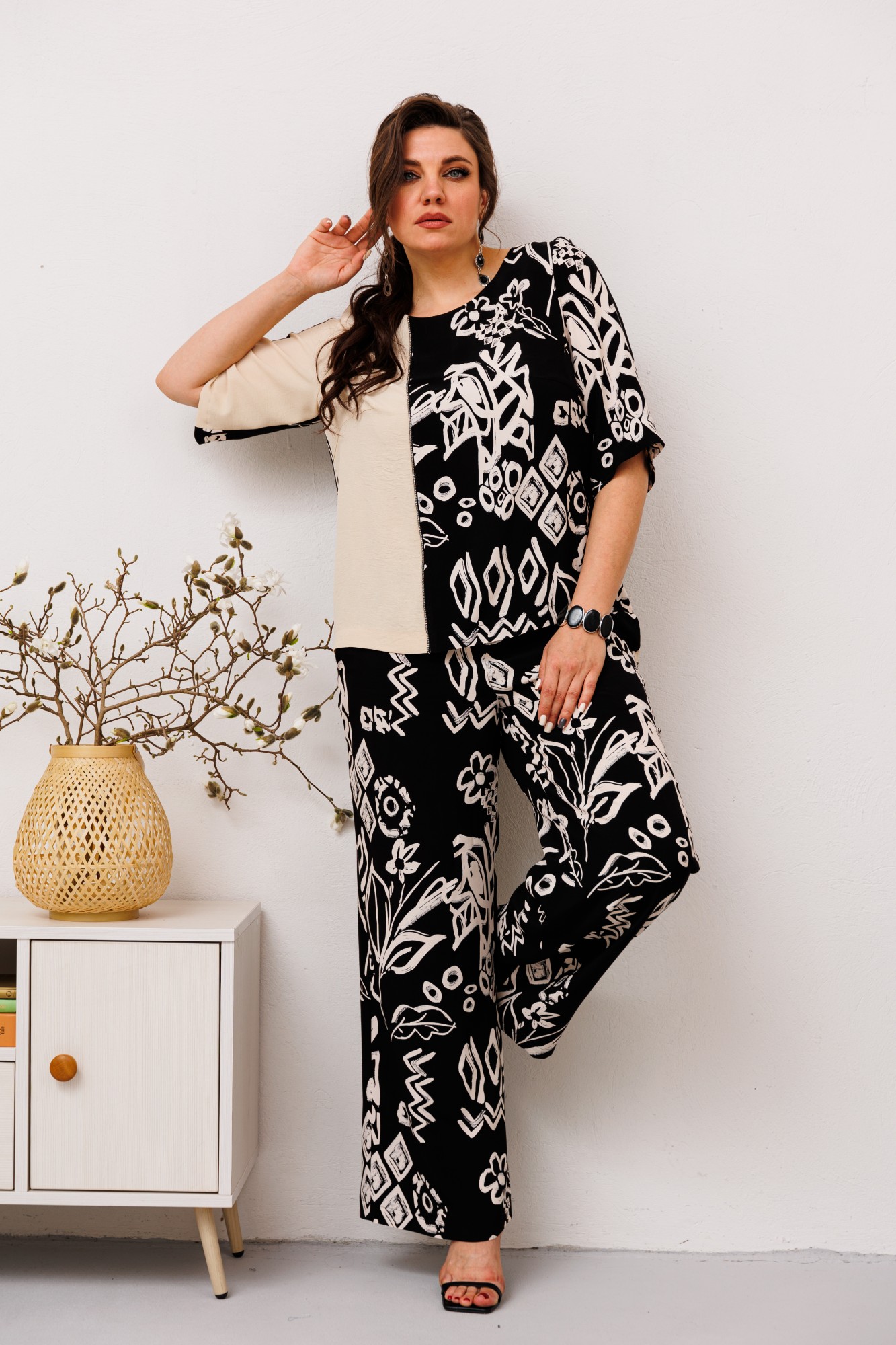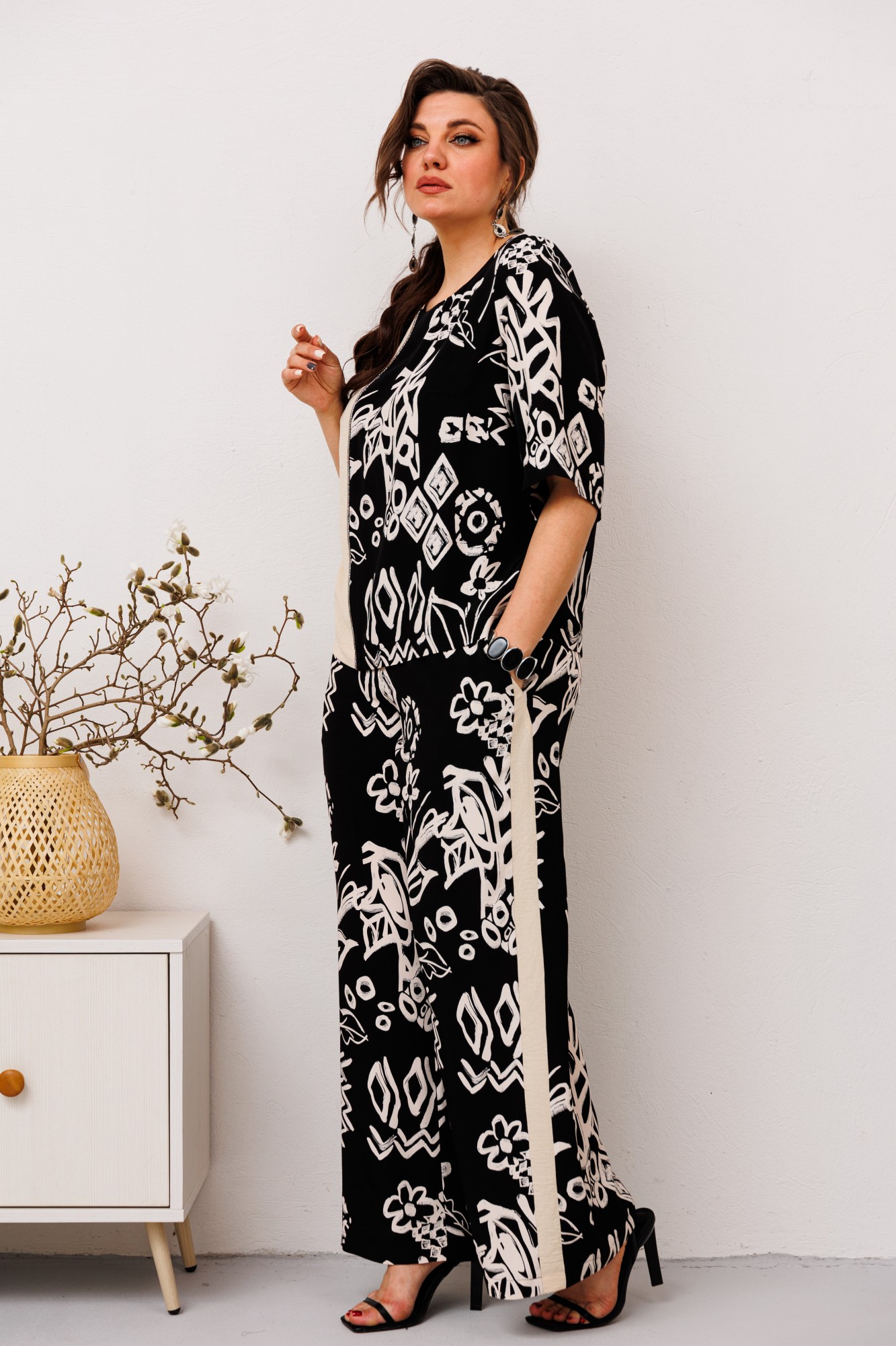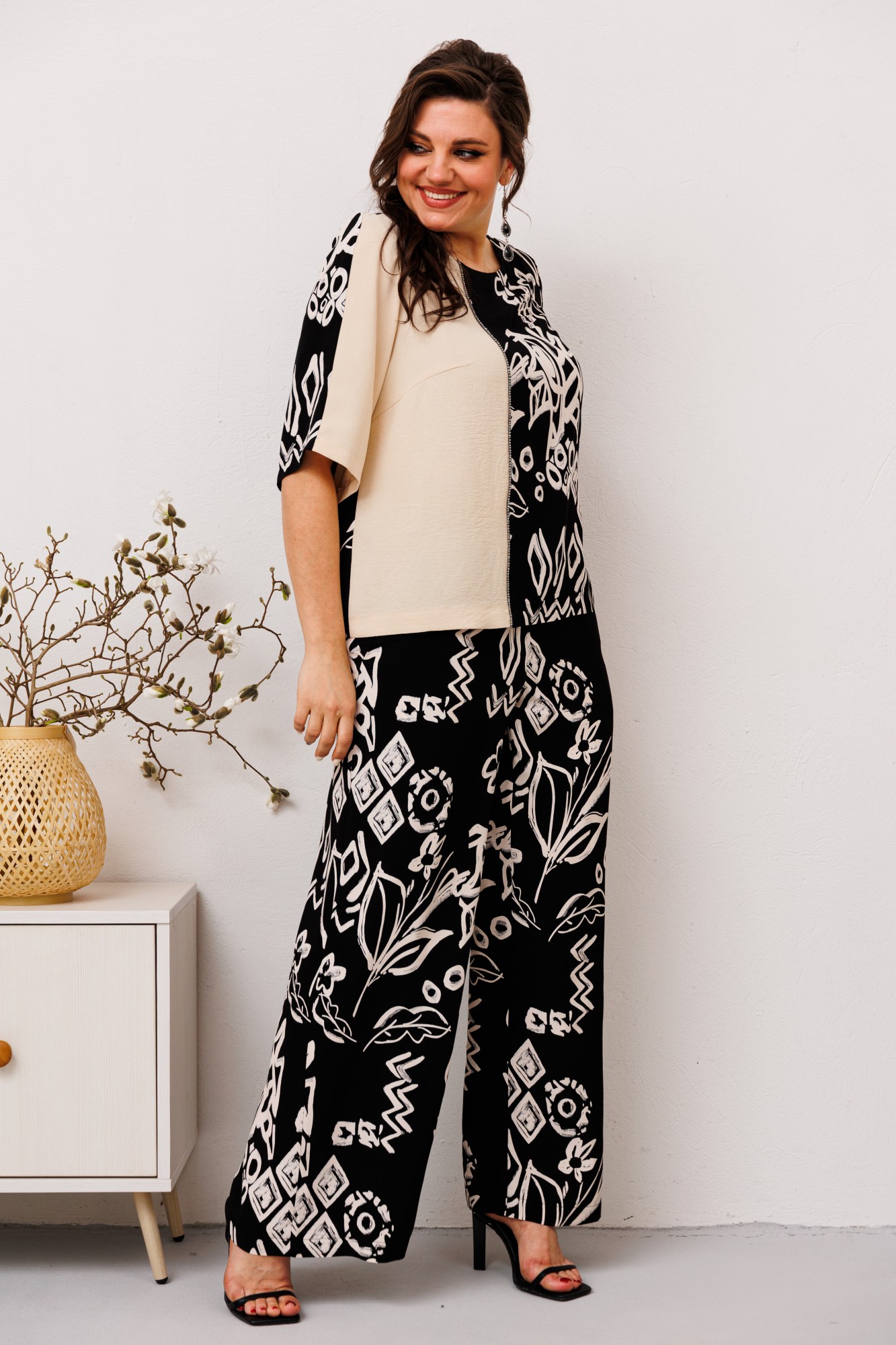 Брючный костюм Romanovich Style 2-2491 черный, молочный с ID товара 391975