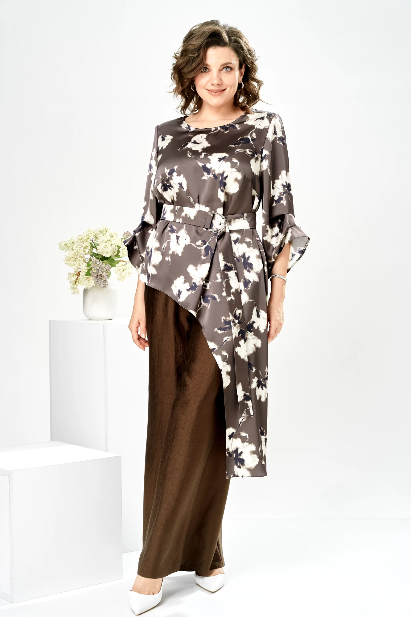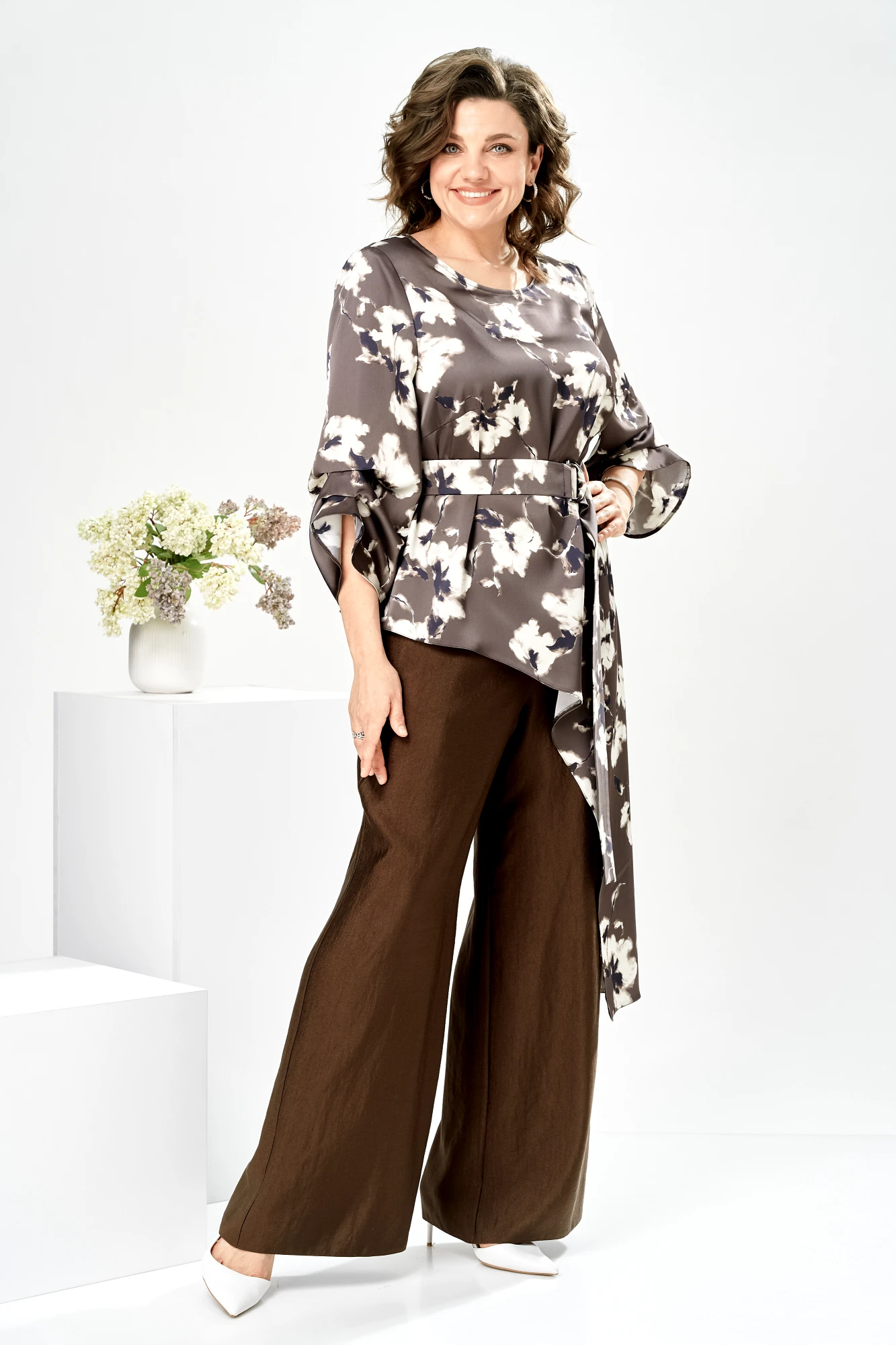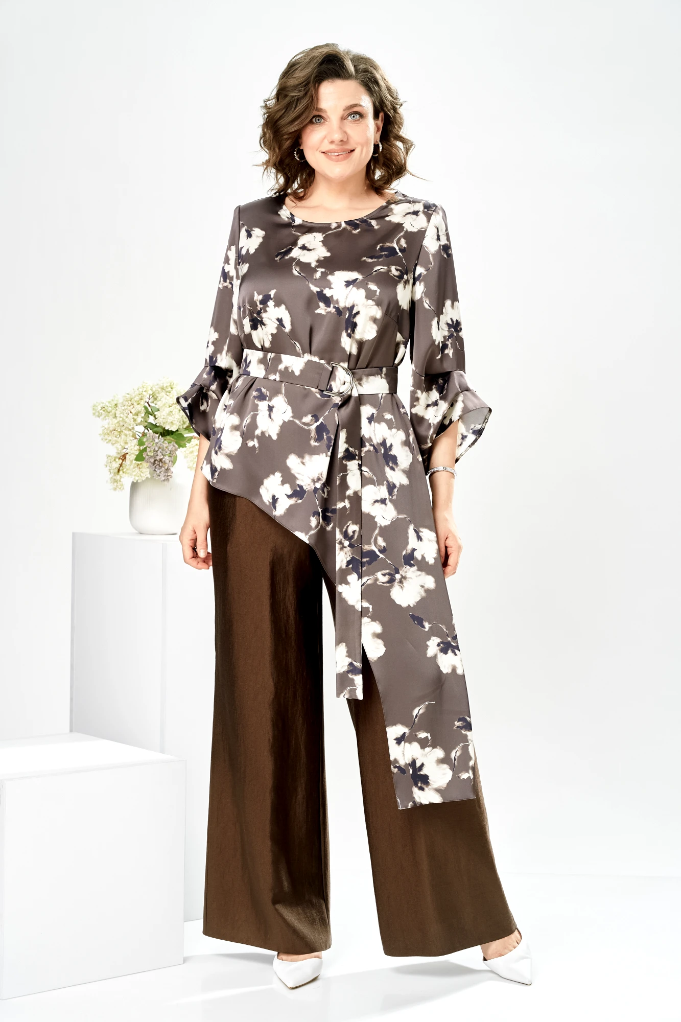 Брючный костюм Romanovich Style 2-2750 цветы, коричневый