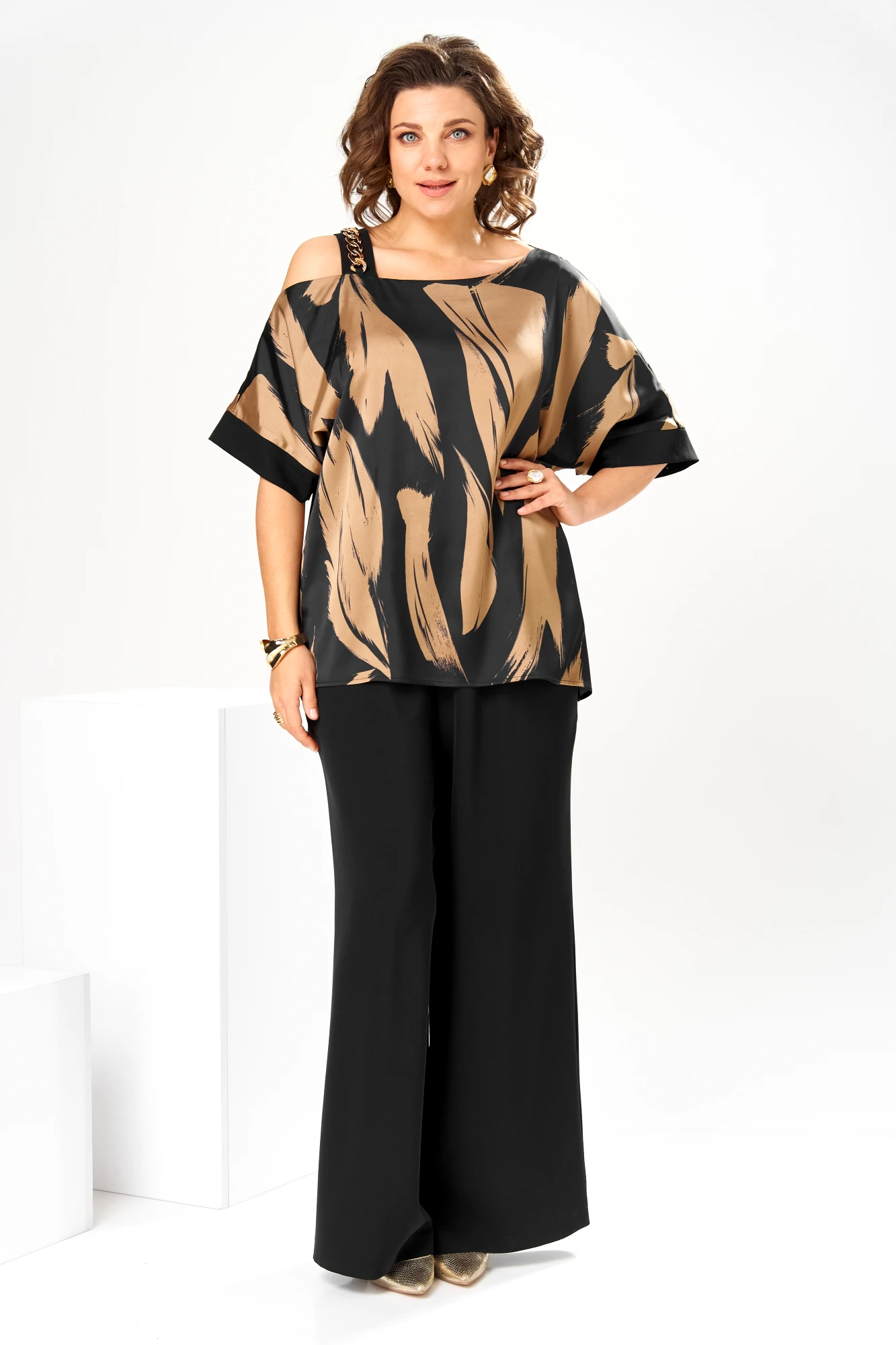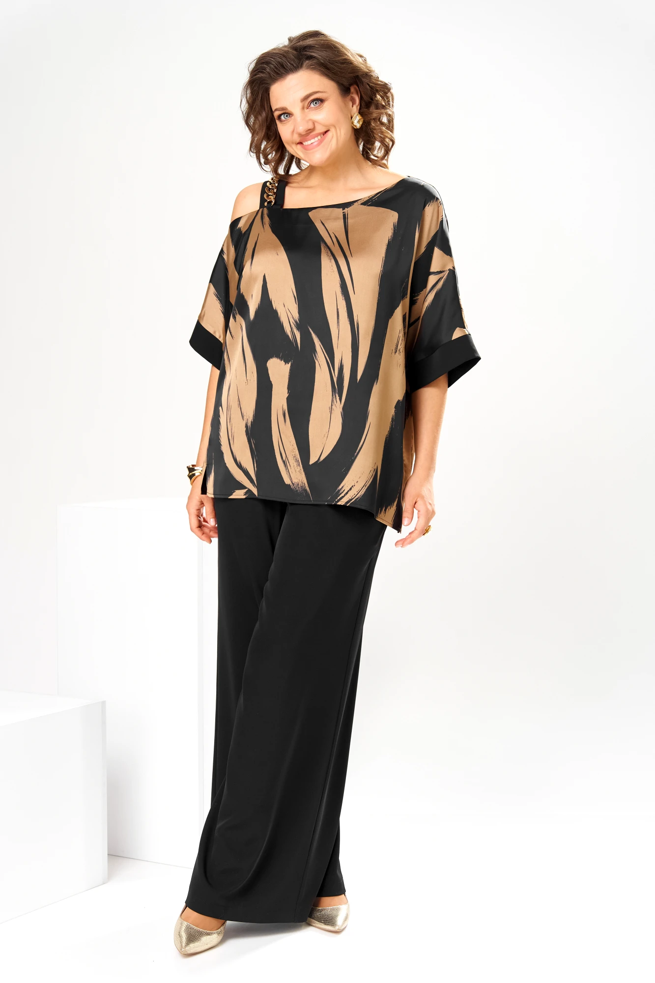 Брючный костюм Romanovich Style 2-2884 двойка черный с коричневым