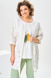 Брючный костюм Romanovich Style 3-2377 тройка белый, салатовый с ID товара 423907