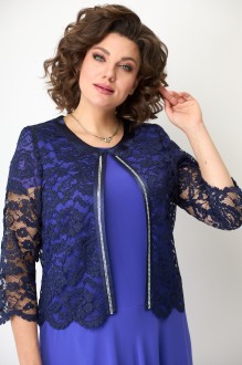 Наша фирма представляет для наших самых модных и красивых клиенток комплект, который состоит из жакета, брюк свободного кроя и топа. Жакет прямого силуэта из трикотажной ткани. Спинка прямая. Полочка с нагрудной косой вытачкой. По переду карманы (листочка). Рукав 7/8, по центру рукава вставка из сетки с паетками. Воротник лацканы, застежка на пуговицах. Жакет без подкладки.