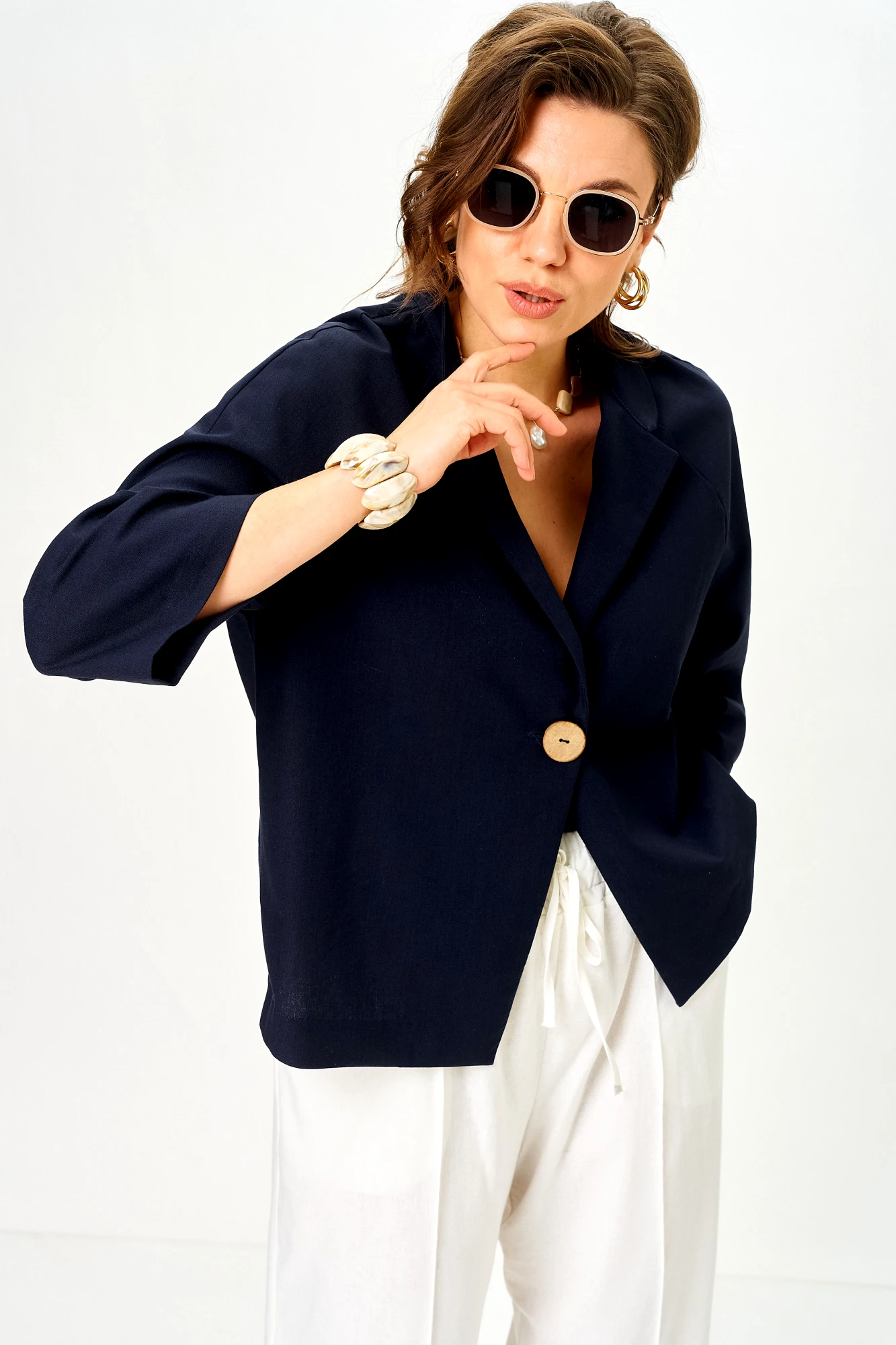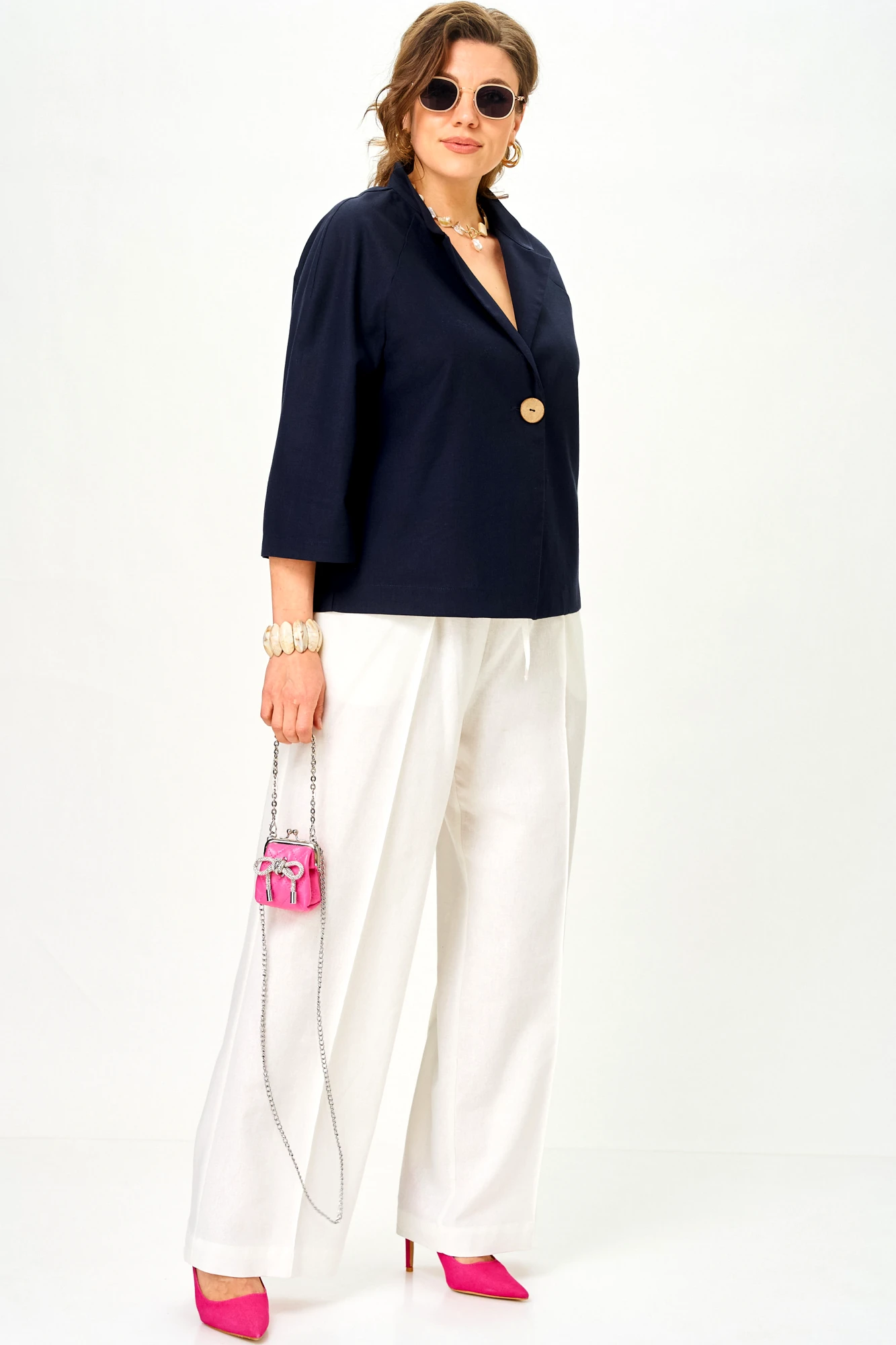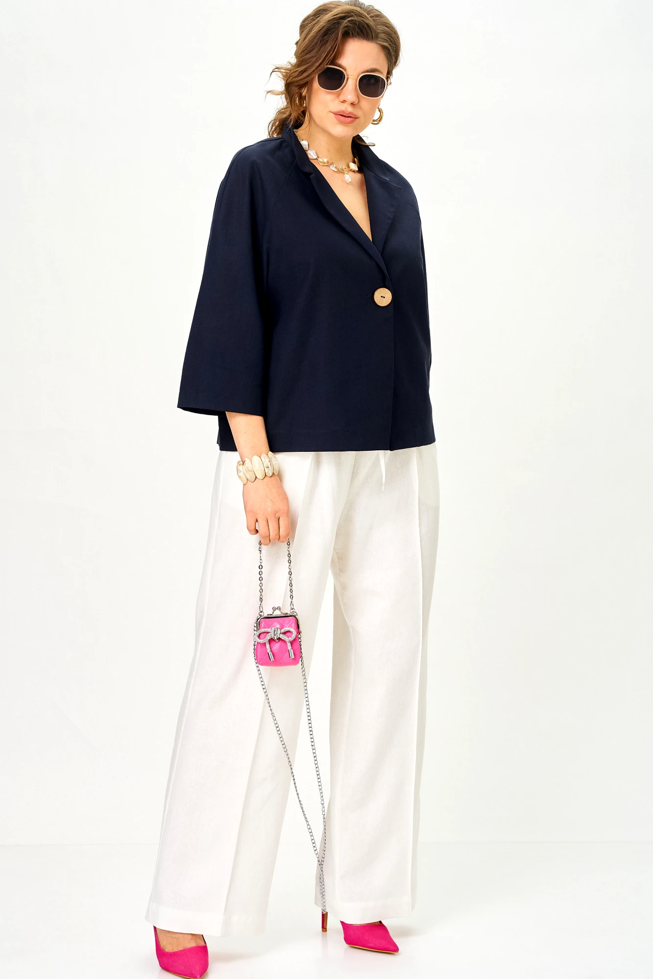 Брючный костюм SOVA 11333 сине-молочный
