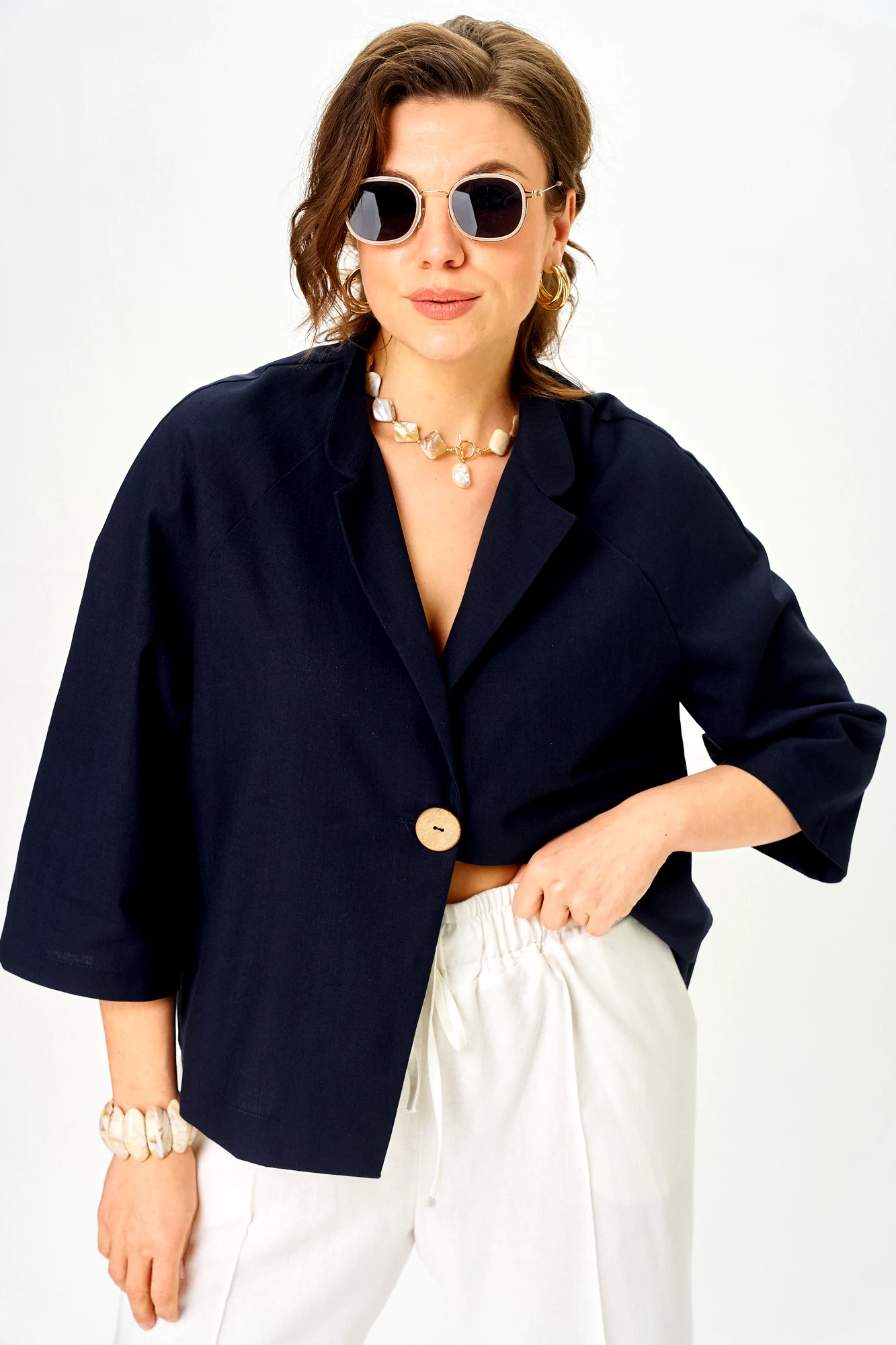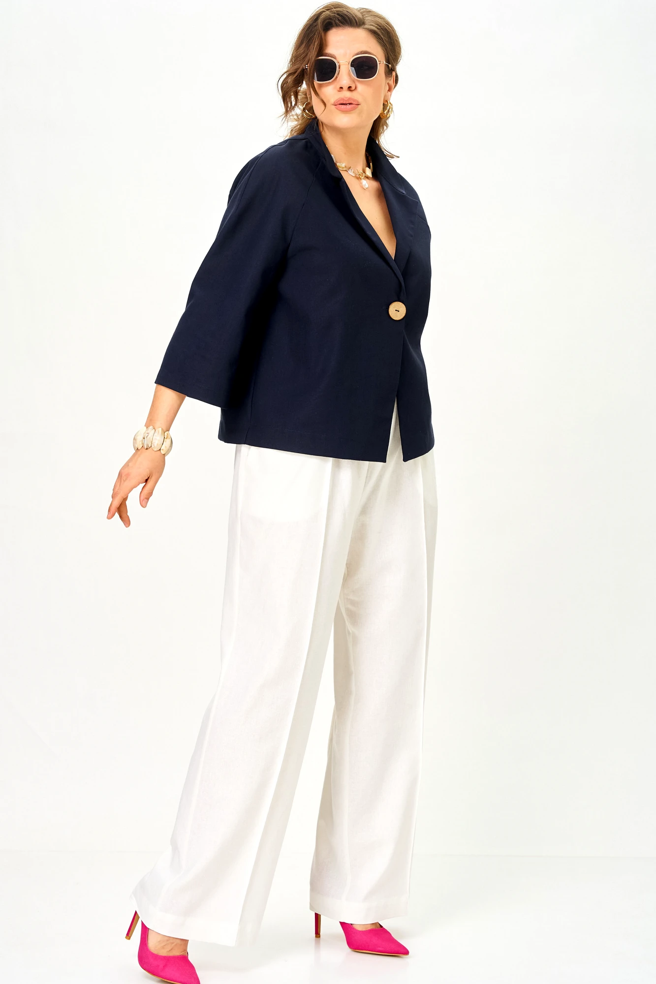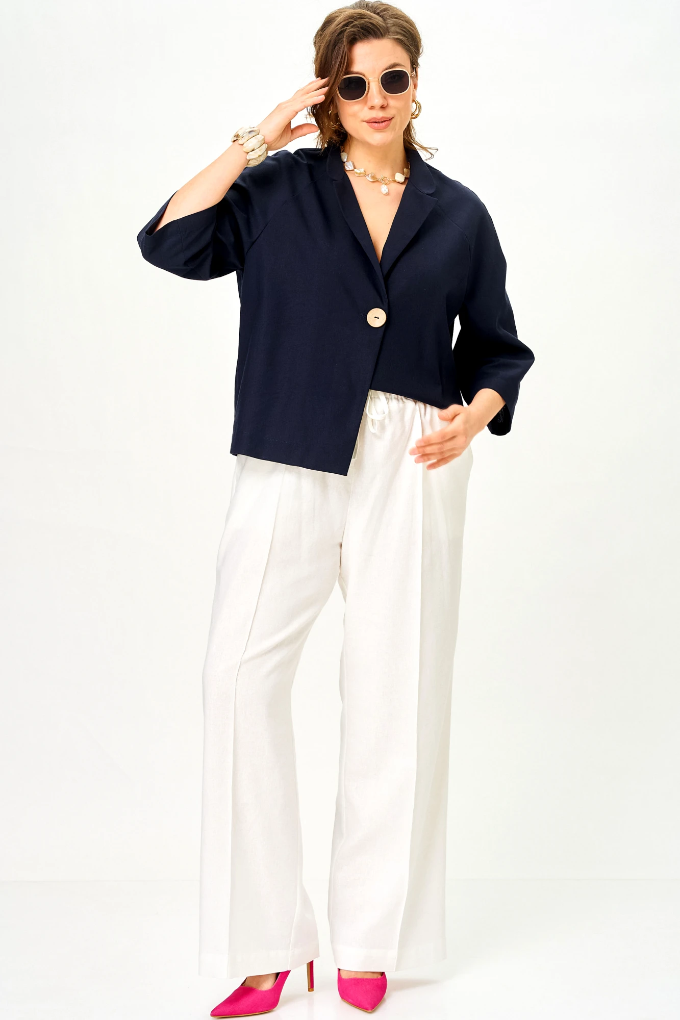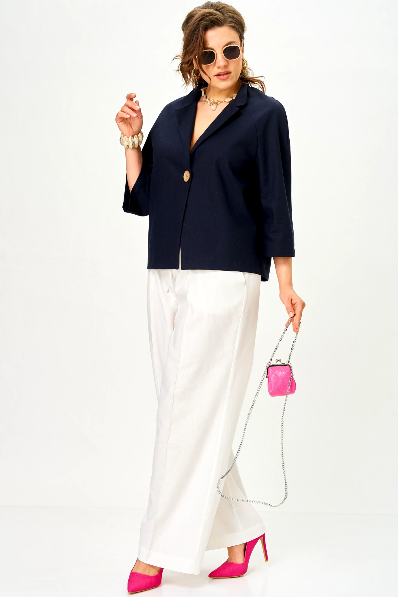 Брючный костюм SOVA 11333 сине-молочный