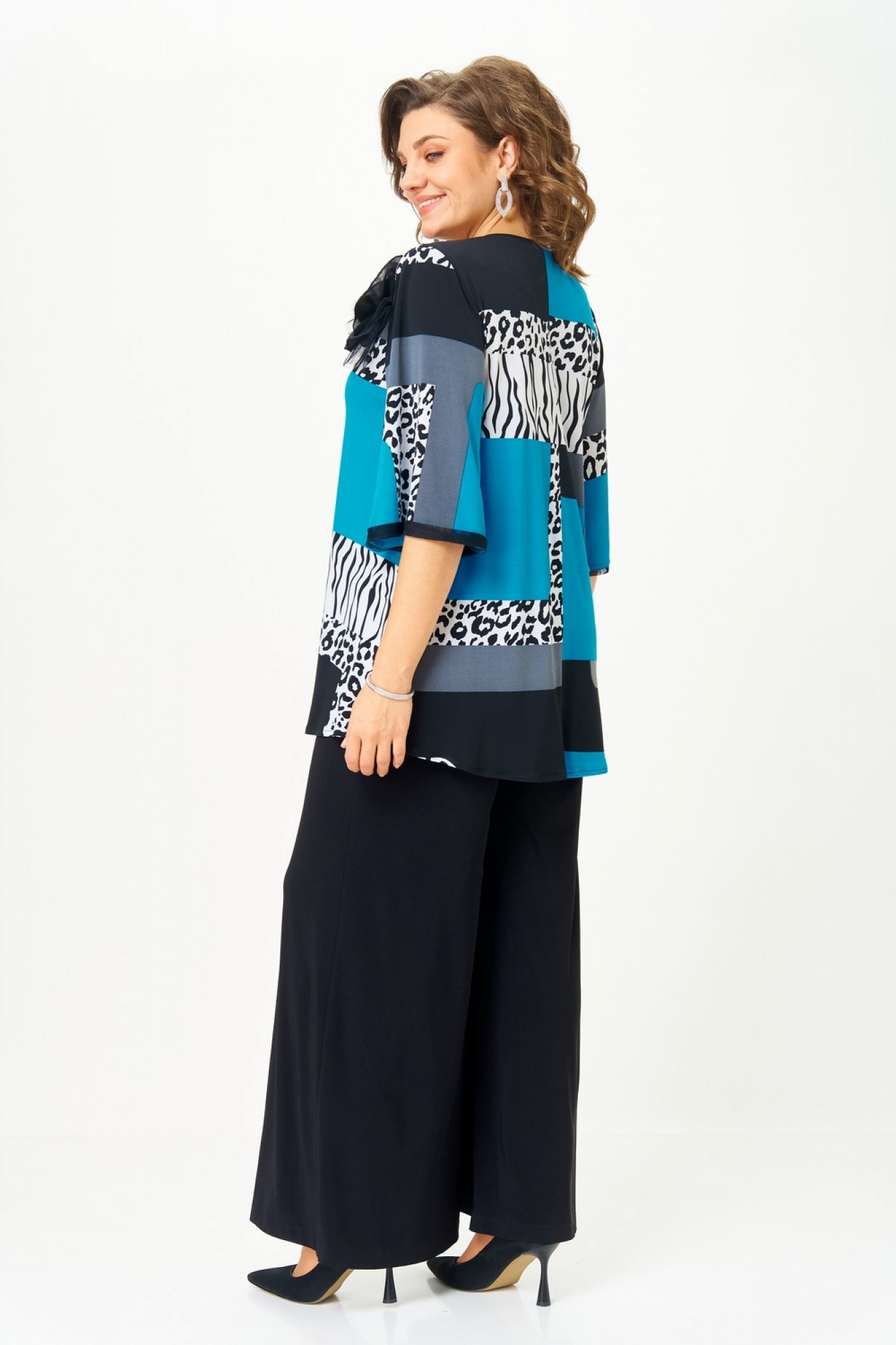 Брючный костюм Svetlana-Style 5035 двойка голубой, черно-белый