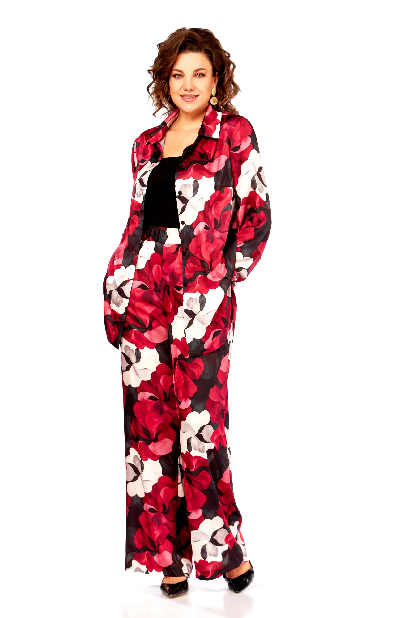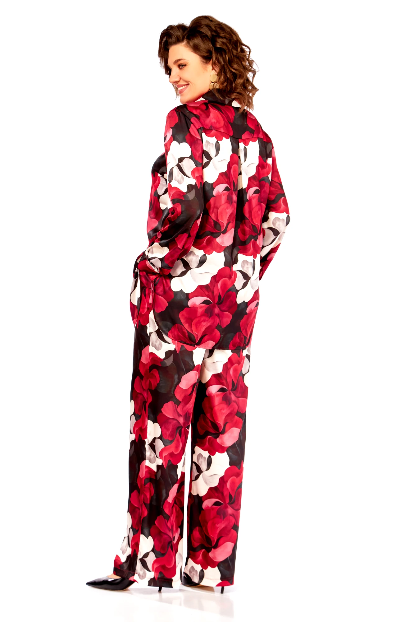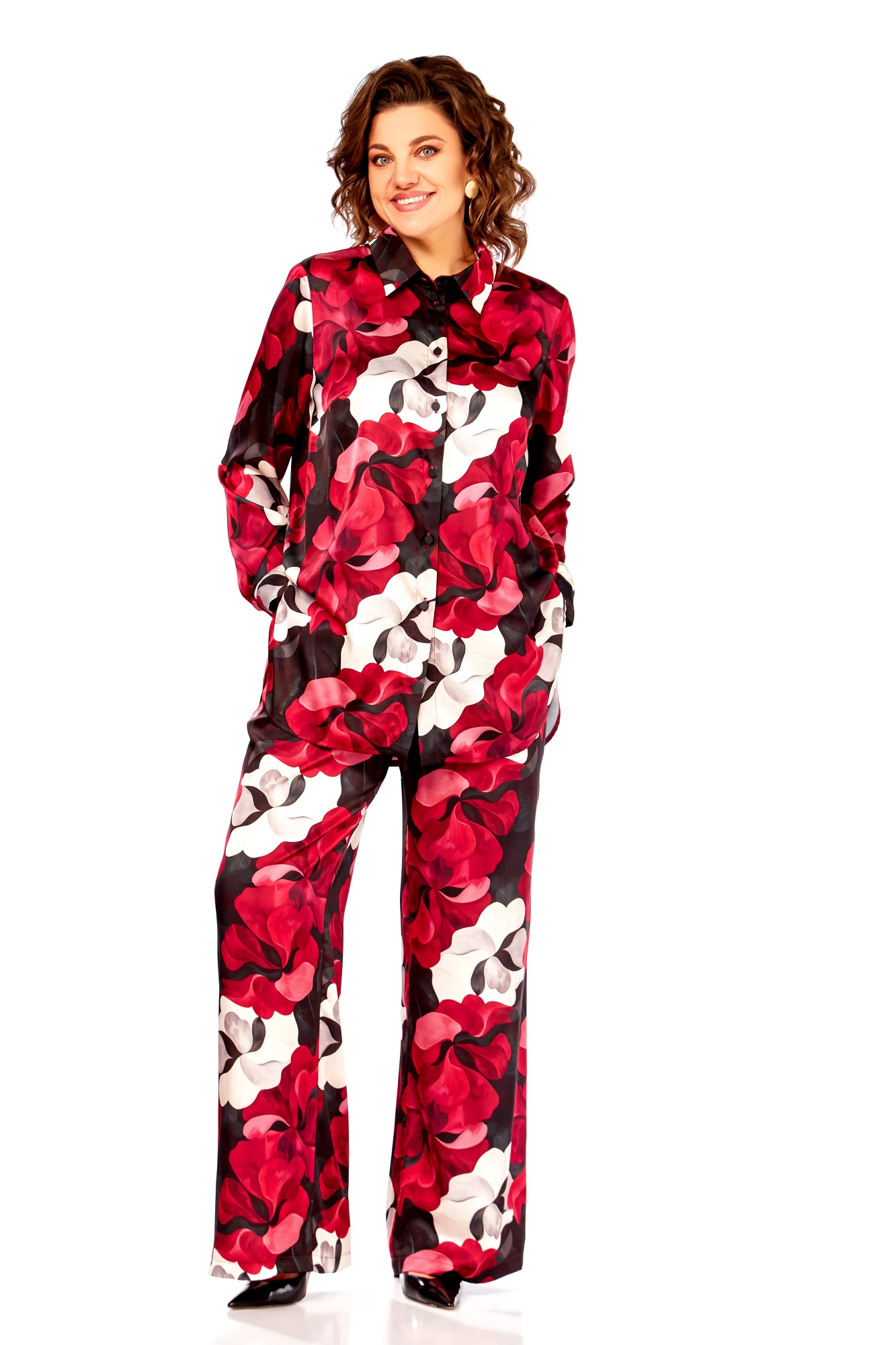 Брючный костюм Swallow 893 двойка бордово-бежевые цветы