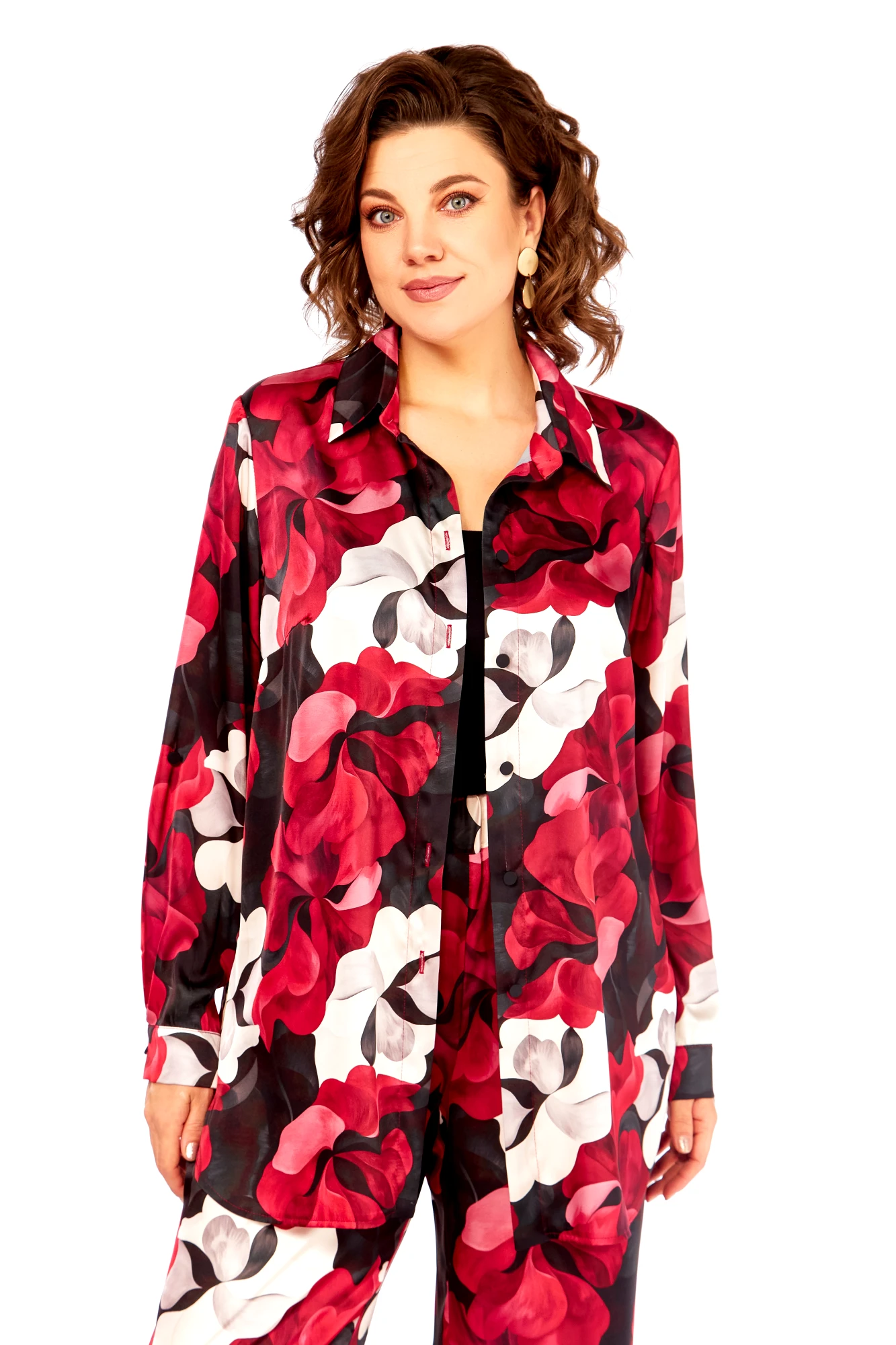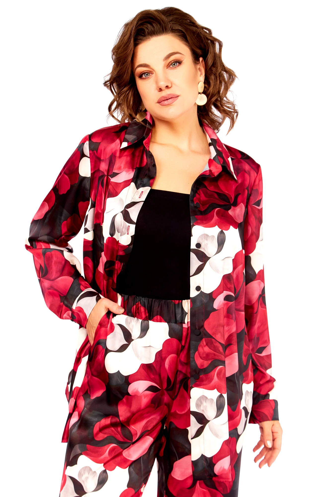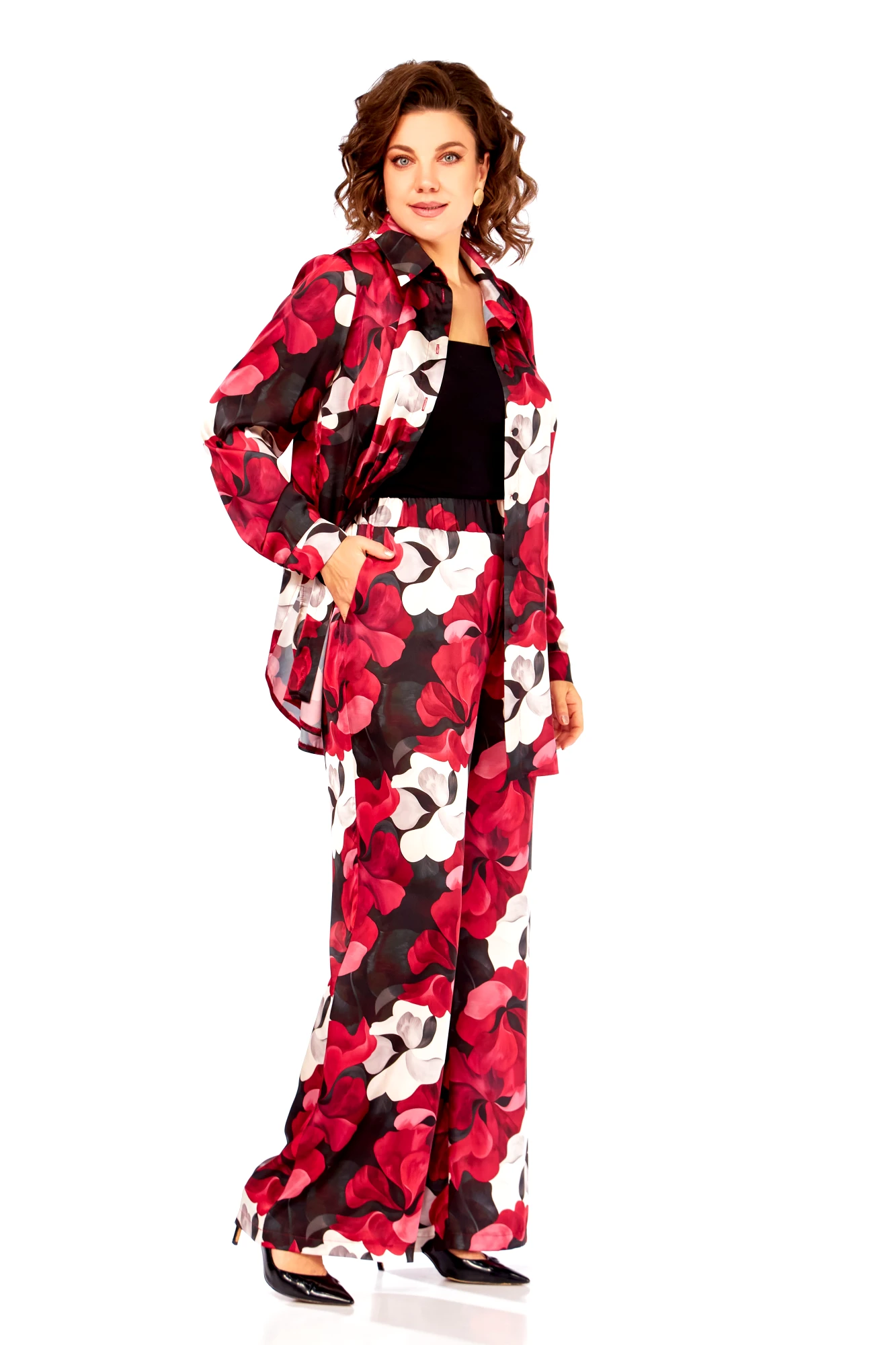 Брючный костюм Swallow 893 двойка бордово-бежевые цветы
