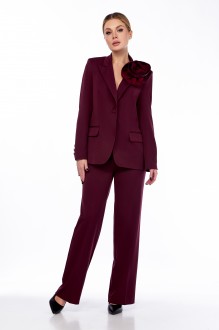 Костюм двух предметный состоящий из жакета и брюк. Жакет на подкладке прямого силуэта с застежкой на 2 петли и пуговицы, по переду обработаны прорезные карманы с клапаном. Спинка со средним швом, удлиненной шлицей, справа сбоку карман в рамку с застежкой на пуговицу. Рукав втачной, двухшовный, по локтевому шву расположены шлицы с застежкой на пять пуговиц. Брюки прямые на поясе, застежка на пуговицу и тесьму молнию, с боковыми карманами.