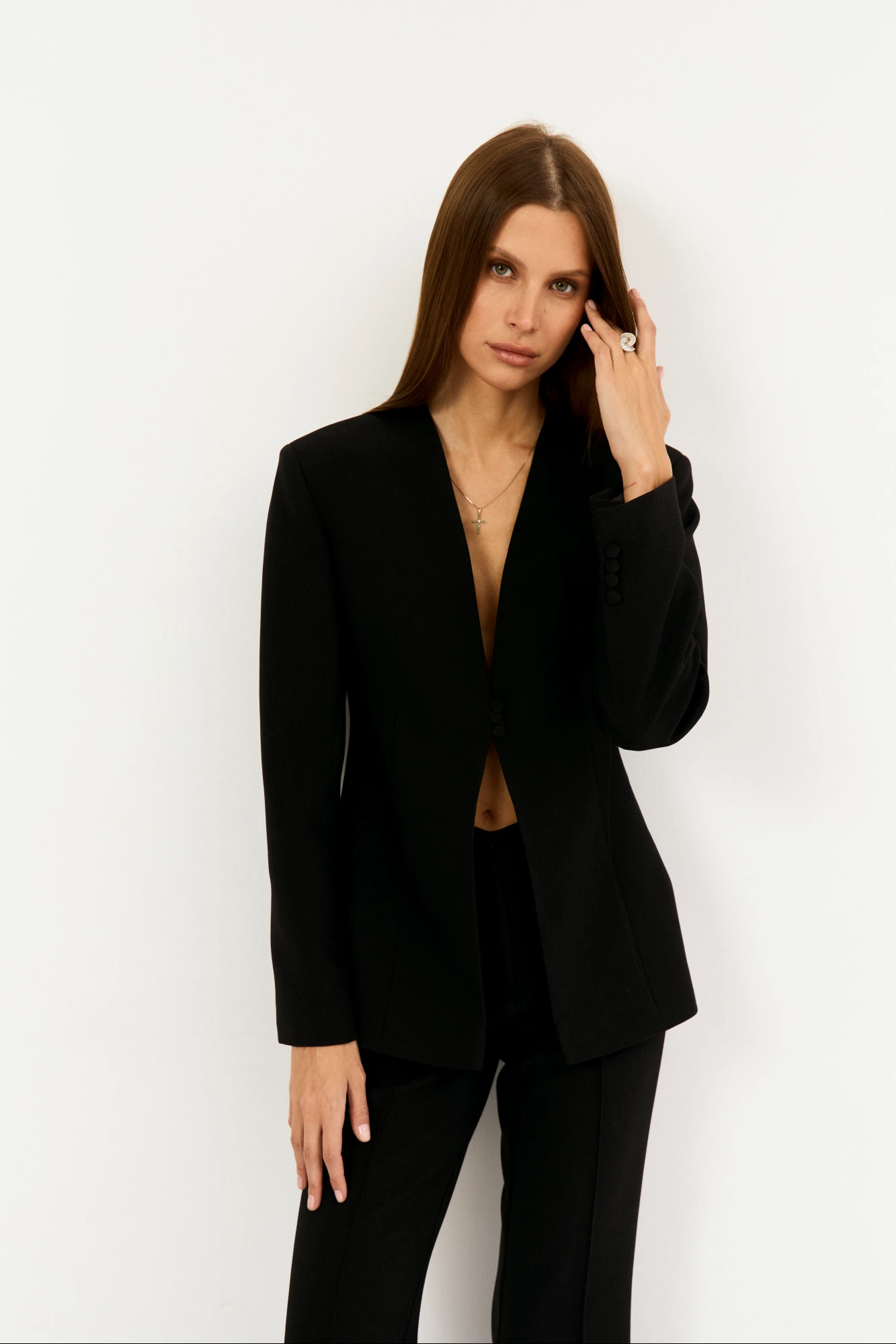 полиэстер 65%, вискоза 32%, спандекс 3%. Подкладка – ПЭ 55%, вискоза 45%