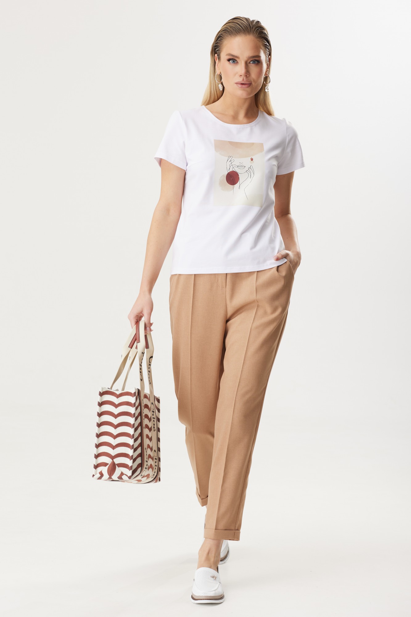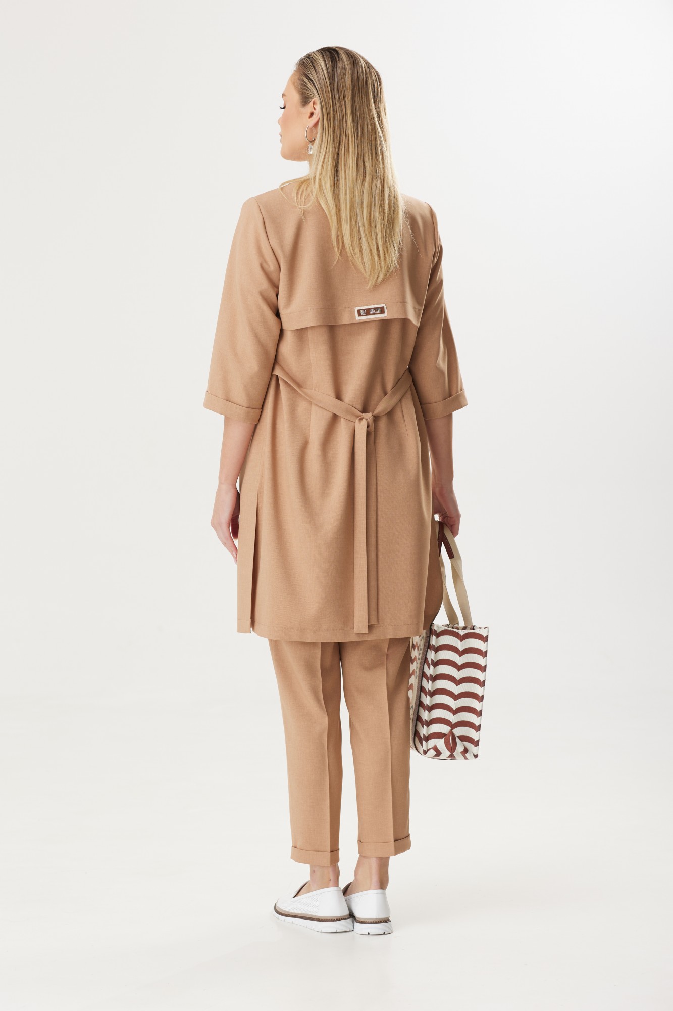 Костюм с удлиненным жакетом от белорусского бренда Твой Имидж – это изящное и элегантное решение для стильных и современных женщин. Уникальность этой модели заключается в сочетании классического костюма с длинным кардиганом, который придает образу особую привлекательность и неповторимость. Удлиненный жакет – это не только модный тренд, но и практичное решение. Он позволяет создать элегантный и стройный силуэт, подчеркивая достоинства фигуры и скрывая недостатки. Благодаря своей длине, такой костюм придает дополнительную изящность и шик образу. Важным аспектом при покупке костюма с удлиненным жакетом является правильный выбор материала. Качественная ткань лен вишер, из которой выполнена модель, обеспечит долговечность изделию и приятные ощущения его обладательнице. Элегантный женский костюм от белорусского производителя состоит из жакета, брюк и блузы. Жакет без подкладки прямого силуэта с намеком на полуприлегание, центральной бортовой застежкой на две петли-пуговицы. Рукав втачной, длиной ¾ с манжетой. Спинка с отлетной кокеткой и декоративной нашивкой, талиевыми вытачками и поясом, который можно завязывать спереди или сзади. В жакете по боковым швам расположены разрезы. Длина жакета – немного ниже колена. Брюки классической формы, зауженные к низу со стрелками по передним и задним половинкам. По низу брюк манжеты. Верхний срез брюк обработан поясом с резинкой по боковым швам. На задних половинках расположены талиевые вытачки, в боковых швах – наклонные карманы. Перед обработан поясом фигурной формы и декоративным клапаном, на котором пришита пуговица. Блуза выполнена из хлопкового трикотажного полотна прямого силуэта. Она дополнена нагрудными вытачками и коротким втачным рукавом. По переду майки расположен стильный принт, который подчеркнет уникальность образа. Одним из преимуществ костюма с удлиненным жакетом является его универсальность. Он подойдет как для делового стиля, так и для особых мероприятий или торжественных случаев. Сочетание такого костюма с брюками в едином цветовом решении, либо с контрастной деталью, создает гармоничный и стильный образ. Дополняя его аксессуарами, такими как пояс, шарф, брошь или сумка, можно добавить индивидуальности и неповторимости. Костюм с удлиненным жакетом – отличный выбор для тех, кто стремится выглядеть элегантно и модно. Благодаря своему уникальному дизайну он придает женщине уверенности и шарма. Независимо от того, какое мероприятие предстоит, такой костюм поможет создать неповторимый образ и вызвать восхищение окружающих.