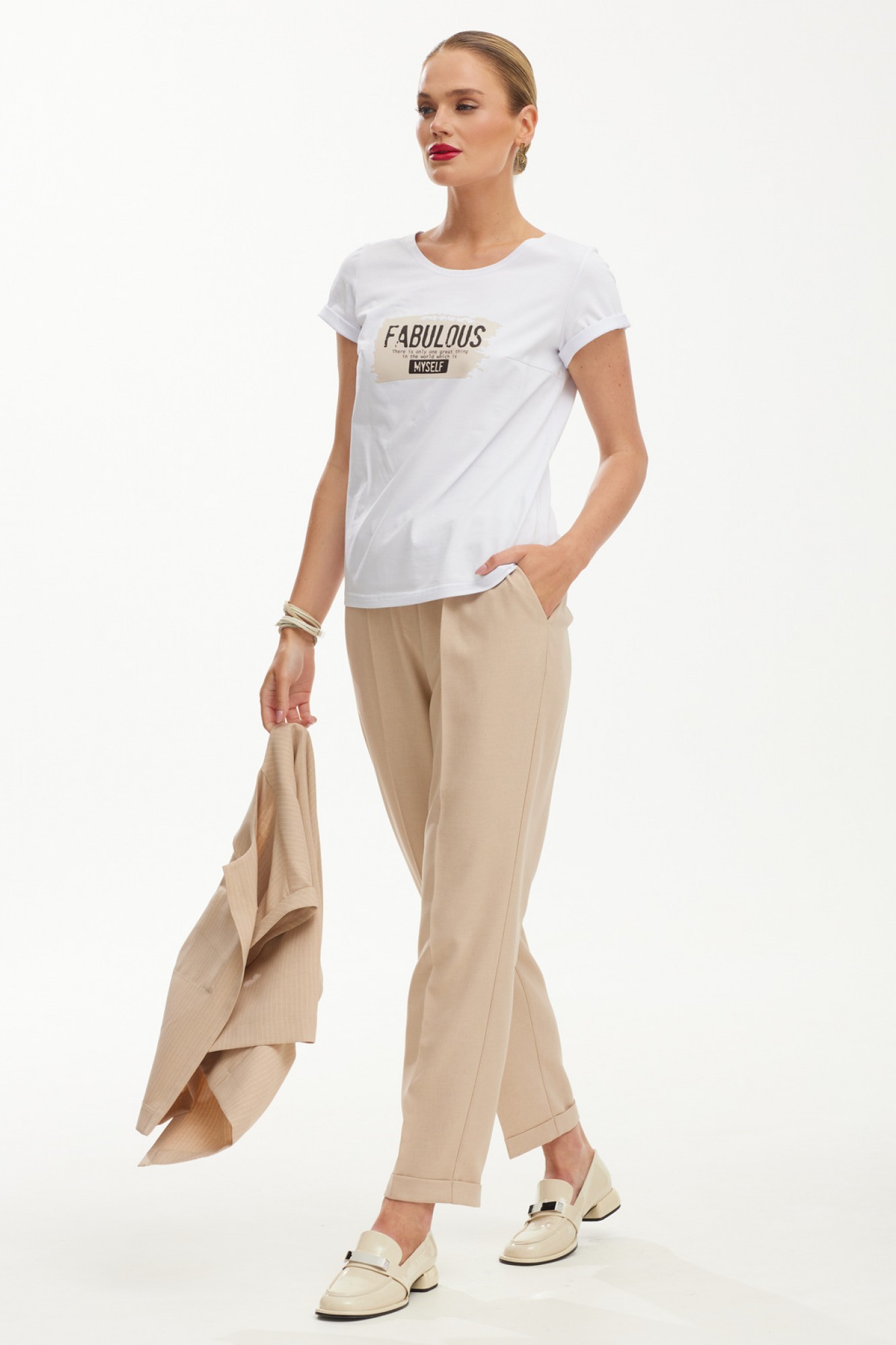 жакет и брюки – вискоза 87%, полиэстер 13%; футболка – хлопок 97%, эластан 3%