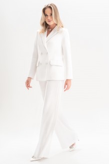 Этот белоснежный женский костюм из льна — идеальный выбор для тех, кто ценит сдержанную роскошь и натуральные ткани. Прямой двубортный жакет украшен изысканным кантом, подчёркивающим линии силуэта и придающим образу благородство. Изящные пуговицы с фактурным блеском дополняют стильный образ. Свободные брюки с высокой посадкой визуально удлиняют ноги и дарят максимальный комфорт даже в жаркий день. Льняная ткань приятна к телу, дышащая и экологичная — идеальный выбор для весны и лета. Сочетайте костюм с базовым топом и лодочками для делового образа или носите с лёгкой майкой и сандалиями — для расслабленного шика в отпуске. Костюм женский состоит из жакета и брюк, выполненных из костюмной льняной ткани, предназначен как для нарядной так и для повседневной носки. Жакет свободного полуприлегающего силуэта, на подкладке, с двубортной застежкой на 2 петли и 4 металлические пуговицы (размер и цвет фурнитуры может незначительно отличаться от фото). Перед и спинка с отрезным бочком. Перед в нижних частях с прорезными карманами с клапаном и обтачкой, с таллиевыми вытачками, с рельефными швами бочка. Клапаны по двум сторонам с отделочным серебристым кантом, концы клапанов слегка закруглены. Спинка со средним швом, с рельефными швами бочка. Рукава втачные, двухшовные, длинные. В локтевом шве по низу с отлетной шлицей с 3-мя петлями и 3-мя пуговицами. Горловина оформлена воротником пиджачного типа. Концы воротника и лацкана закругленные. Воротник, лацканы, борта, низ переда и спинки обработан отделочным серебристым кантом. Жакет с плечевыми накладками. Брюки женские прямые от бедра, в размерах 42,44,46,48 на обтачном поясе, в размерах 50,52 с притачным поясом, с резинками на уровне боковых швов. По поясам с 5-ю шлевками, с застежкой на тесьму - «молнию», расположенную в среднем шве передних половинок. Пояс застегивается спереди на 1 пришивной потайной крючок, 1 петлю и 1 потайную пуговицу (размер и цвет фурнитуры может незначительно отличаться от фото). Задние половинки брюк с таллиевыми вытачками, идущих от пояса вниз. Брюки с заутюженными стрелками по передним и задним половинкам.