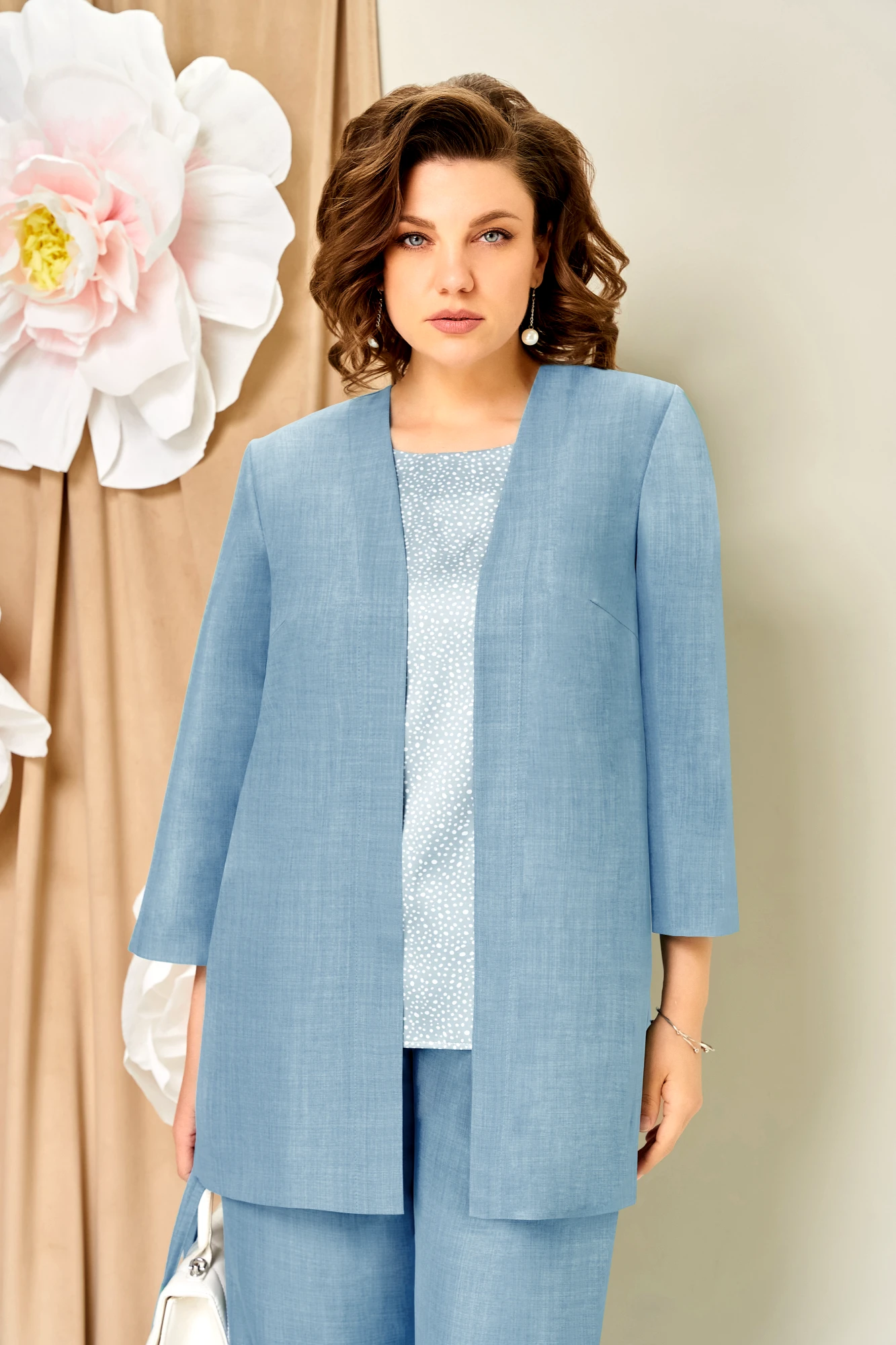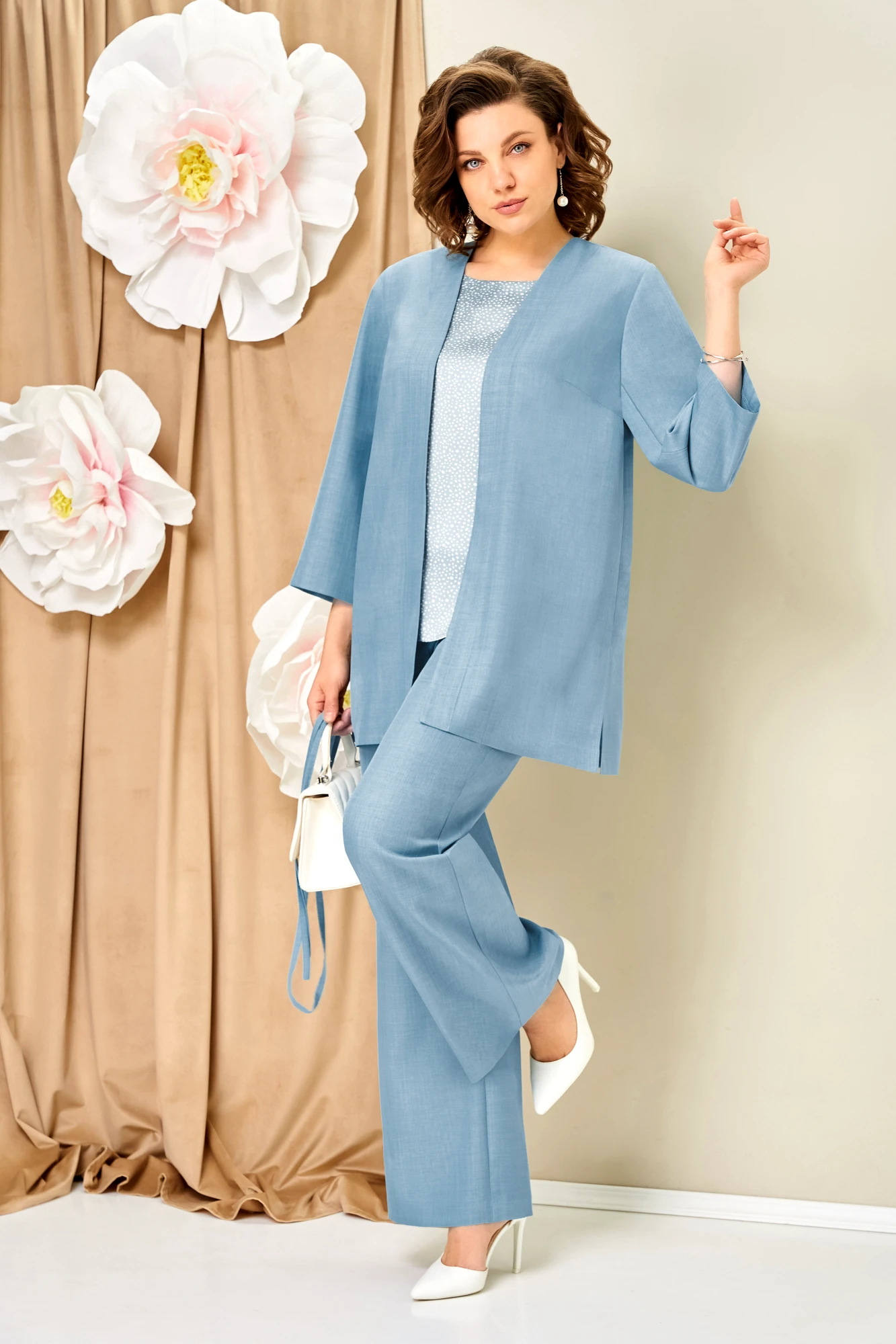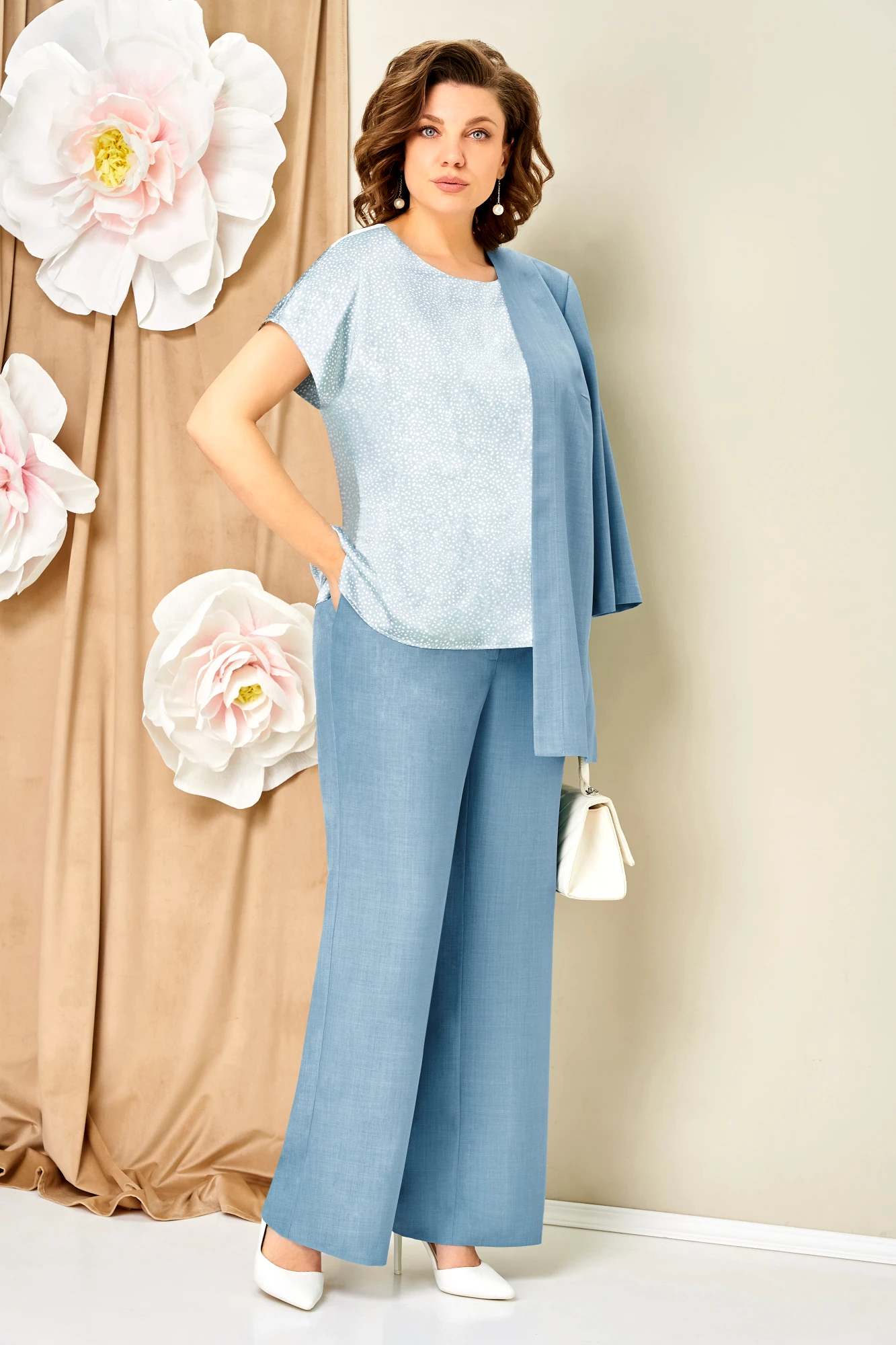 Брючный костюм Volna 1458 тройка небесно-голубой