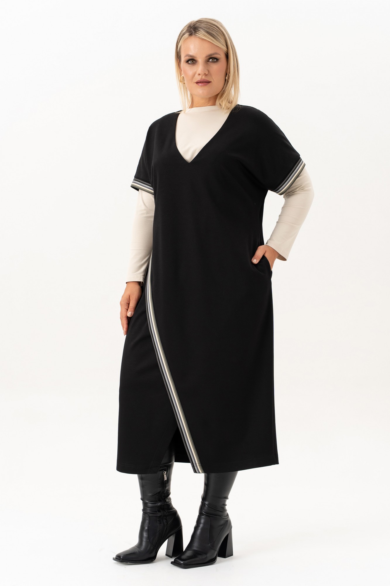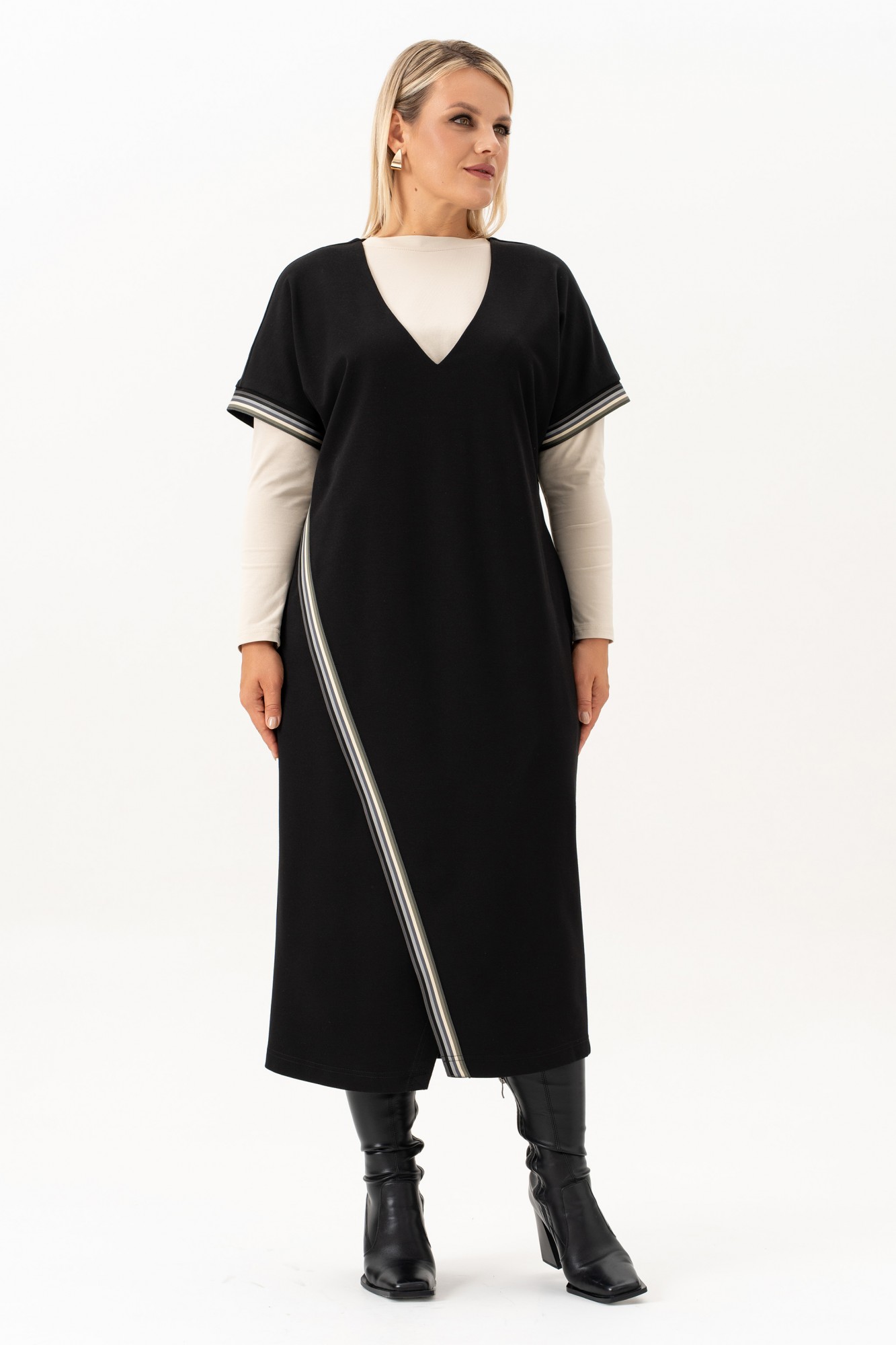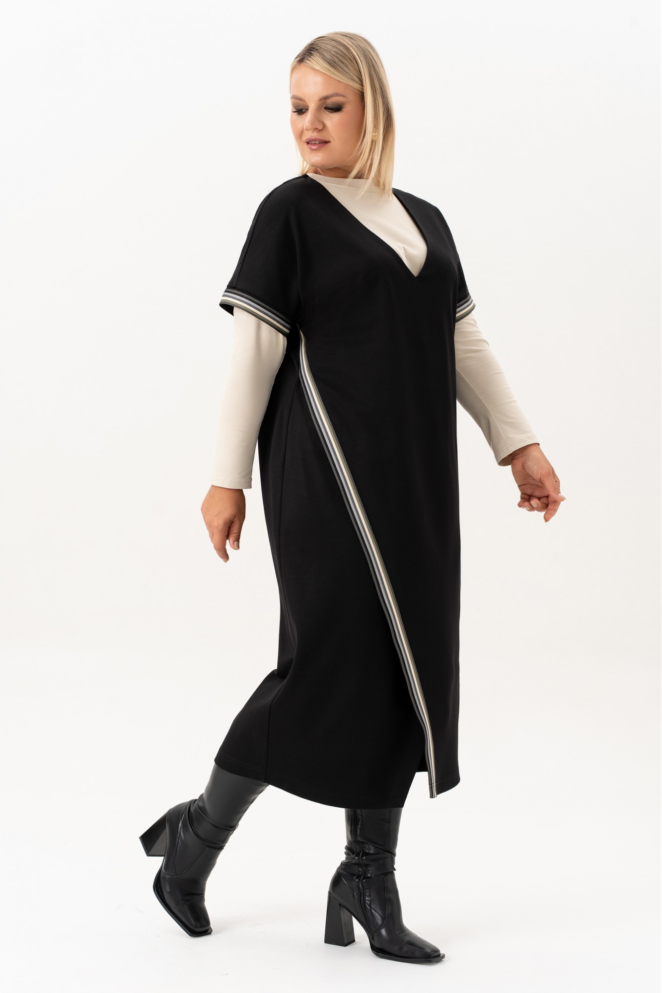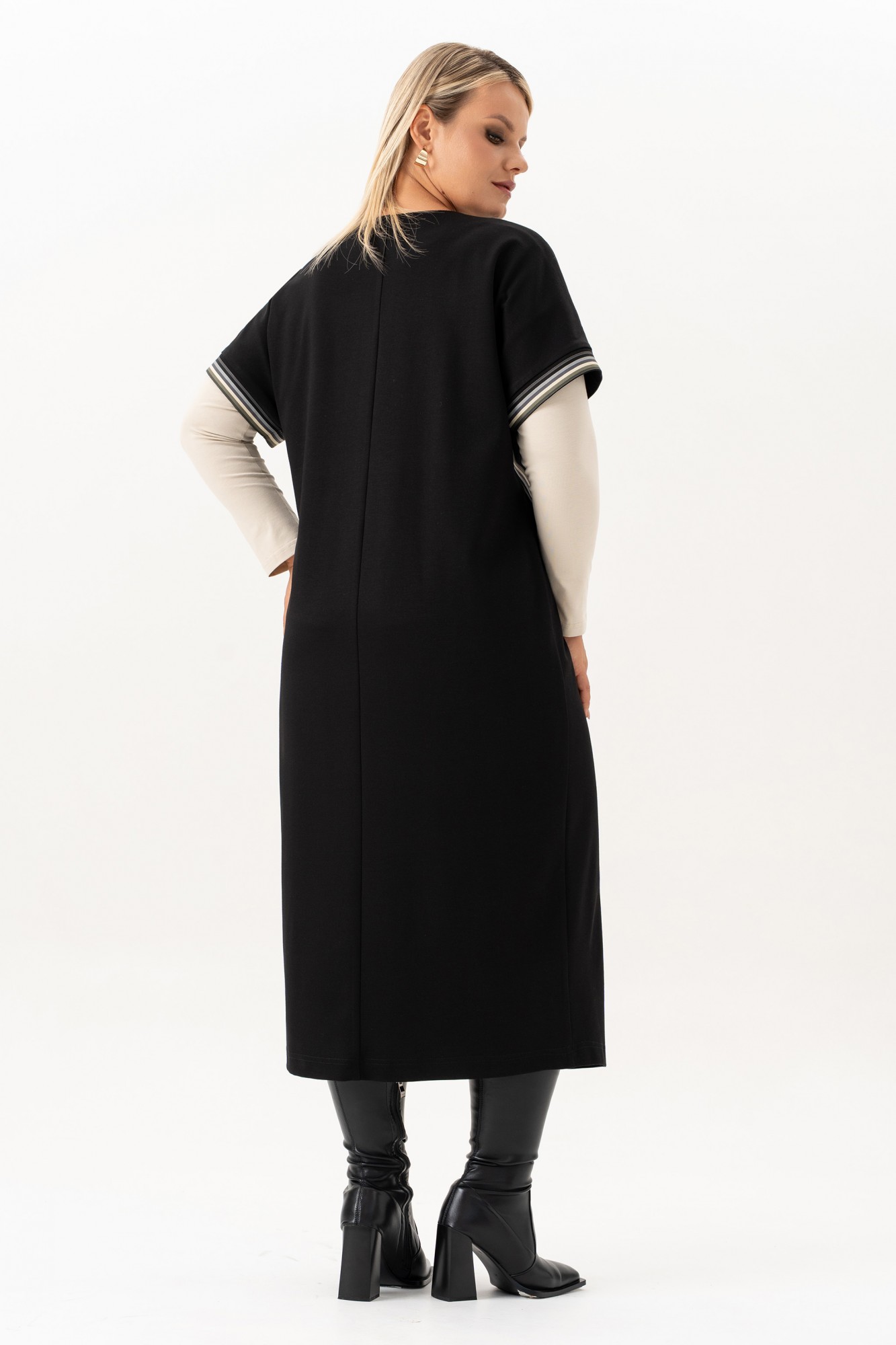 Для офиса и для прогулок, для деловой встречи, корпоратива и даже для школы - этот сарафан свободного покроя подойдет для любого случая. Модель дополнена базовой футболкой с длинным рукавом, Ваш стильный повседневный образ готов! Этот женский офисный сарафан выполнен из трикотажного полотна «Лакоста» - удобного и приятного к телу материала с основой из вискозы , в котором будет комфортно, ткань хорошо держит форму и отличается устойчивостью к износу. Разрез по переду изделия и проймы обработаны декоративной тесьмой. В левом боковом шве обработан карман, линия плеча спущена. Лонгслив выполнен из трикотажного полотна «Кулирка» на основе хлопка. Мы сшили эту модель в больших размерах, чтобы ее могли подобрать для себя обладательницы пышных форм. Этот наряд отлично впишется в строгий образ деловой дамы. Стильный сарафан элегантно впишется в нарядный и повседневный образ. Он подойдет как для любого праздничного мероприятия, так и на каждый день.