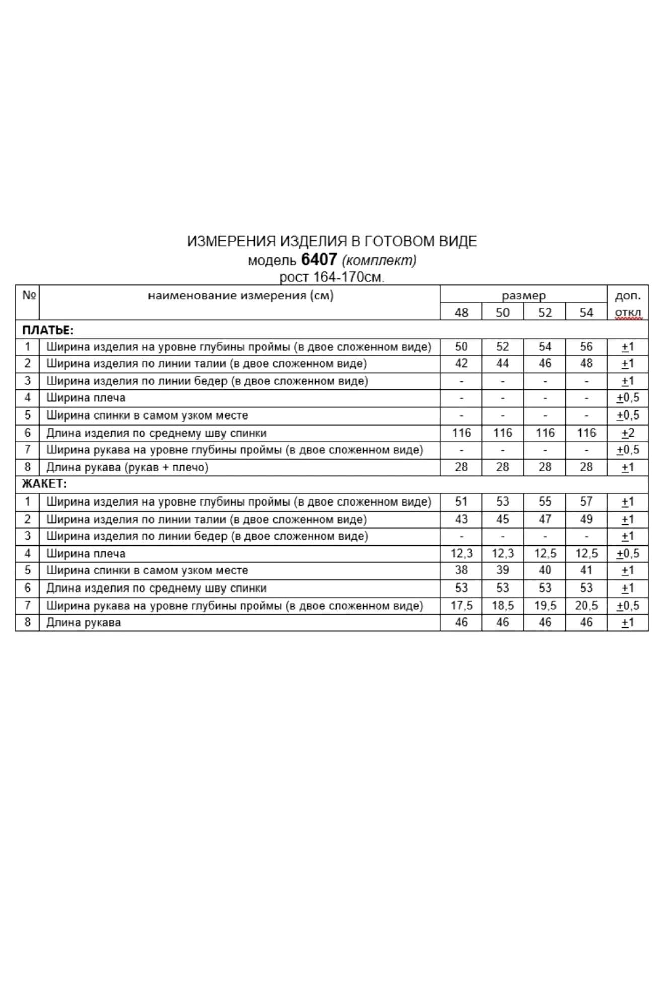 Длина рукава (жакет) – 46см