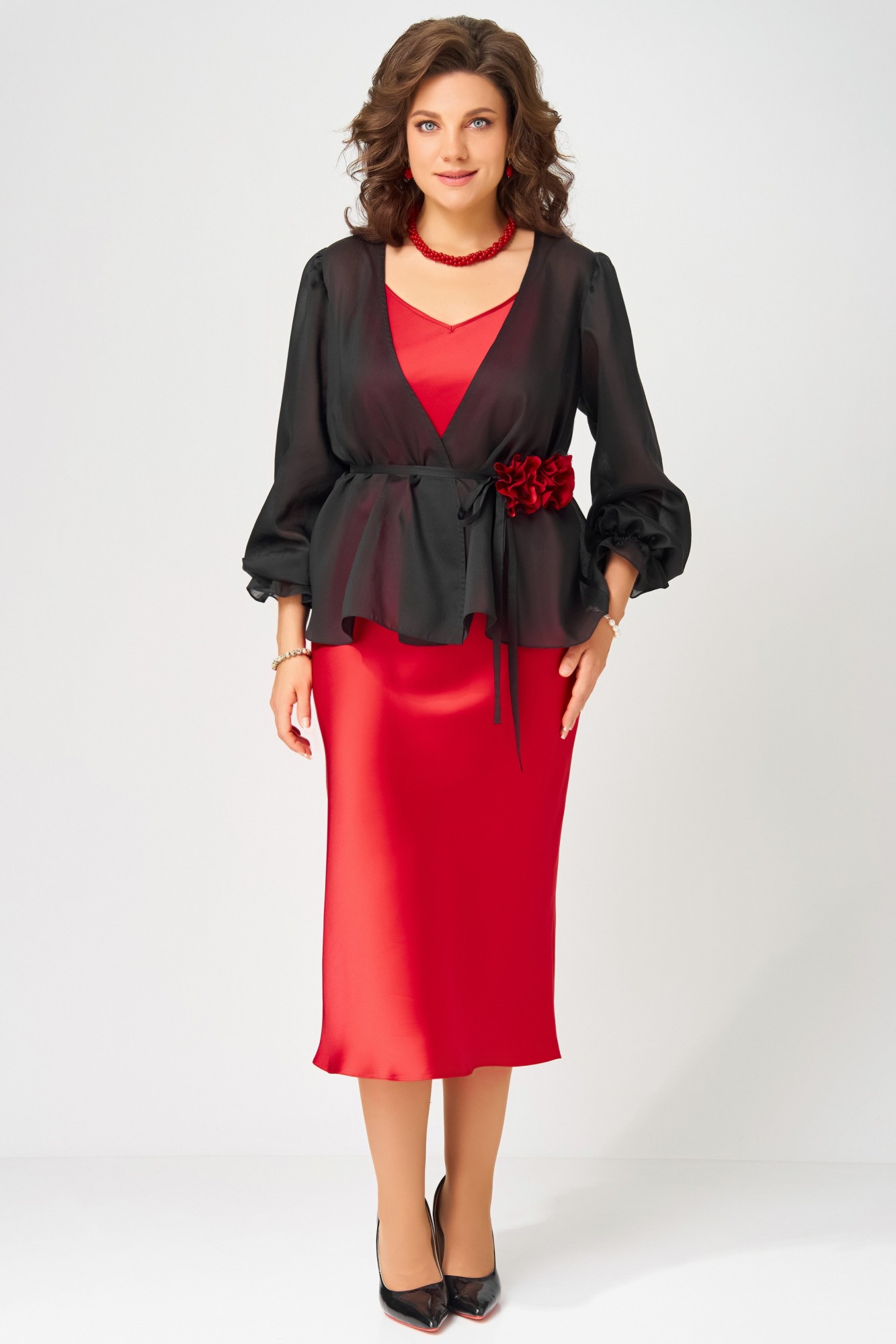 Нарядный комплект "Джелика" состоит из нарядного сатинового платья и накидки с поясом и двумя цветками ручной работы. Накидка выполнена из текстильной ткани вуаль "Аврора". Накидка свободного покроя, без застежки, край борта обработан бейкой, рукава втачные одношовные, низ рукава присобран на венгерку, по окату рукава легкая сборка. Низ изделия и низ рукавов обметан улиткой и застрочен на 0,2 мм. В комплект "Джелика" входит пояс с двумя декоративными съемным цветками. Платье на бретелях выполнено из сатиновой ткани "Изабелла". Бретели регулируемые. Платье без подкладки полуприлегающего силуэта, выкроено по косой. По полочке платья нагрудная выточка. Верх платья и бретели обработаны окантовкой, низ платья обработан улиткой и застрочен на 0,2 мм. Комплект "Джелика" — воплощение праздничной элегантности. Легкая накидка и изящное платье создают гармоничный дуэт, который сияет на любом торжестве. Носите вместе — для эффектного выхода, или по отдельности — чтобы каждый образ звучал по-новому.