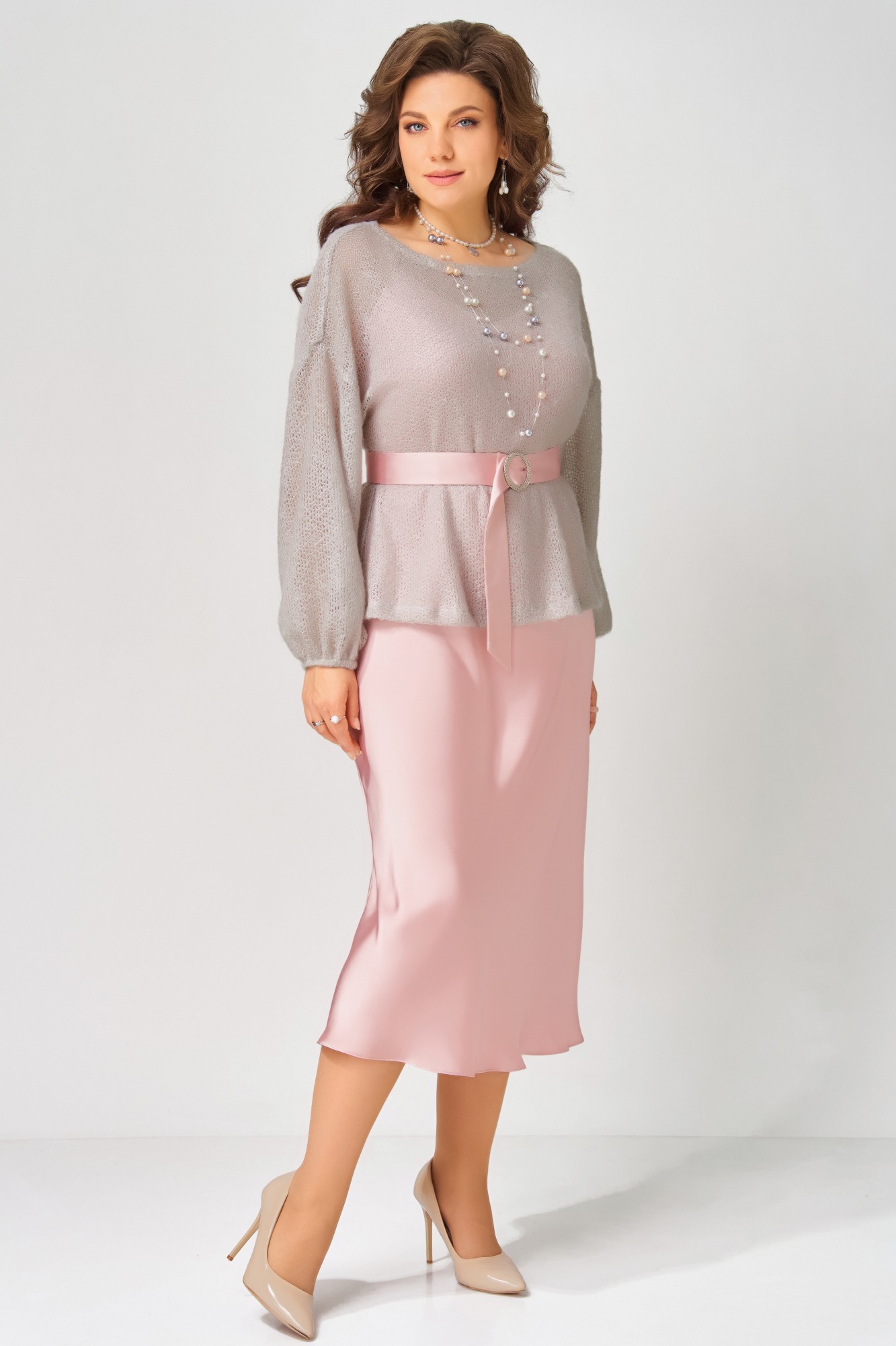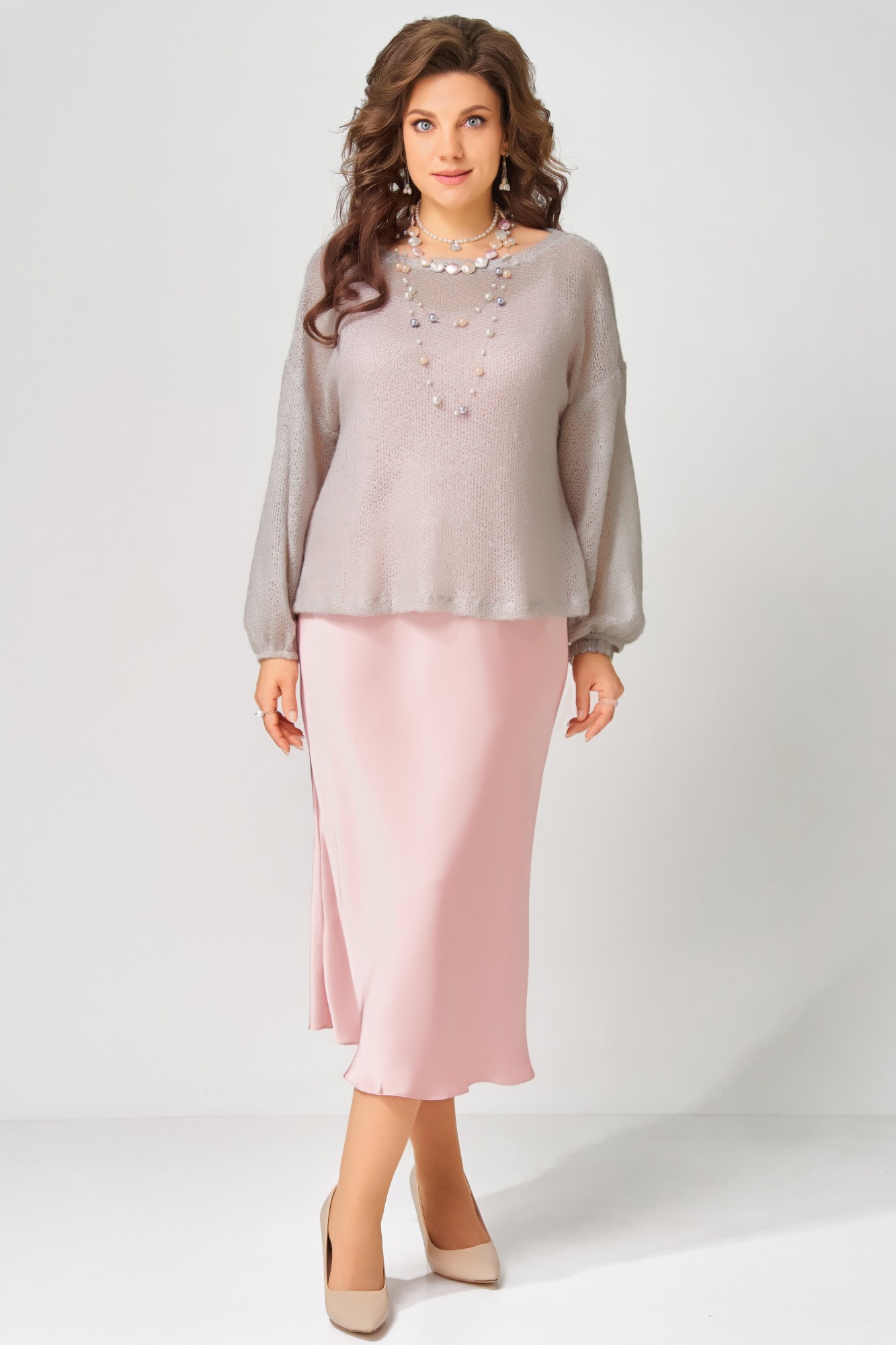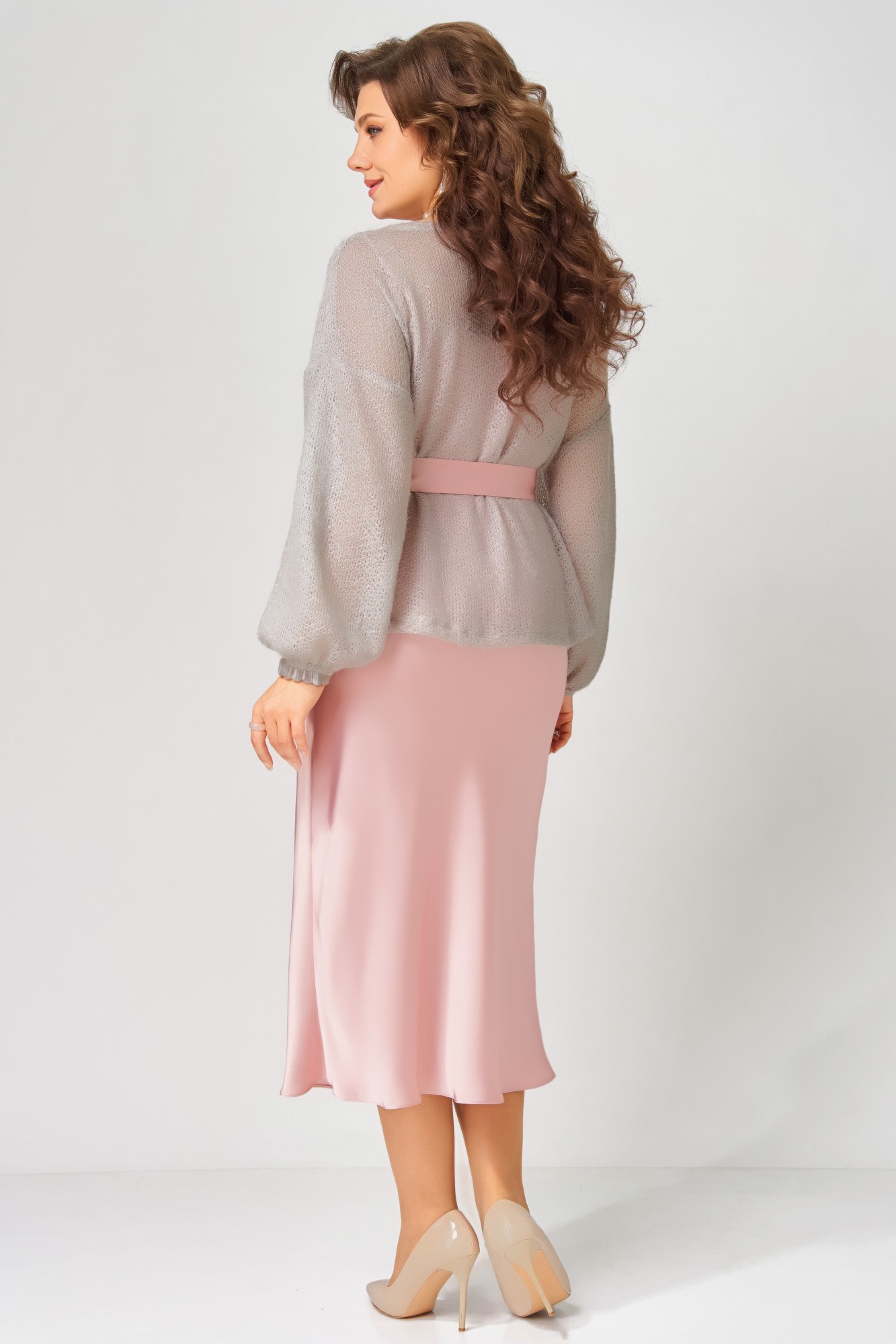 ""Эдита"" — элегантный образ для волшебной ночи. Сатиновое платье струится мягким блеском, а трикотажная накидка из махера с шерстью добавляет тепла и фактурности. Идеальный наряд для встречи Нового года и других торжеств, когда хочется сиять и чувствовать себя особенно.