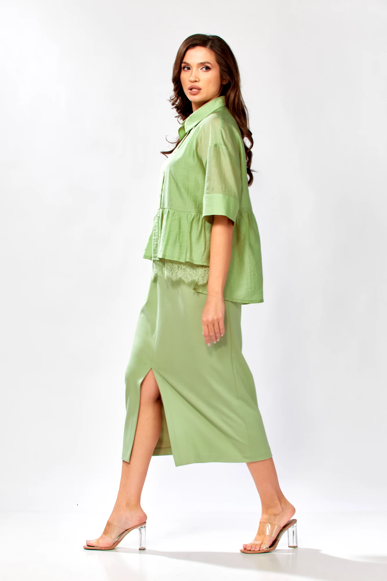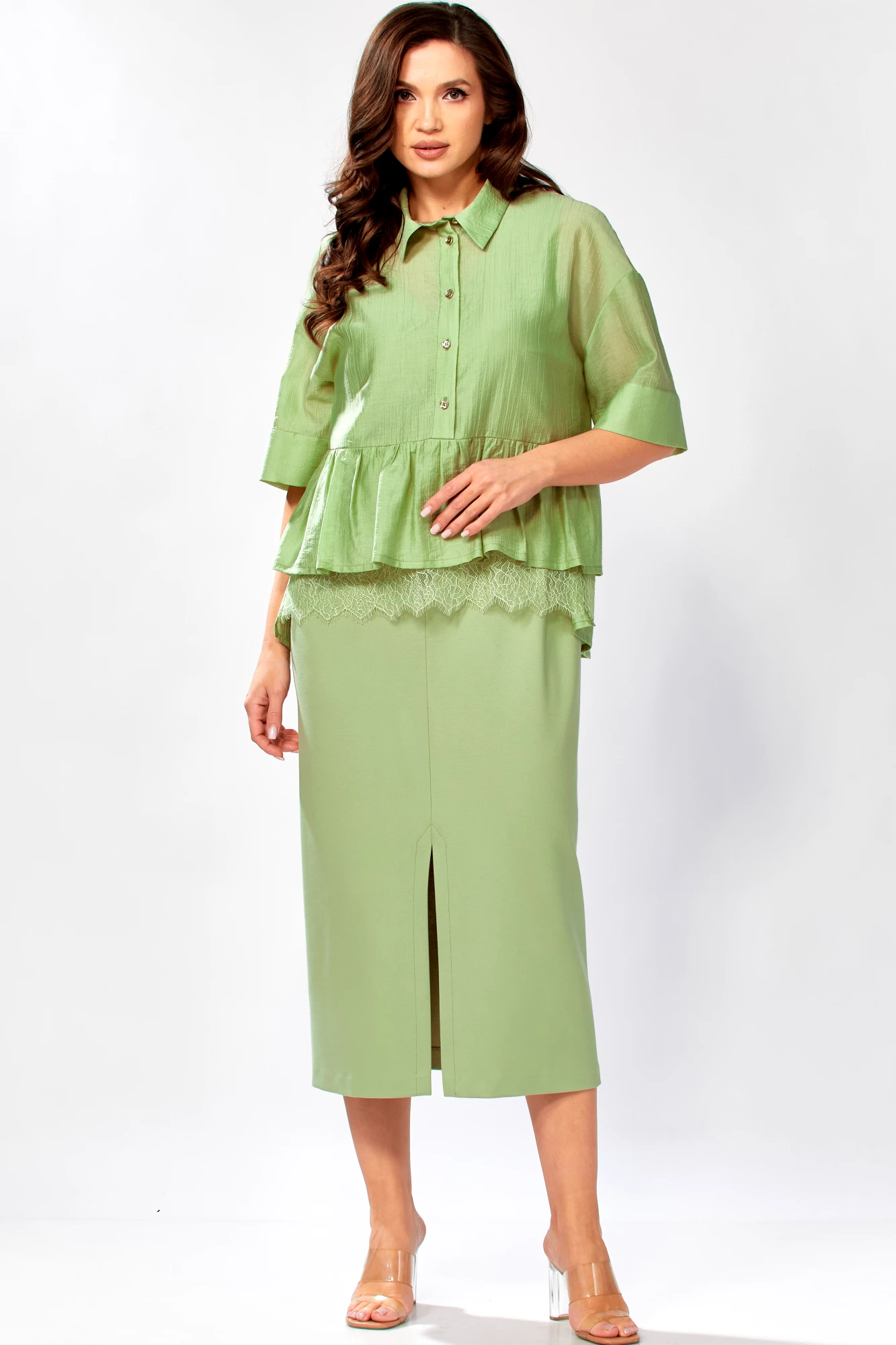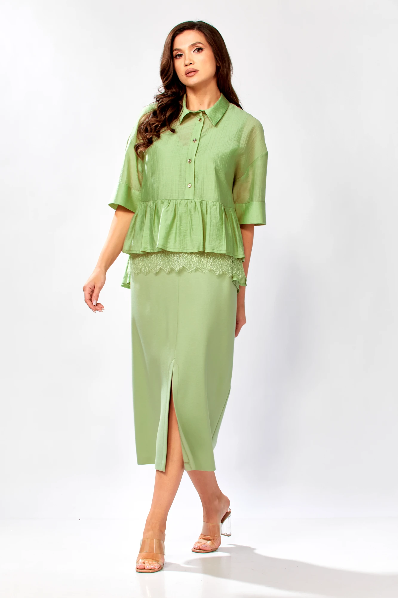 Блуза: тенсел 85%, ПЭ 15%; Платье: вискоза 60%, полиамид 35%, спандекс 5%