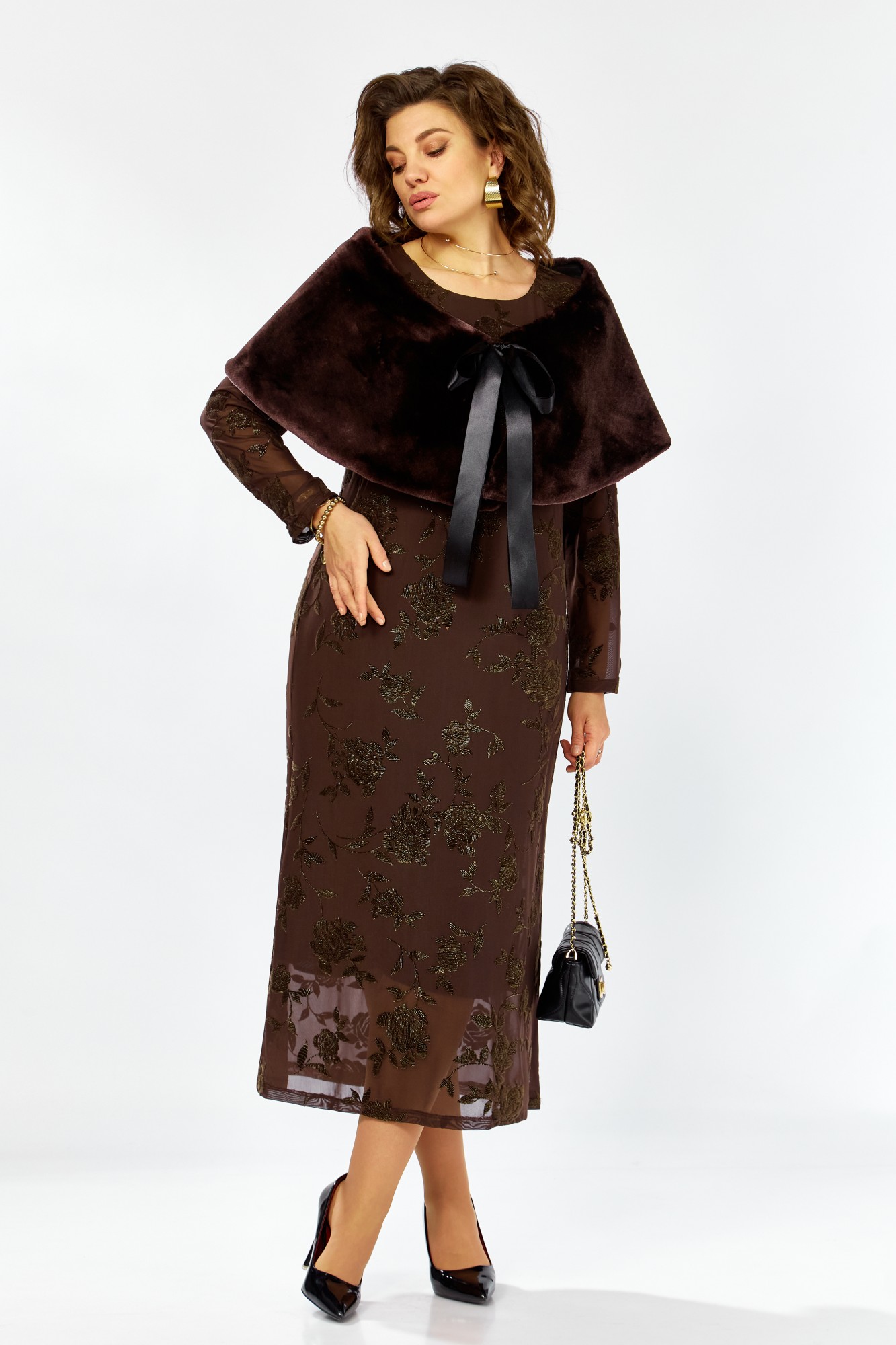 Роскошный плательный комплект с изящной меховой горжеткой . Платье на трикотажной подкладке полуприлегающего силуэта из мягкой стретч-сетки украшенной флоковым напылением с позолотой создает эффект дорогого кружевного орнамента. Образ дополняет роскошная. Меховая горжетка в глубоких тёмных тонах её бархатистая текстура контрастирует с лёгкостью платья ,этот комплект идеально подойдёт для вечерних мероприятий торжеств и особых случаев.