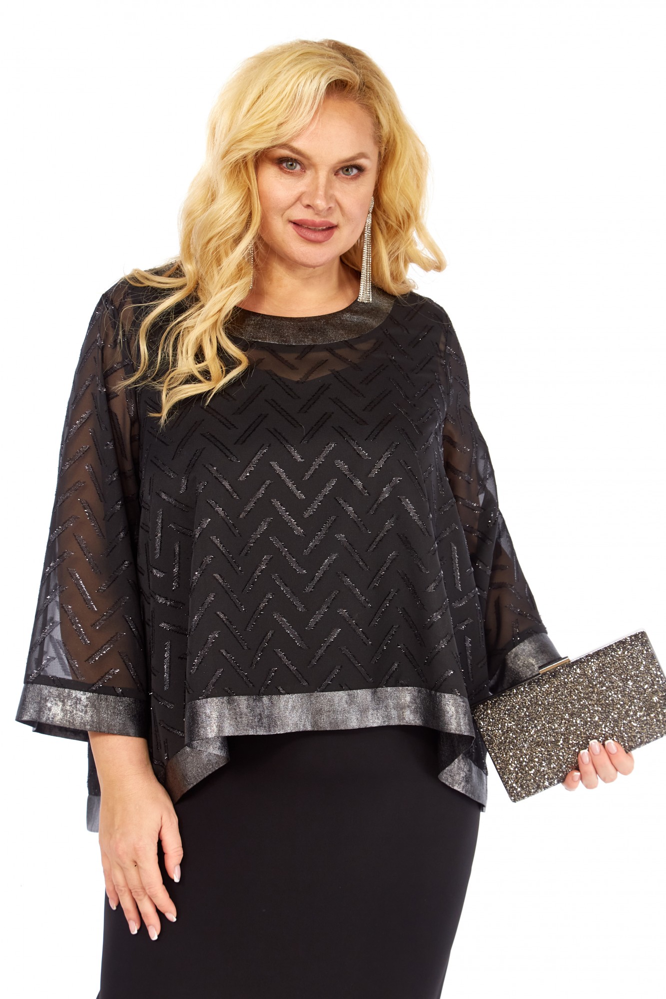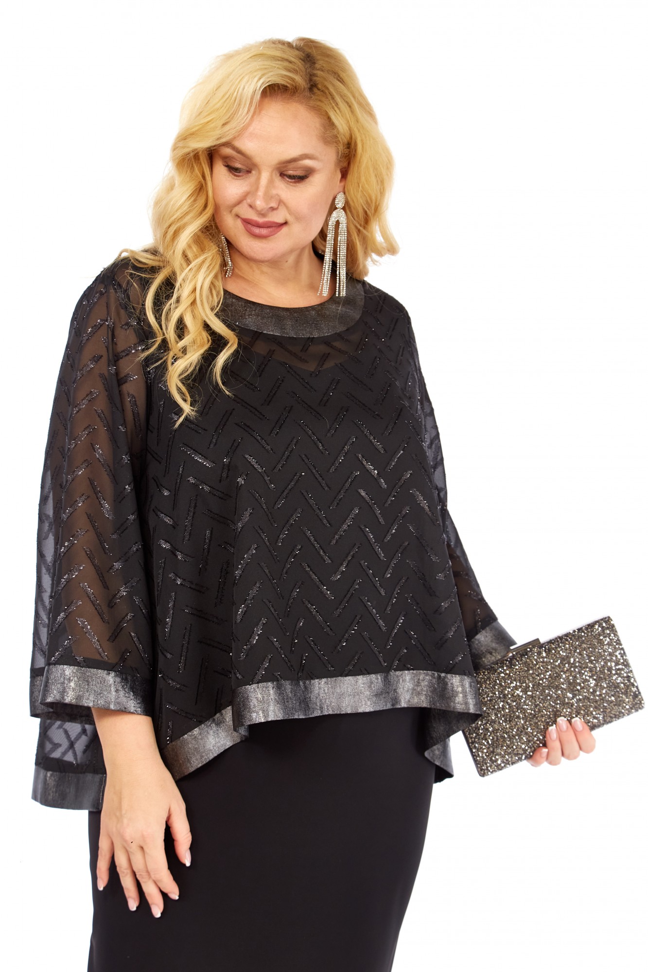 Нарядный женский двухпредметный комплект состоит из блузы ,выполненной из шифона двух видов,и платья,выполненного из однотонной плательно-костюмной ткани.