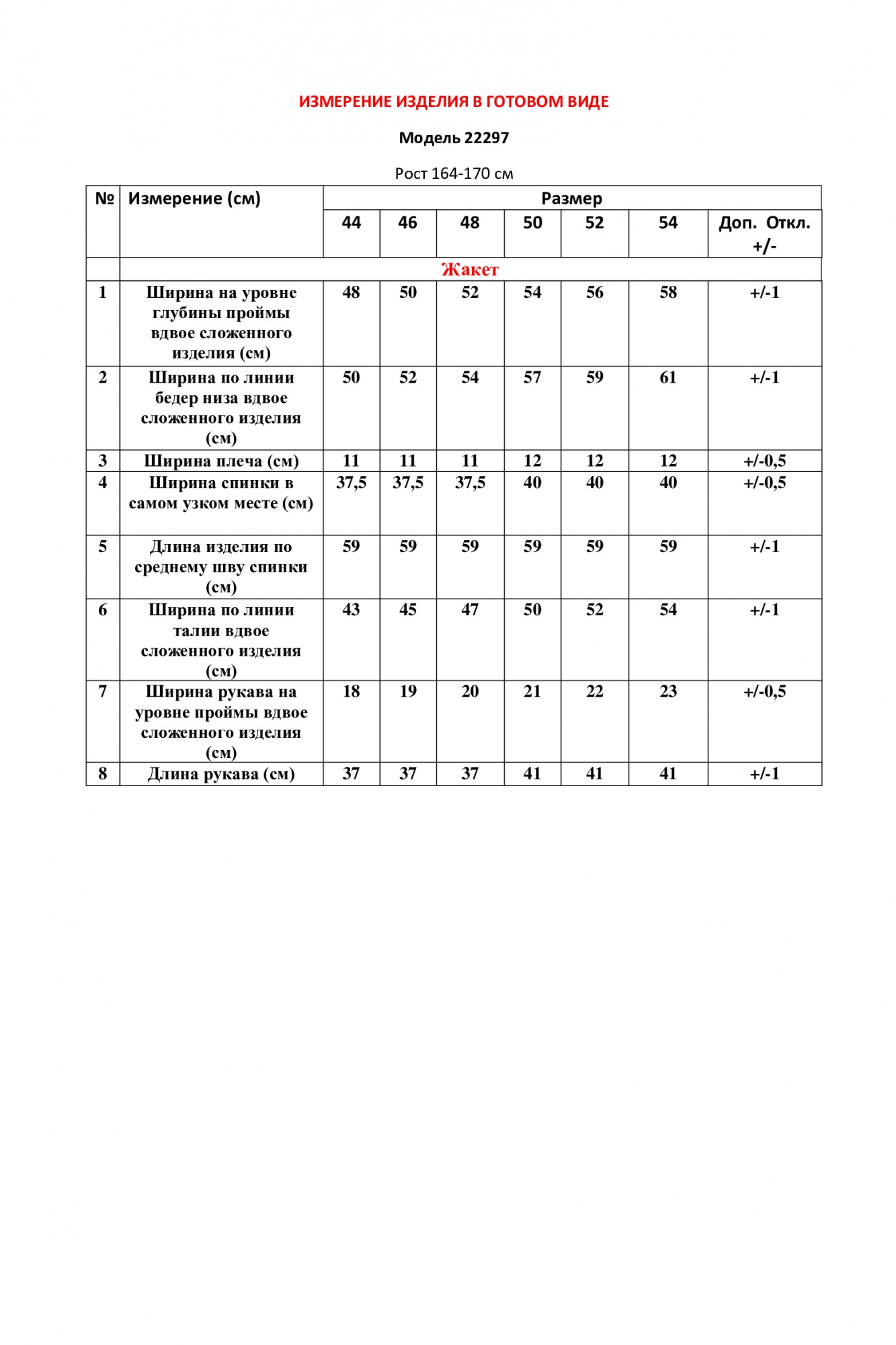 Комплект состоящий из жакета и платья. Жакет женский на подкладке, полуприлегающего силуэта. По переду функциональные карманы в рамку с клапаном. Спинка со средним швом и рельефами из проймы Воротник пиджачного типа с фигурным бортом и двубортной застежкой на две петли и пуговицы. Рукав втачной, одношовный, укороченный, со сборкой по внутреннему шву рукава и по окату.