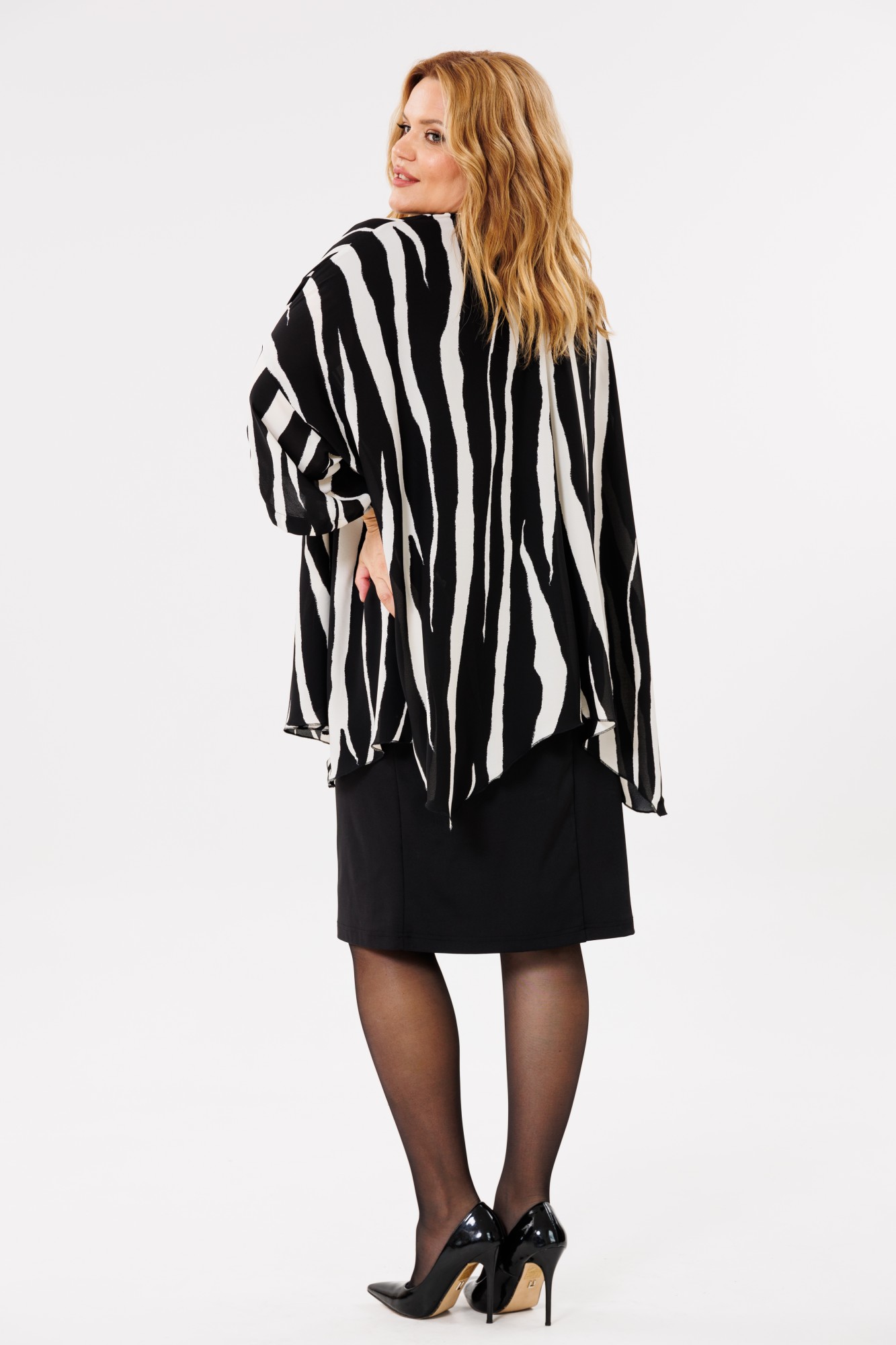 Нарядный женский комплект, который точно выделит вас среди окружающих. Данный комплект состоит из шифоновой блузы и элегантного платья-футляра. Блузка распашная по переду трапециевидного силуэта, со спущенным плечом с длиной чуть ниже бедра, с втачным одношовным рукавом 3/4 и фигурным низом. Платье является ярким представителем повседневного гардероба — оно приталенное, длиной до колена с округлой горловиной, коротким спущенным рукавом. По переду платье украшено принтом в виде розы, что придает изюминку всему образу. Этот женский наряд отлично подойдет для тех, кто ищет сочетание утонченной классики и современного стиля. Благодаря своему универсальному дизайну комплект можно легко комбинировать с другими вещами из вашего гардероба, создавая разнообразные стильные образы.