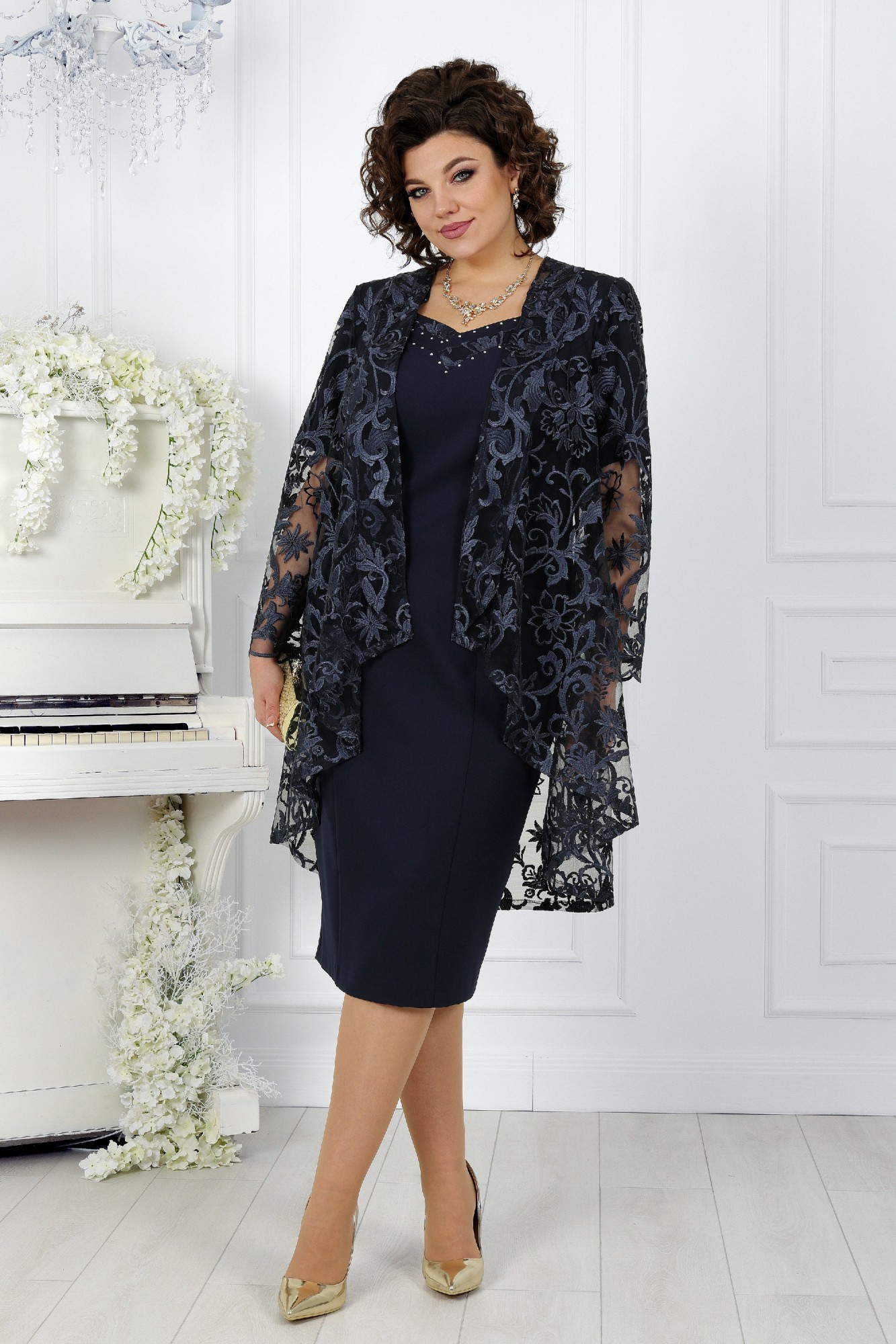 Кружевной кардиган играет важную роль в формировании правильного силуэта. Его утонченный узор и легкая ткань создают эффект легкости и воздушности, и при этом подчеркивают достоинства фигуры. Он мягко облегает тело, придавая образу изящество и стиль. Платье, в свою очередь декорировано кружевом и стразами в области горловины эти детали добавляют платью изысканности и шарма, привлекая внимание к вашей элегантности. Комплект женский, состоящий из платья, выполненного из костюмно-плательной ткани и кардигана из гипюра. Перед с рельефными швами, проходящими через центр груди, идущими от пройм до низа. Центральная часть переда в области горловины с фигурными подрезами, декорированы кружевом и стразами. Спинка с рельефными швами, идущими от пройм до низа, со средним швом, в верхней части которого расположена застежка на потайную тесьму-молнию, в нижней – шлица. Горловина спинки округлой формы, переда – фигурное каре, декорирована стразами. Низ кардигана ассиметричной формы: укороченный спереди, удлиненный к центру спинки. Борта и горловина оформлены отложным воротником-шаль. Рукава втачные, одношовные. Низа рукавов оформлены фестонами.