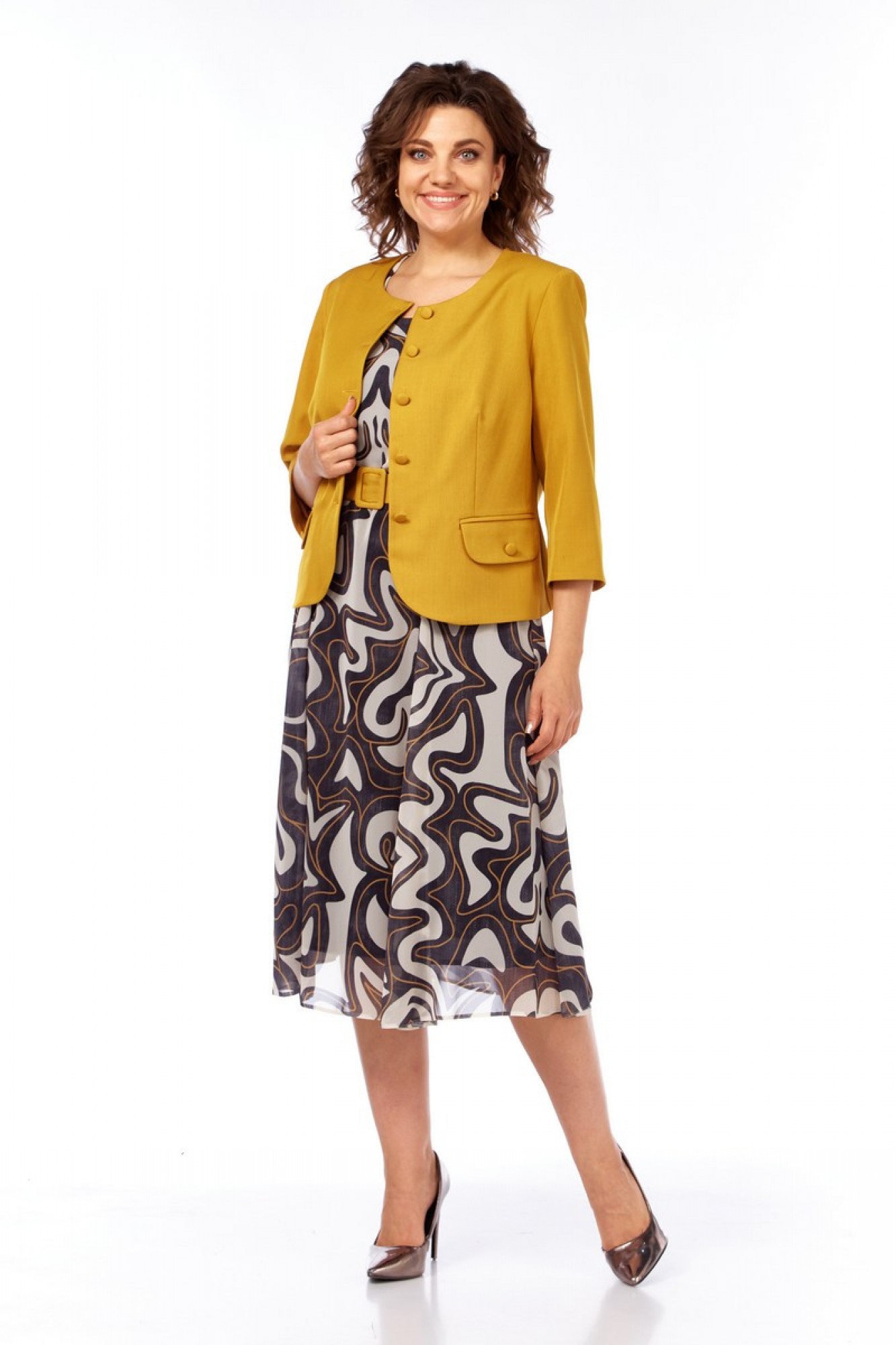 состав жакета: вискоза-60%, подиэстер-35%, спандекс-5%. Состав платья: полиэстер-70%, вискоза-25%, спандекс-5%