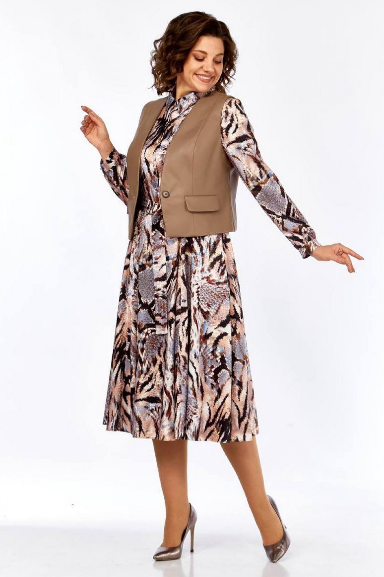 Костюм Милора Стиль 1380 двойка абстракция, капучино