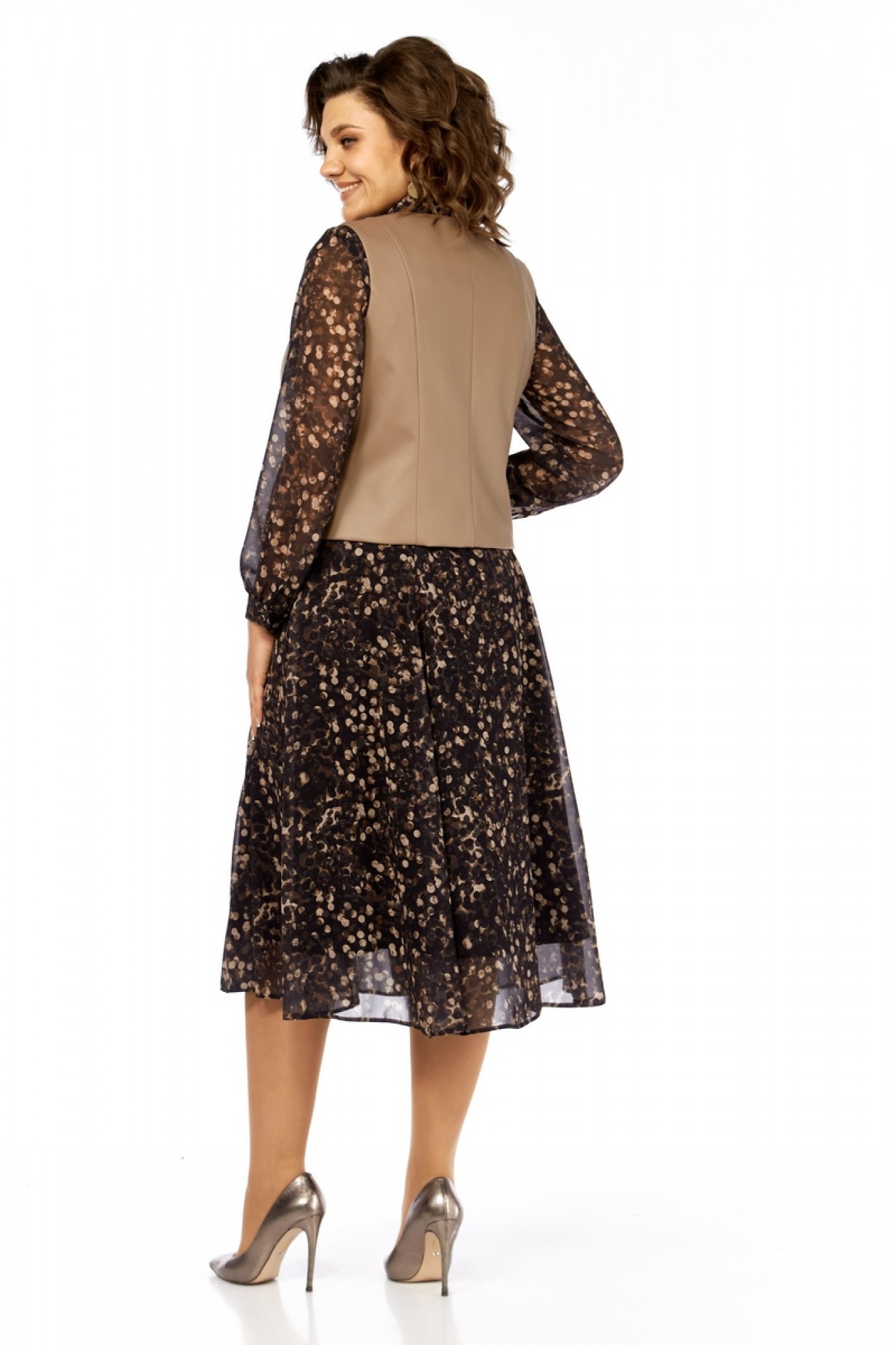Костюм Милора Стиль 1380/1 черный, капучино, принт кружочки