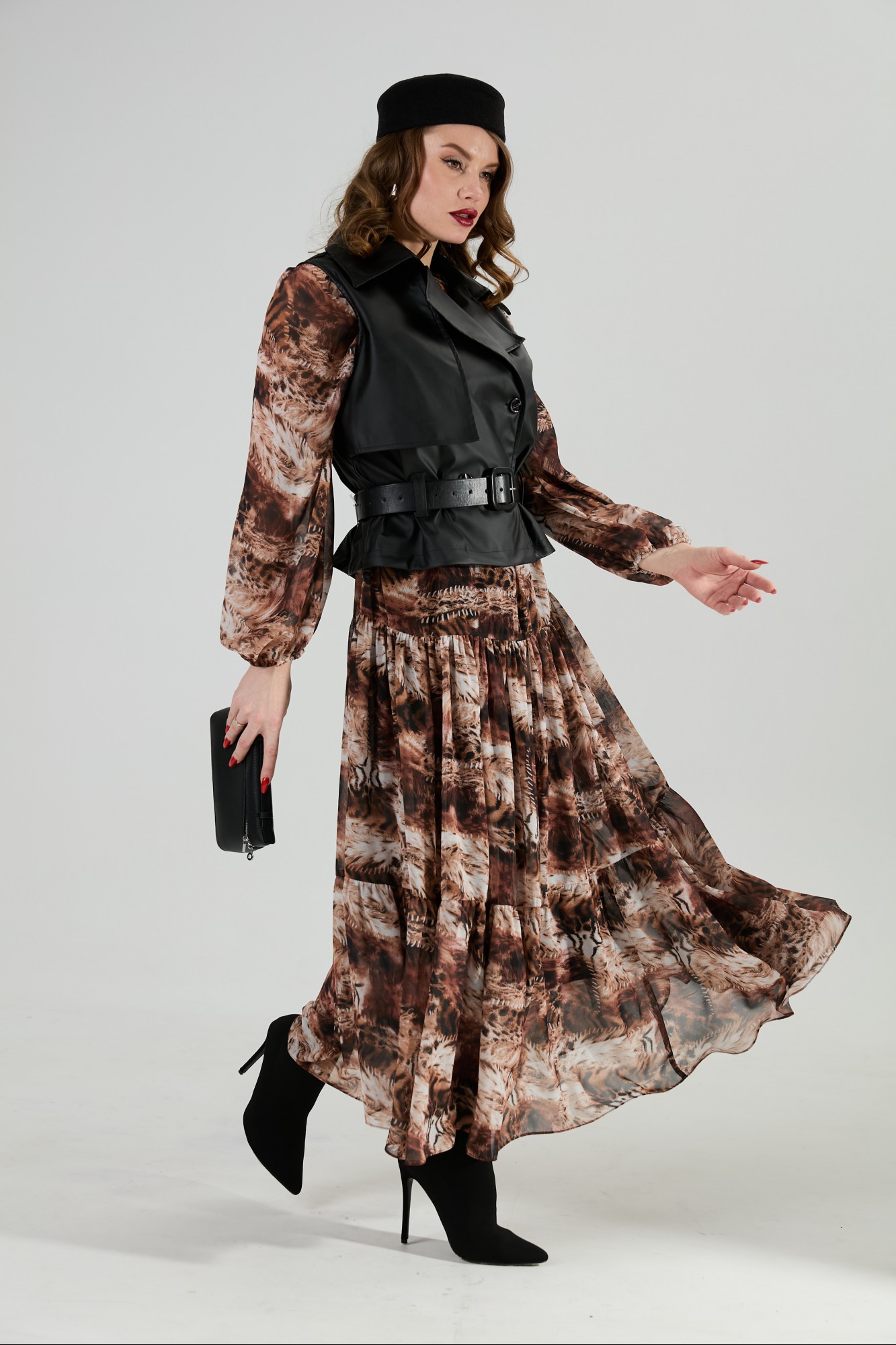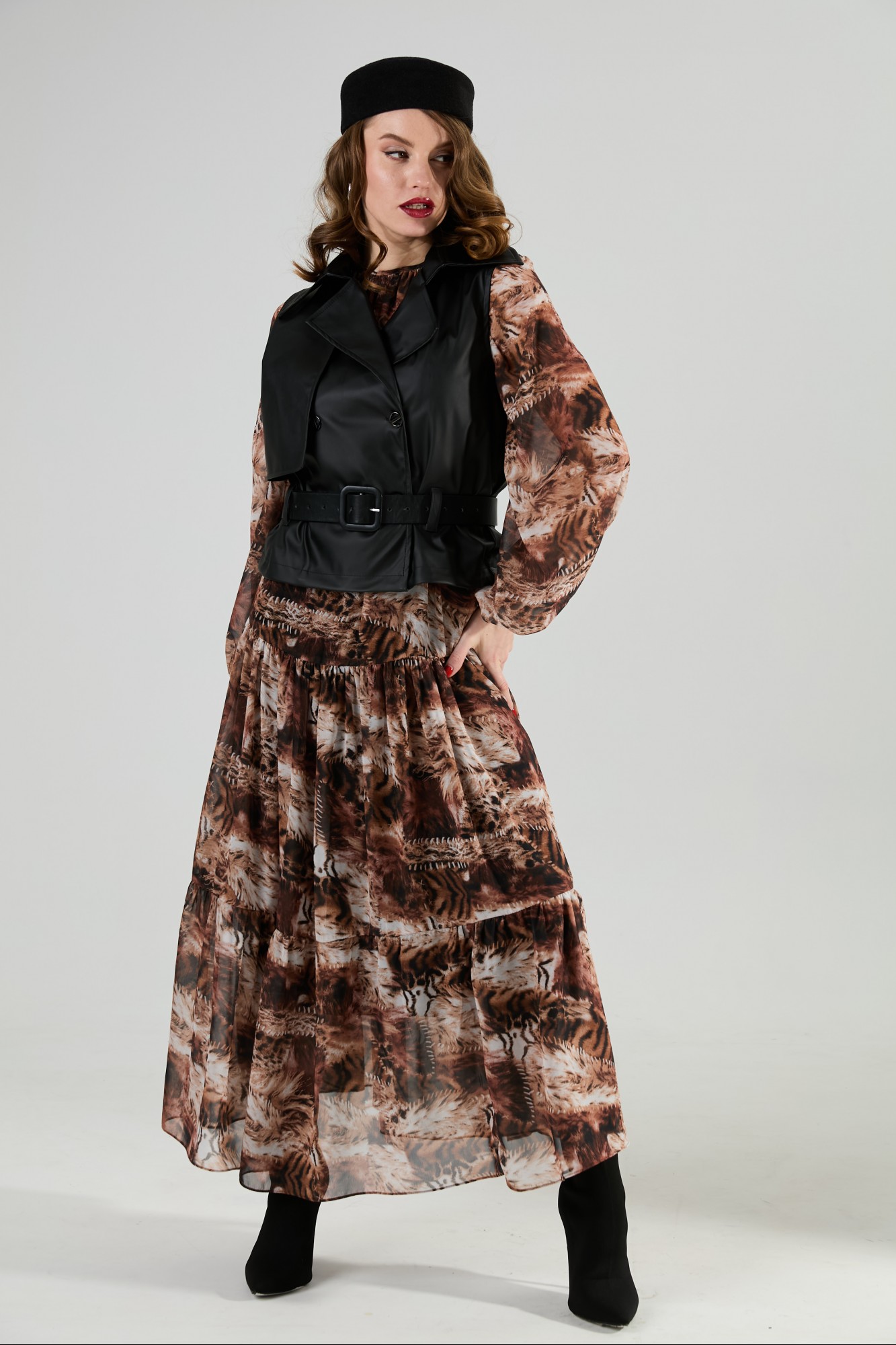платье верхнее и нижнее - 100% пэ, шифон, жилет - 96% пэ, 4% спандекс, экокожа