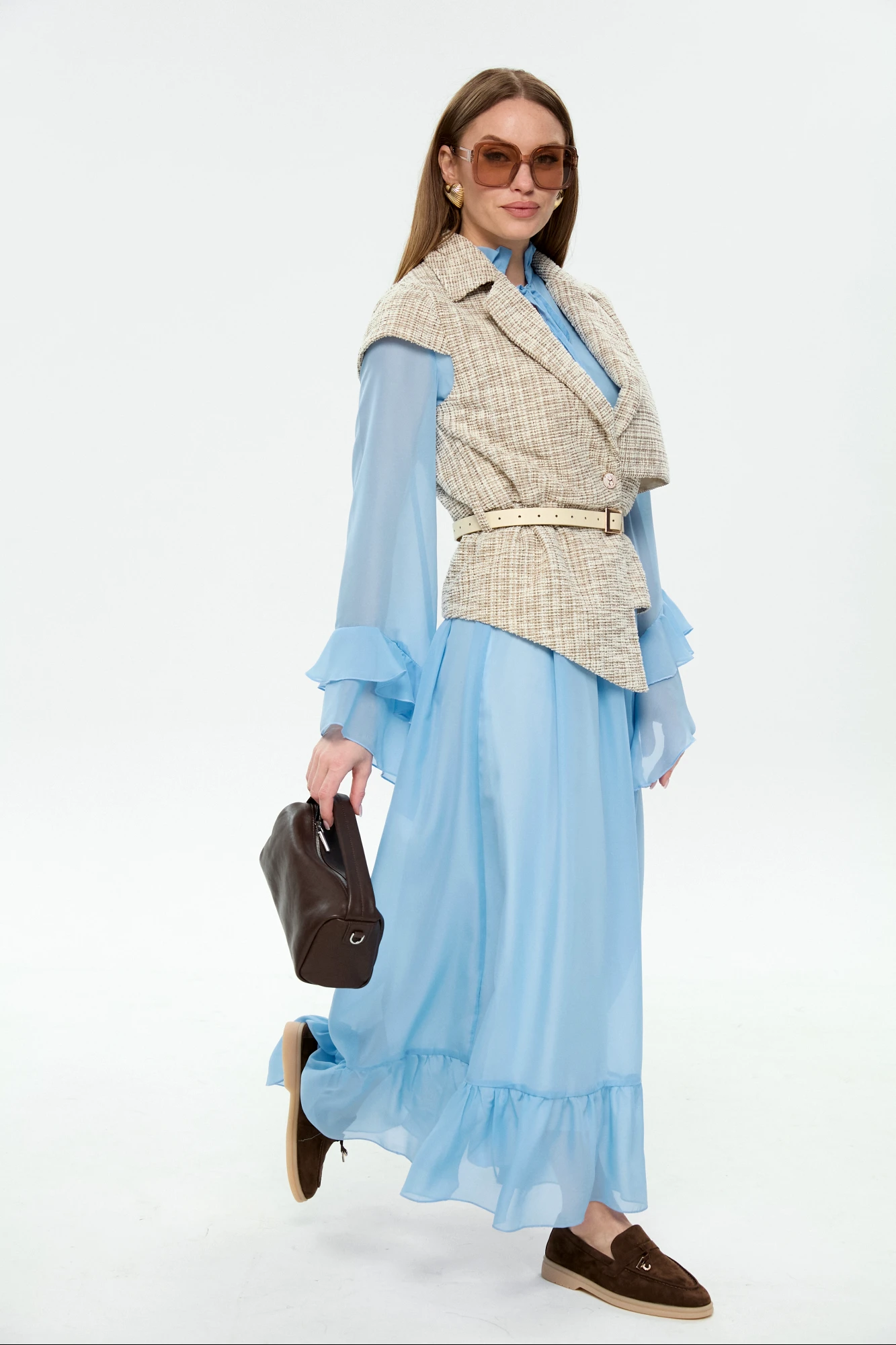 жилет - 64% хлопок, 34% пэ, 2% спандекс, платье - 100% пэ, шифон