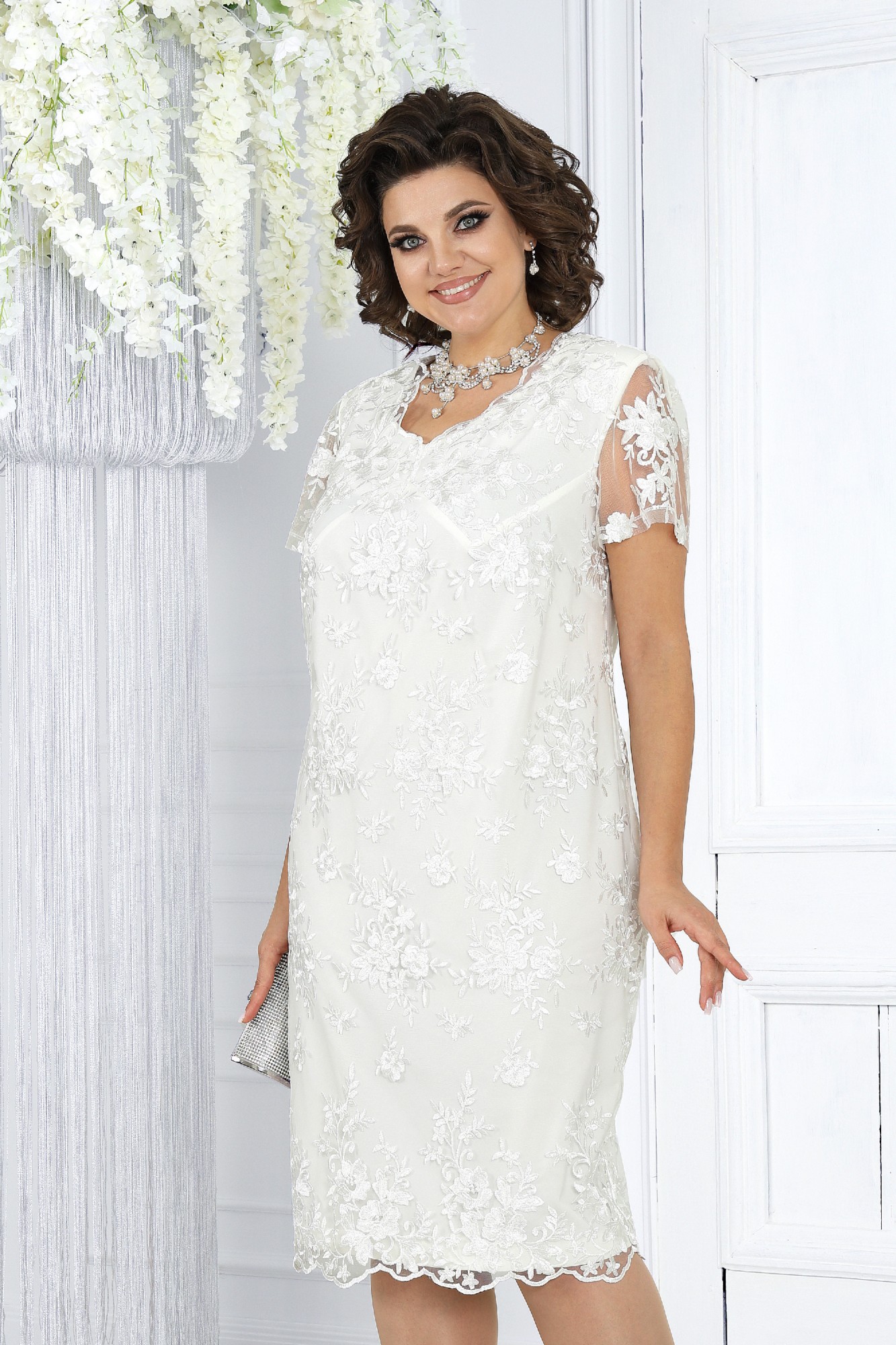 Оцените роскошь и элегантность этого вечернего комплекта, созданного специально для женщин с роскошными формами. Комплект состоит из двух идеально дополняющих друг друга предметов — изящного кардигана и утонченного платья, которые подчеркнут вашу индивидуальность и подарят чувство уверенности. Этот комплект создан, чтобы стать вашим союзником в мире вечерней моды, даря комфорт и очарование в каждый особенный момент. Комплект женский 2-х предметный, состоящий из кардигана и платья. Кардиган полуприлегающего силуэта, выполнен из костюмно-плательной ткани. Модель на подкладке, с плечевыми накладками. Перед с рельефными швами, направленными от пройм до низа, и центральной застежкой на два декоративных крючка. Спинка с рельефными швами от пройм до низа, и средним швом со шпицей. Горловина округлая, углубленная по переду. Рукав длиной 3/4, втачной. Длина кардигана - 108 см, длина рукава - 47 см. Платье женское полуприлегающего силуэта. Перед и спинка состоят из двух слоев: верхний выполнен из гипюра, нижний – из сатина. Модель без подкладки, с плечевыми накладками. Низ платья и вырез горловины оформлены фестонами. Перед платья с зигзагообразным подрезом, направленным от пройм и проходящим через центр груди и угол V-образной горловины. Спинка с таллиевыми вытачками в верхнем и нижнем слоях, со средним швом, в верхней части которого обработана застежка на потайную тесьму-"молнию" (50см), в нижней – шлица. Рукав короткий, втачной. Верхний и нижний слои платья скреплены по среднему шву, плечевым, проймам и подрезу переда. Длина платья - 104 см, длина рукава - 20 см.