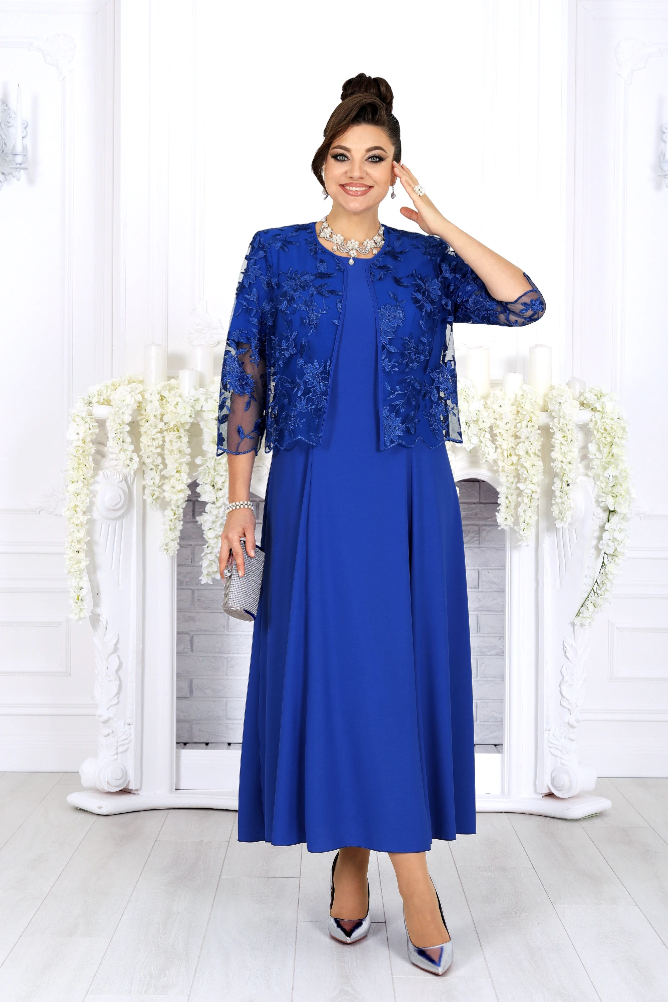 жакет – полиэстер 100%, платье – полиэстер 97%, спандекс 3%