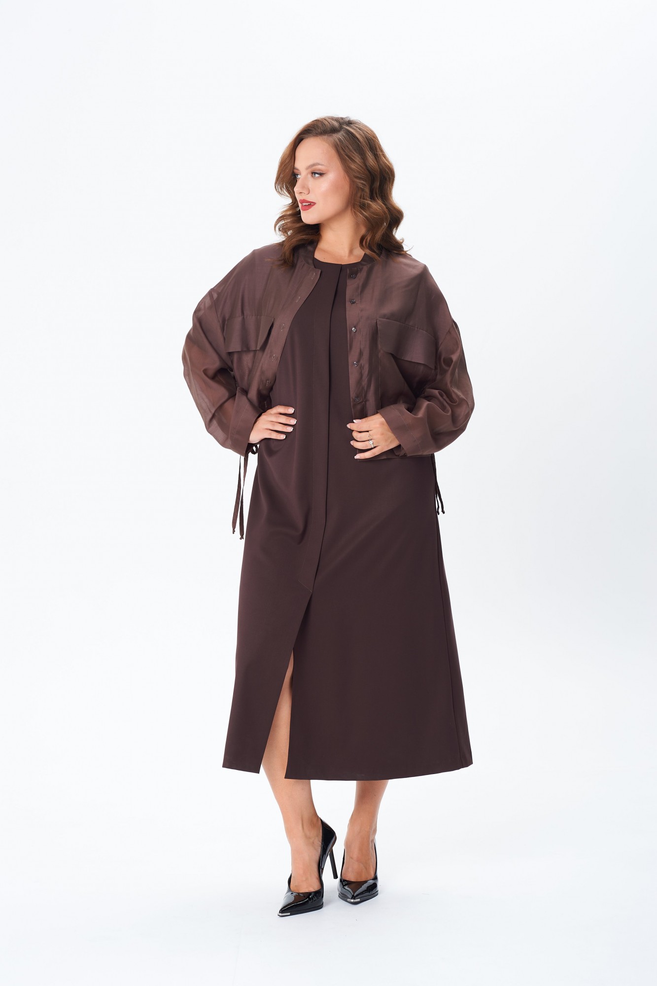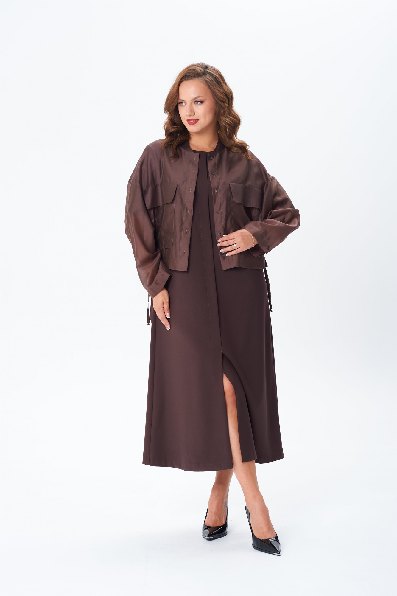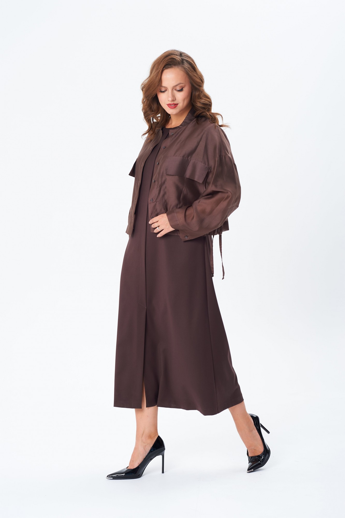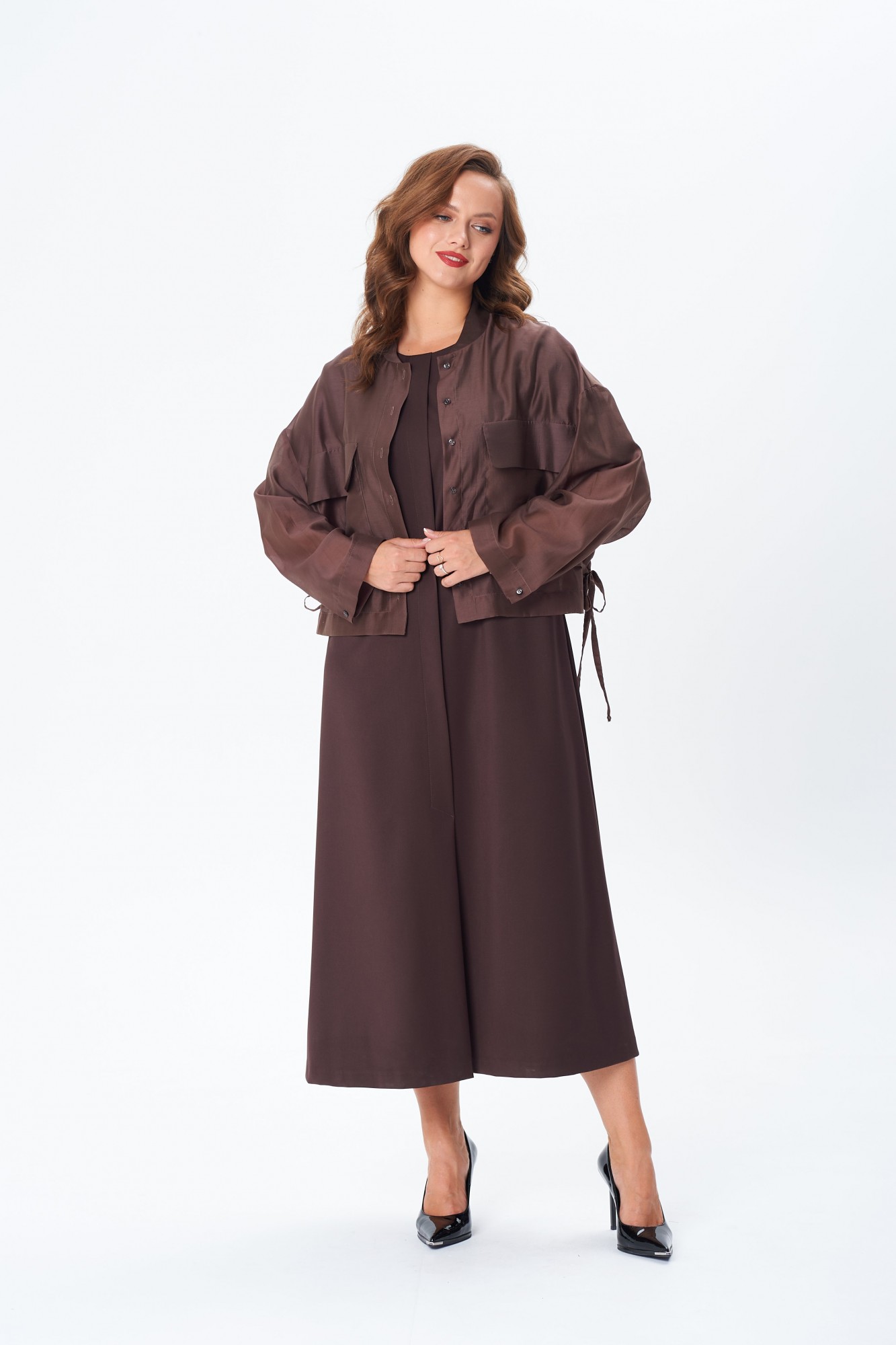 Состав платья: вискоза 32%, полиэстер 65%, спандекс 3%. Состав бомбера: лиоцелл 85%, полиэстер 15%.