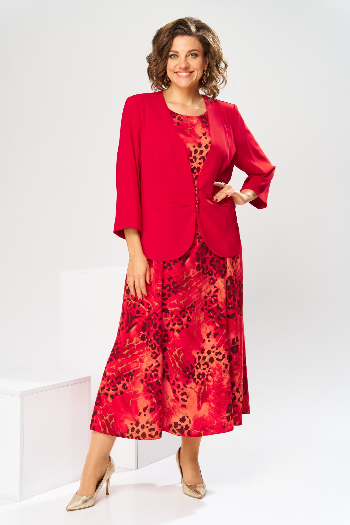 Платье: 100% ПЭ Жакет: 97% ПЭ, 3% спандекс