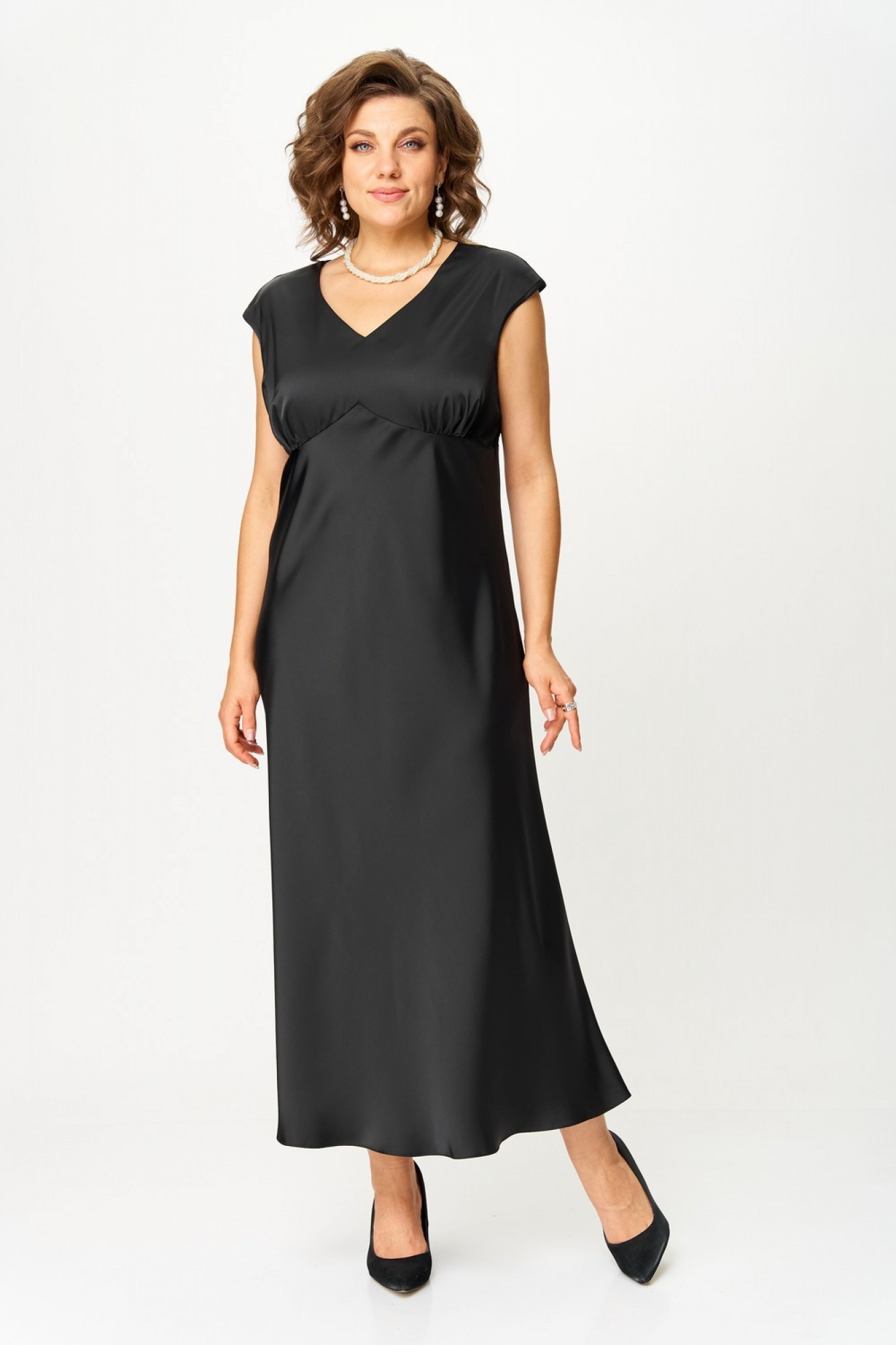 Костюм женский двухпредметный состоящий из платья и жакета. Платье однотонное полуприлегающего силуэта расширенное к низу, со спущенным плечом. Верхняя часть переда фигурная, со сборкой в области груди, что обеспечивает прекрасную посадку и подчеркивает фигуру. Спинка с горизонтальным швом с эластичной тесьмой в верхней части. Жакет укороченный, прямого кроя без застежки, с втачным рукавом 3/4, что придает образу легкость и воздушность. Съемное украшение в виде цветка замечательное дополнение, для создания разнообразных образов.