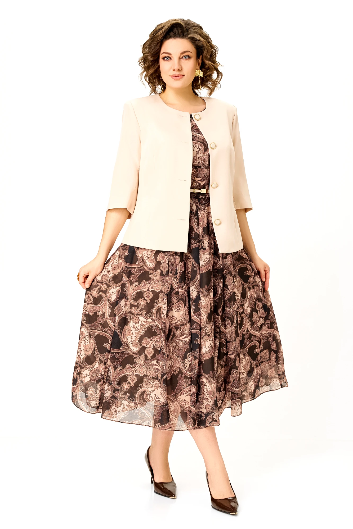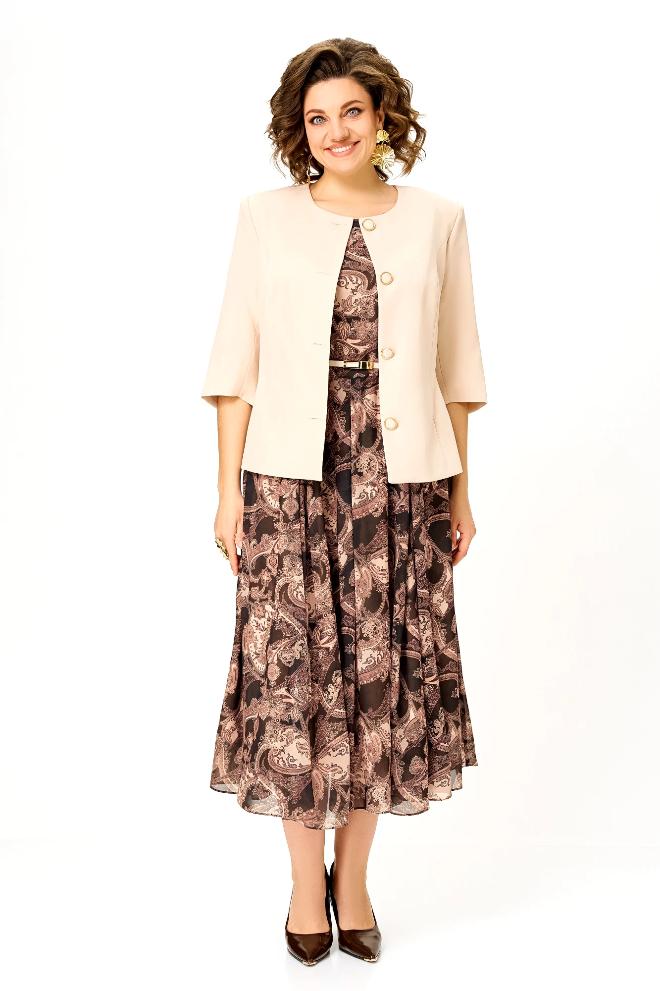 Жакет: 63%-полиэстер 34%-вискоза 3%-эластан Подкладка: 100% полиэстер Платье: 80% полиэстер 18% вискоза 2% спандекс Подкладка: 95% полиэстер 5% эластан